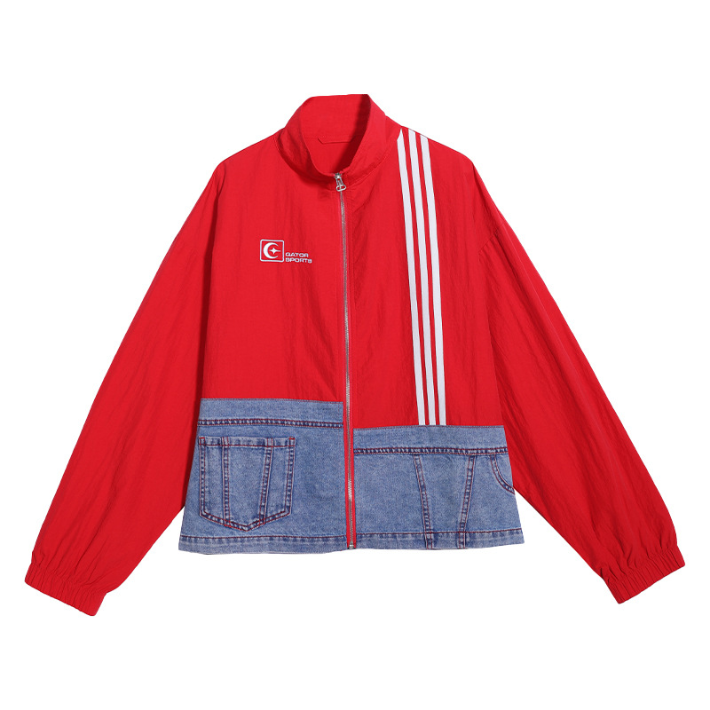 투오구 미국 스타일 루즈핏 캐주얼 봄 얇은 재킷 여성용 트렌디 브랜드 배색 데님 스트라이프 스포츠 재킷 여성용
