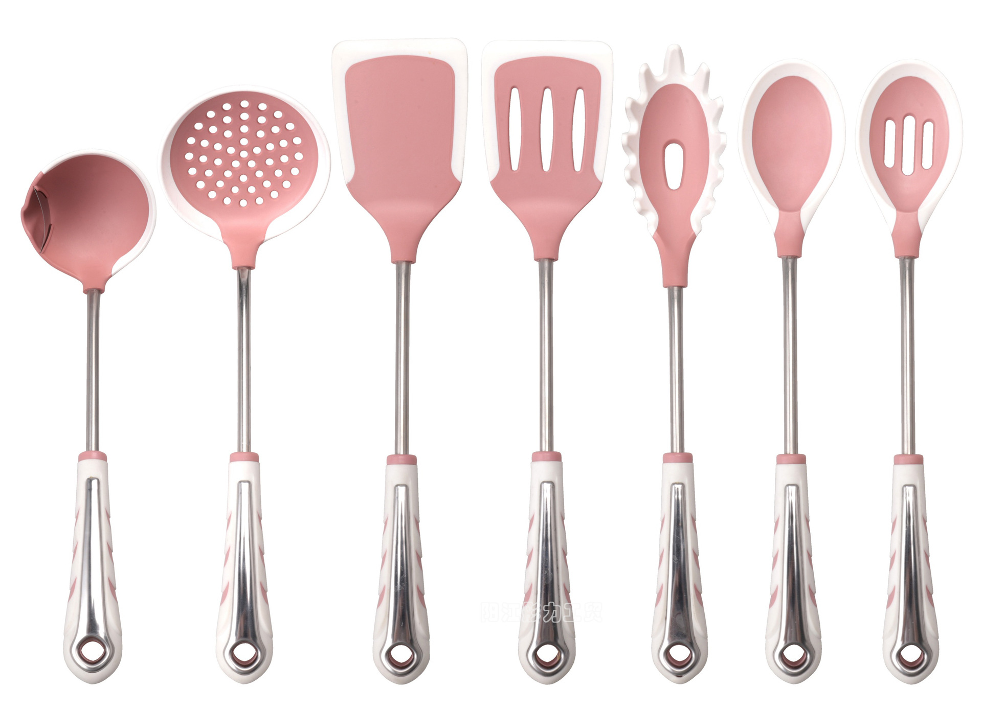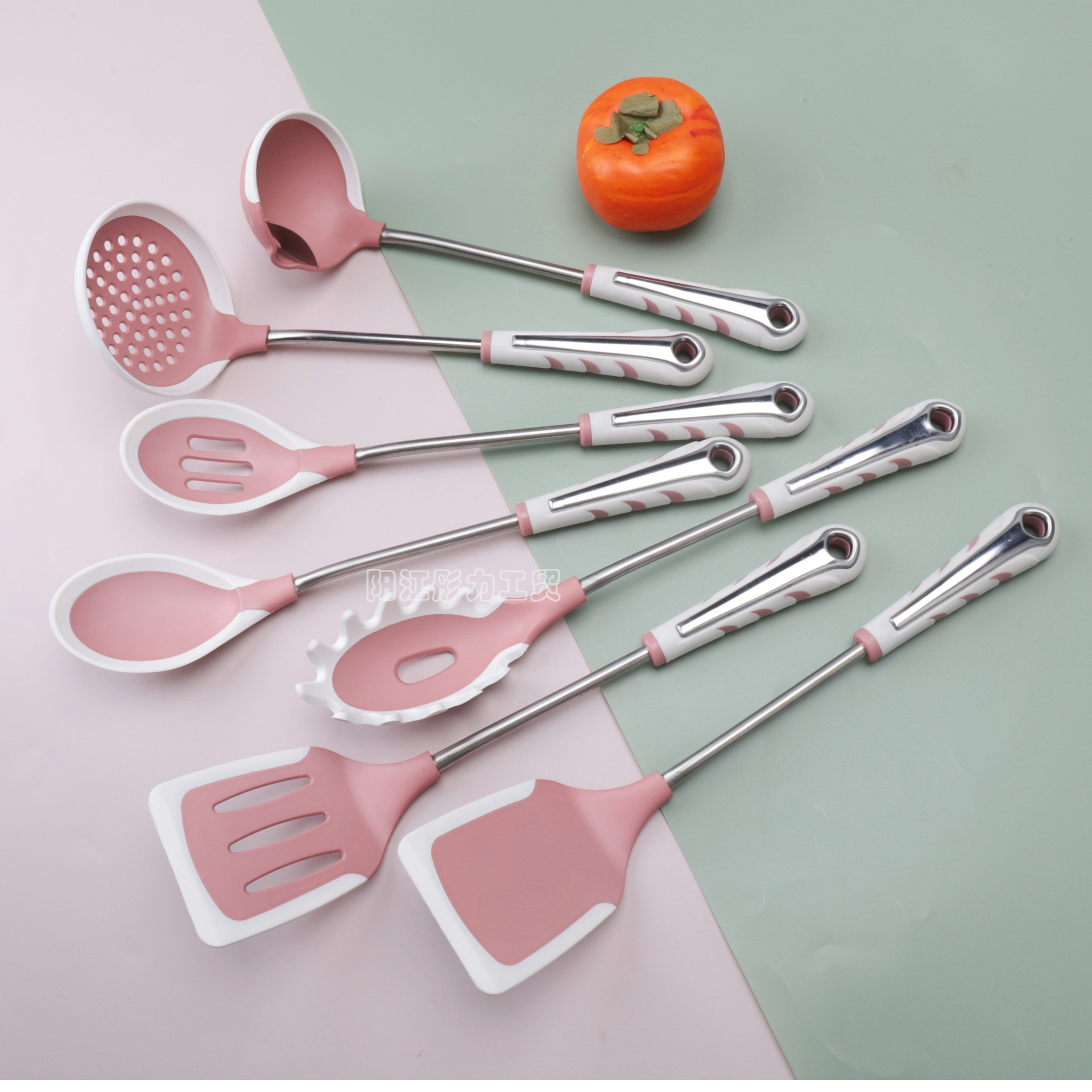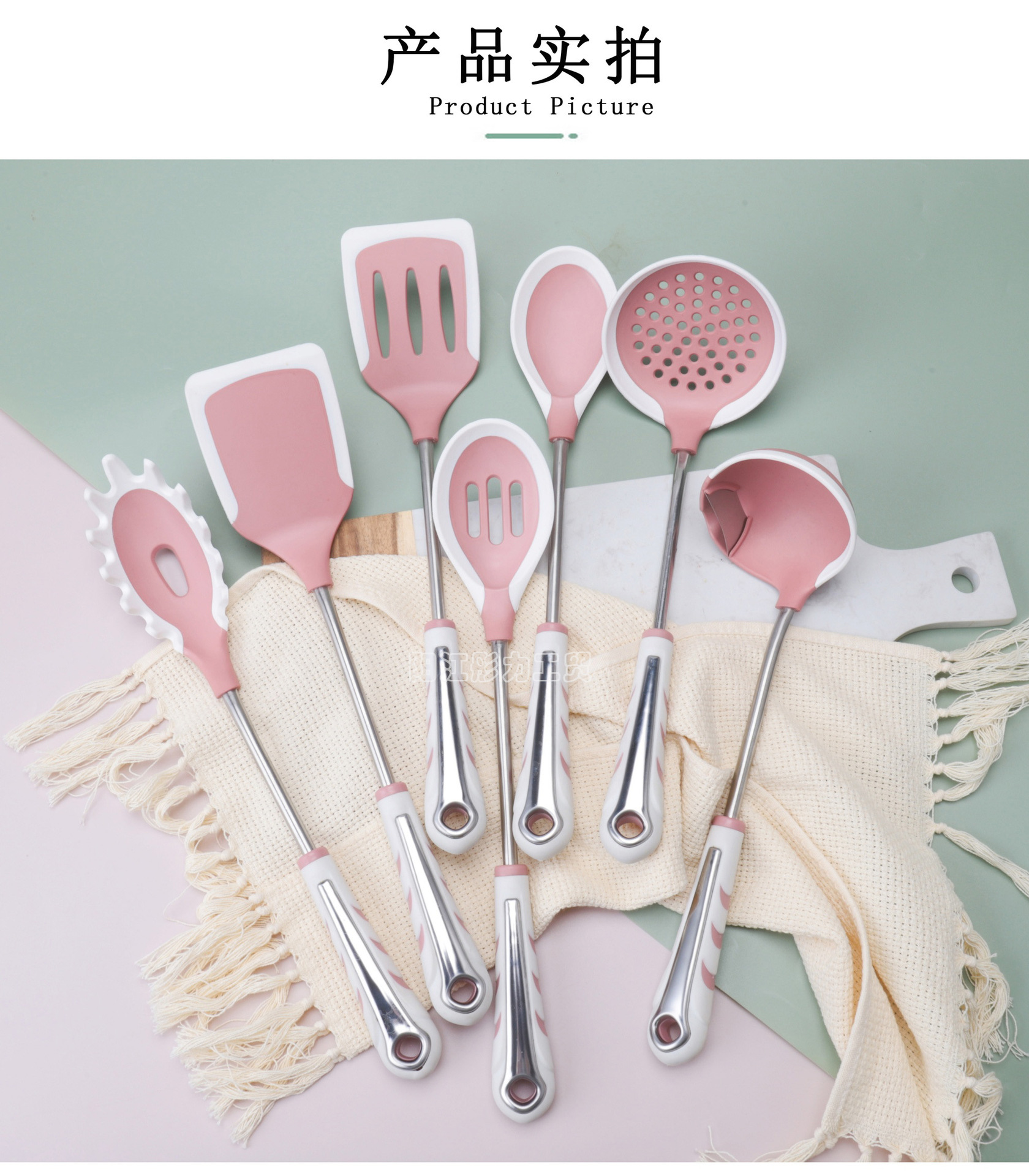 액체 실리콘 나무 손잡이 실리콘 주방용품 세트 비 스틱 팬 요리 숟가락과 삽 7 조각 세트 주방 도구 공장