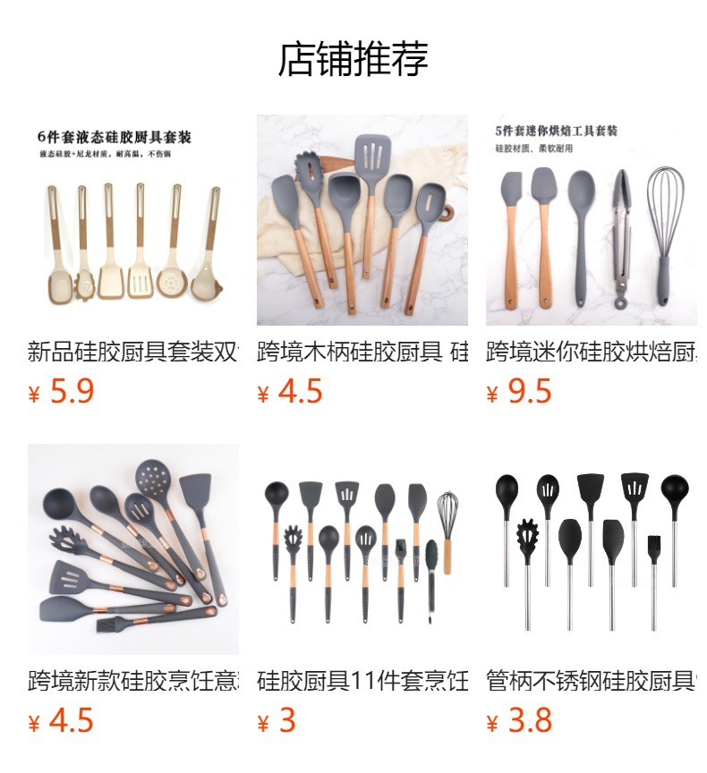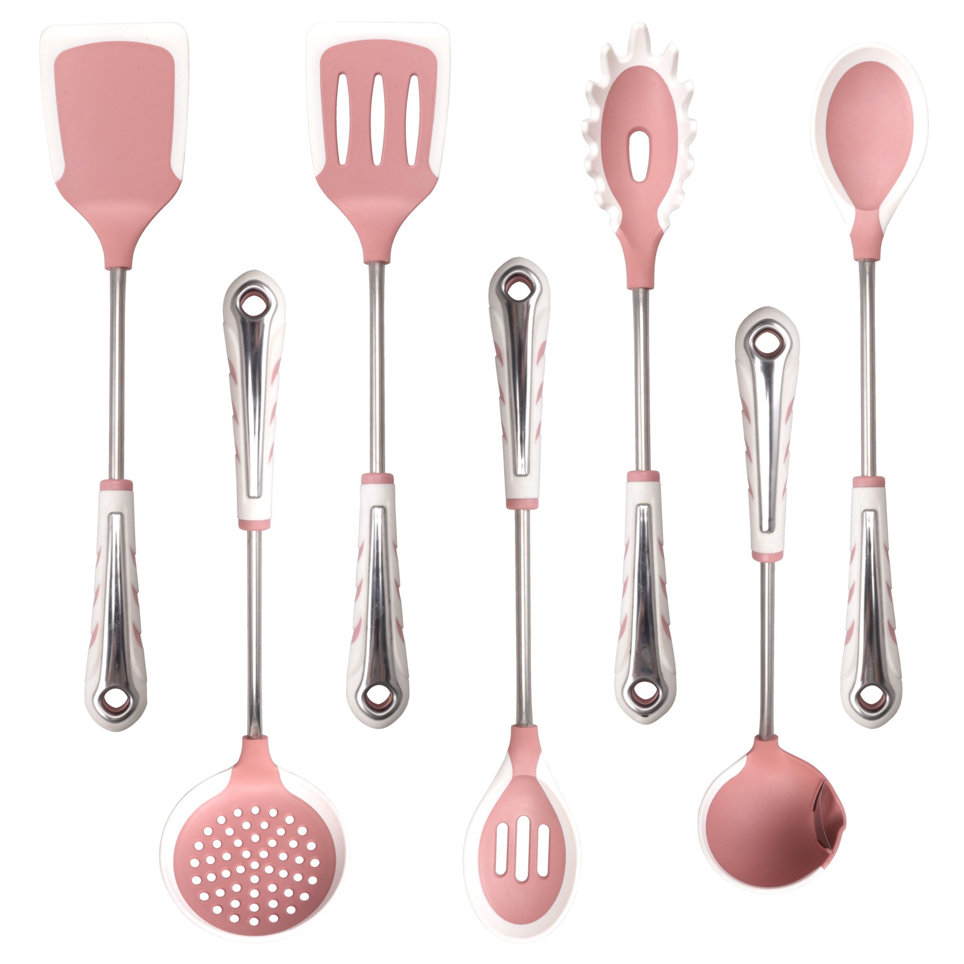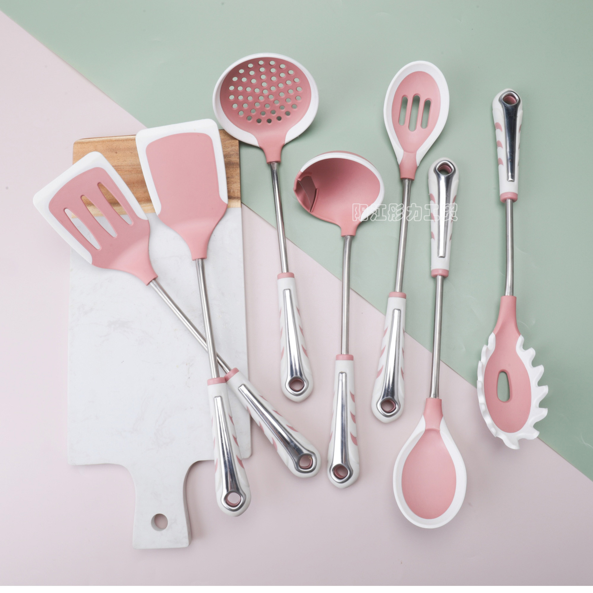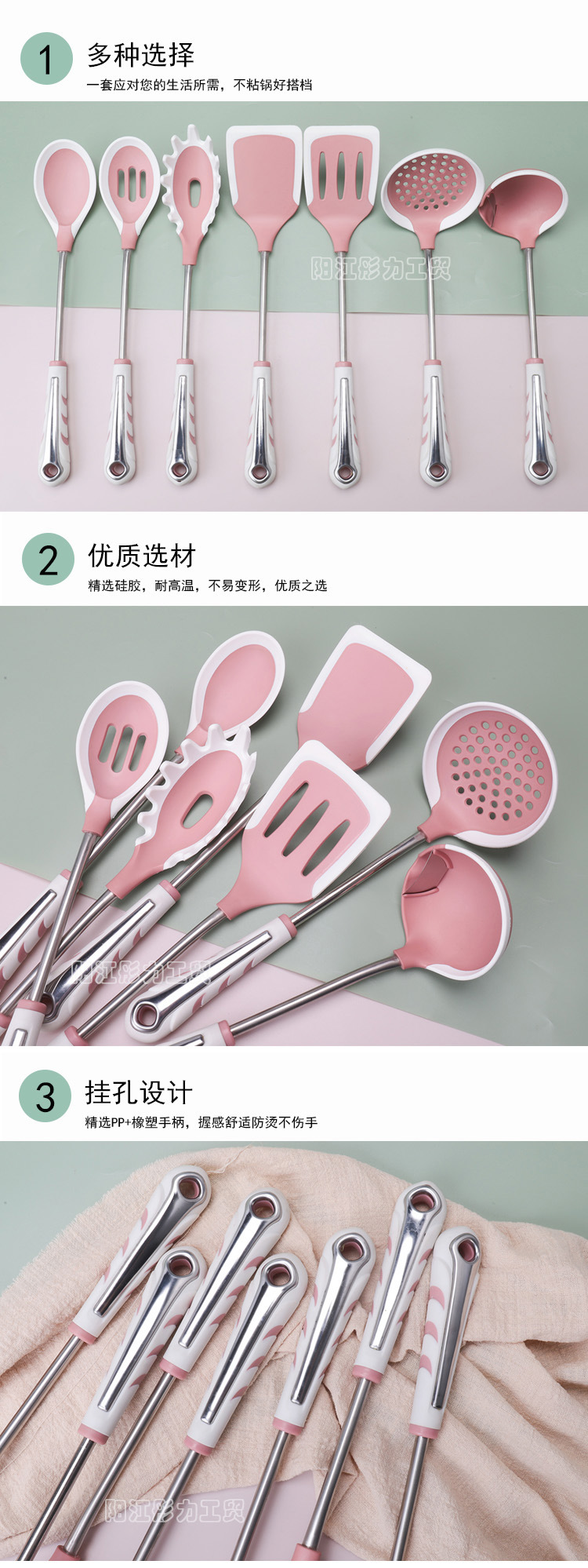 액체 실리콘 나무 손잡이 실리콘 주방용품 세트 비 스틱 팬 요리 숟가락과 삽 7 조각 세트 주방 도구 공장