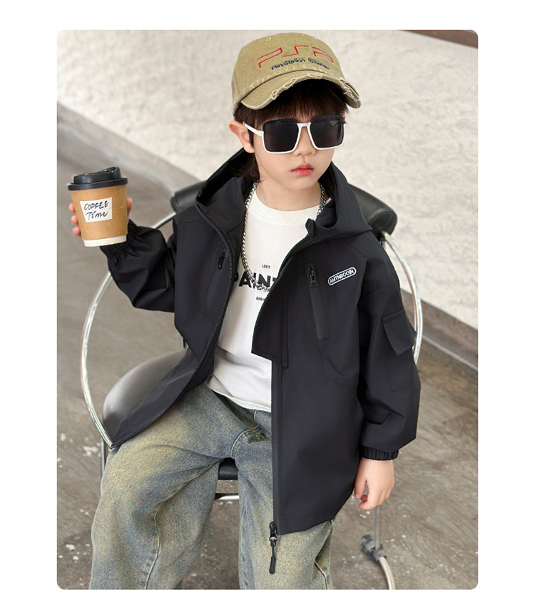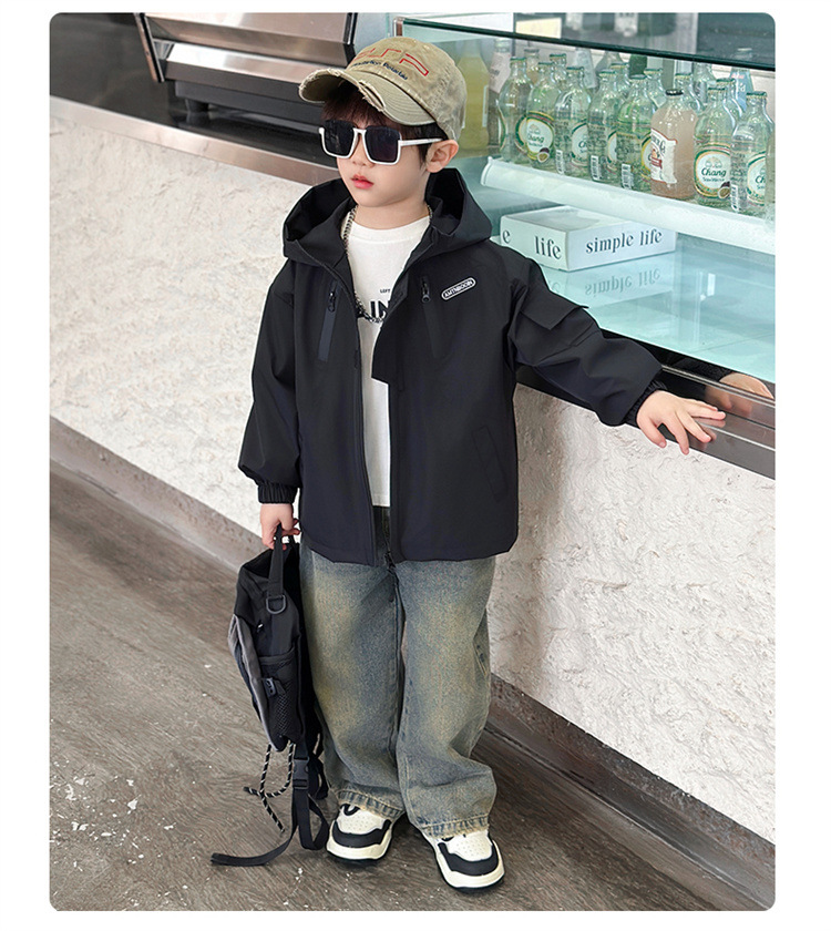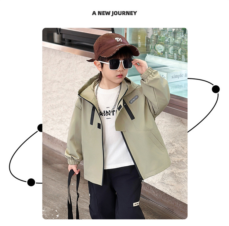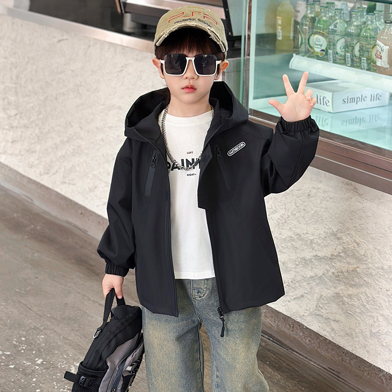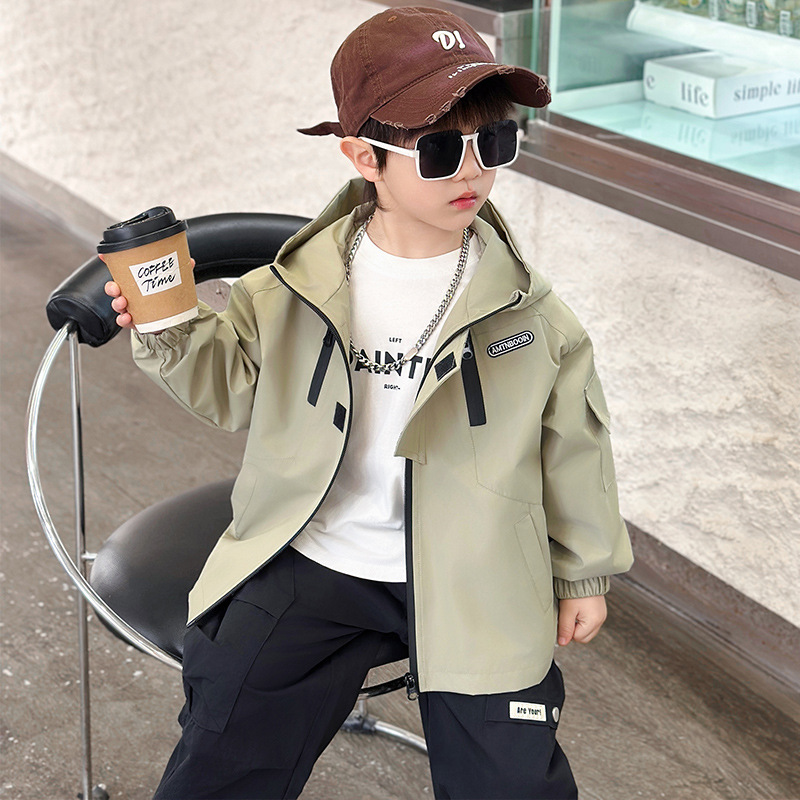 소년 코트 가을 2025 새로운 어린이 봄과 가을 야외 충전 옷 소년 가을 잘 생긴 후드 탑