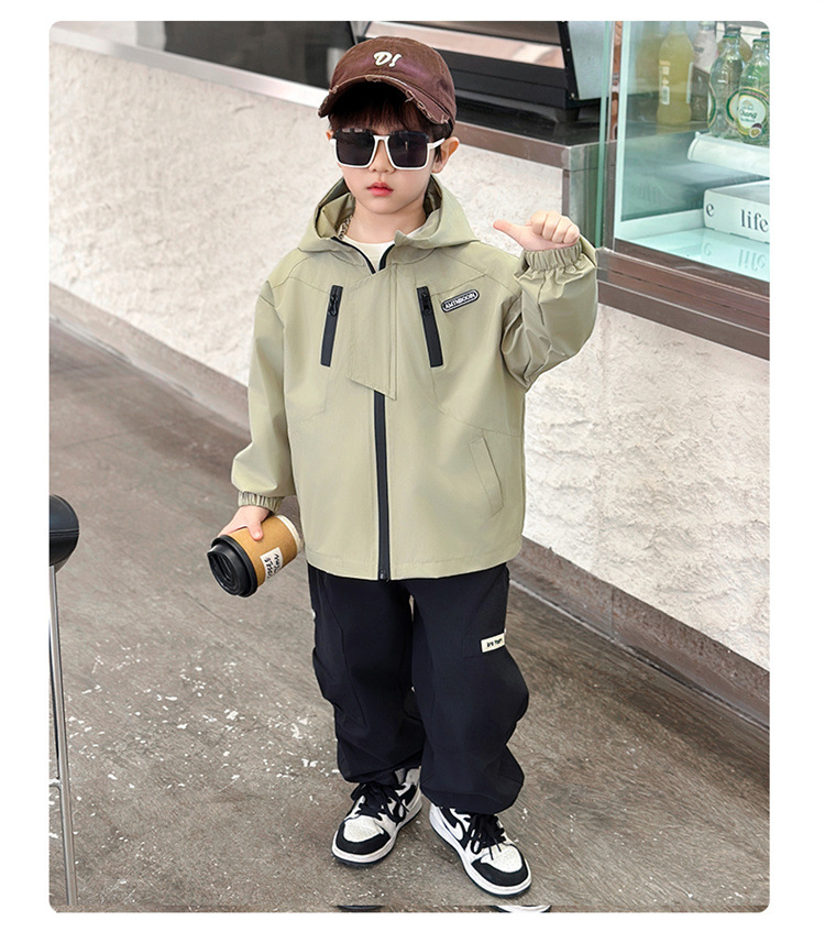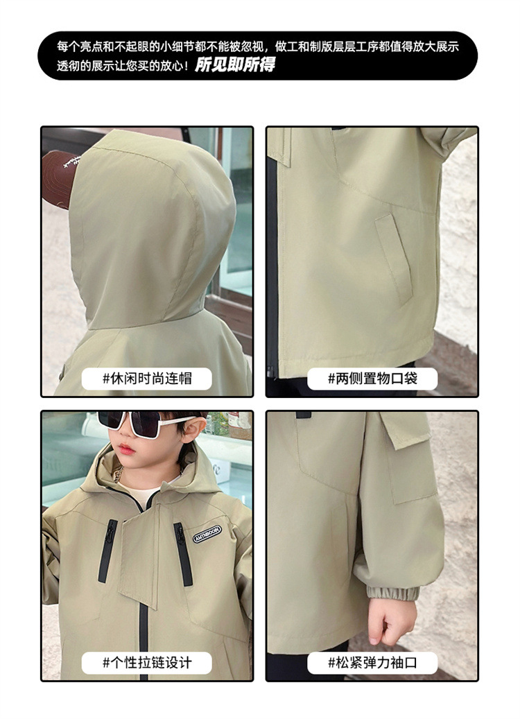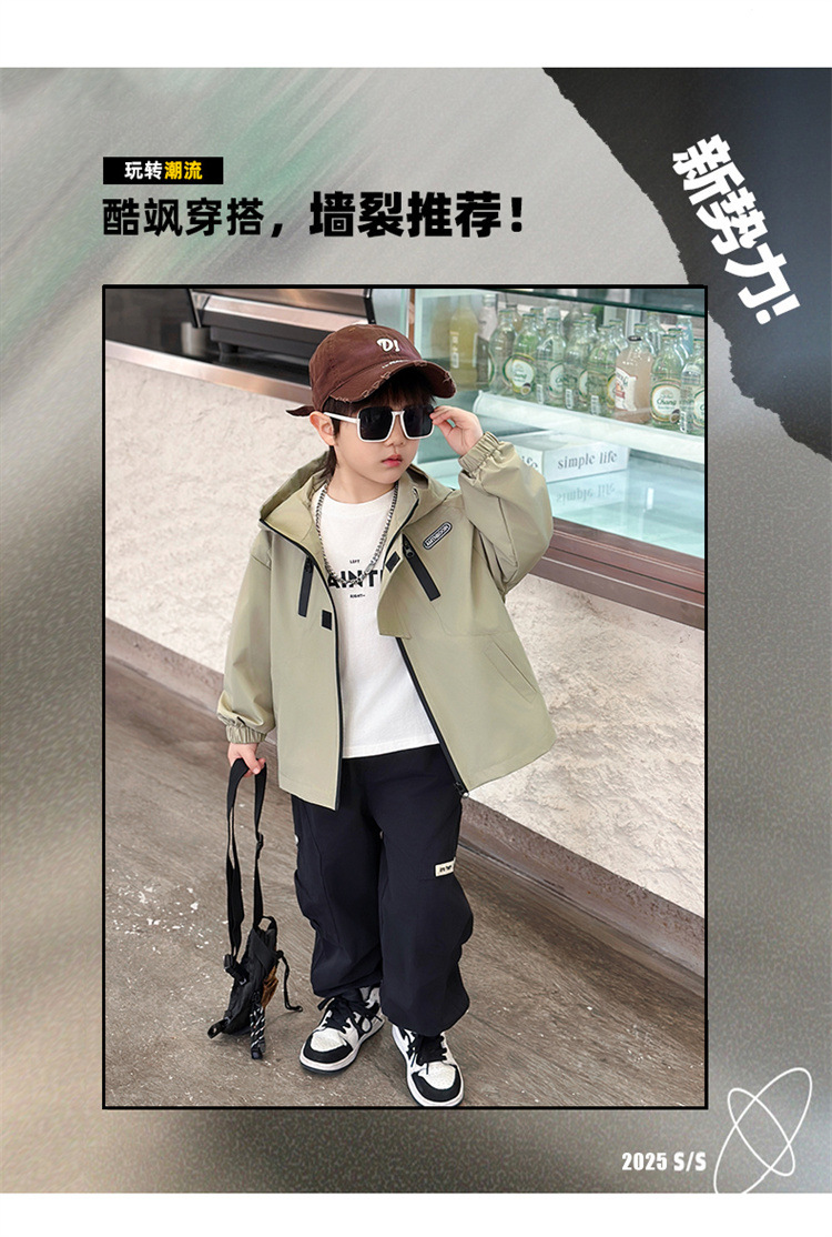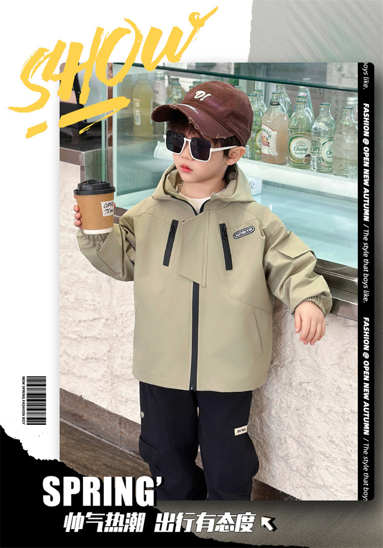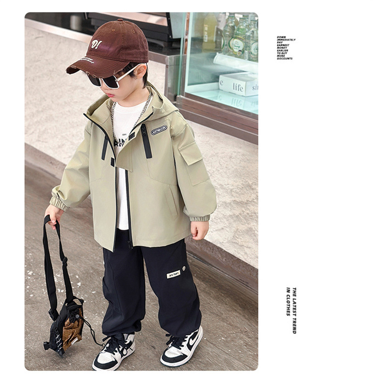 소년 코트 가을 2025 새로운 어린이 봄과 가을 야외 충전 옷 소년 가을 잘 생긴 후드 탑
