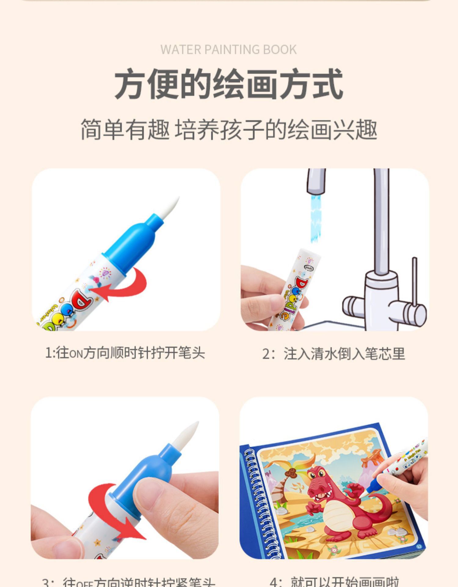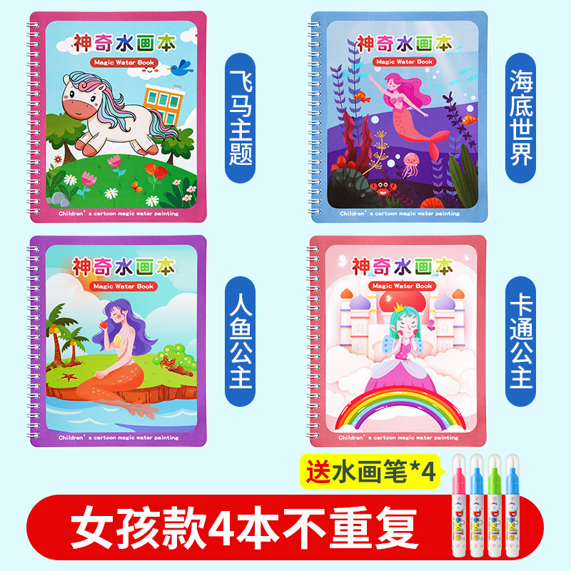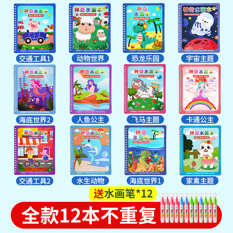 어린이 마법의 물 그림 책 반복되는 낙서 그림 유치원 물 그림 책 아기 퍼즐 컬러 페인팅 책스토어 가기