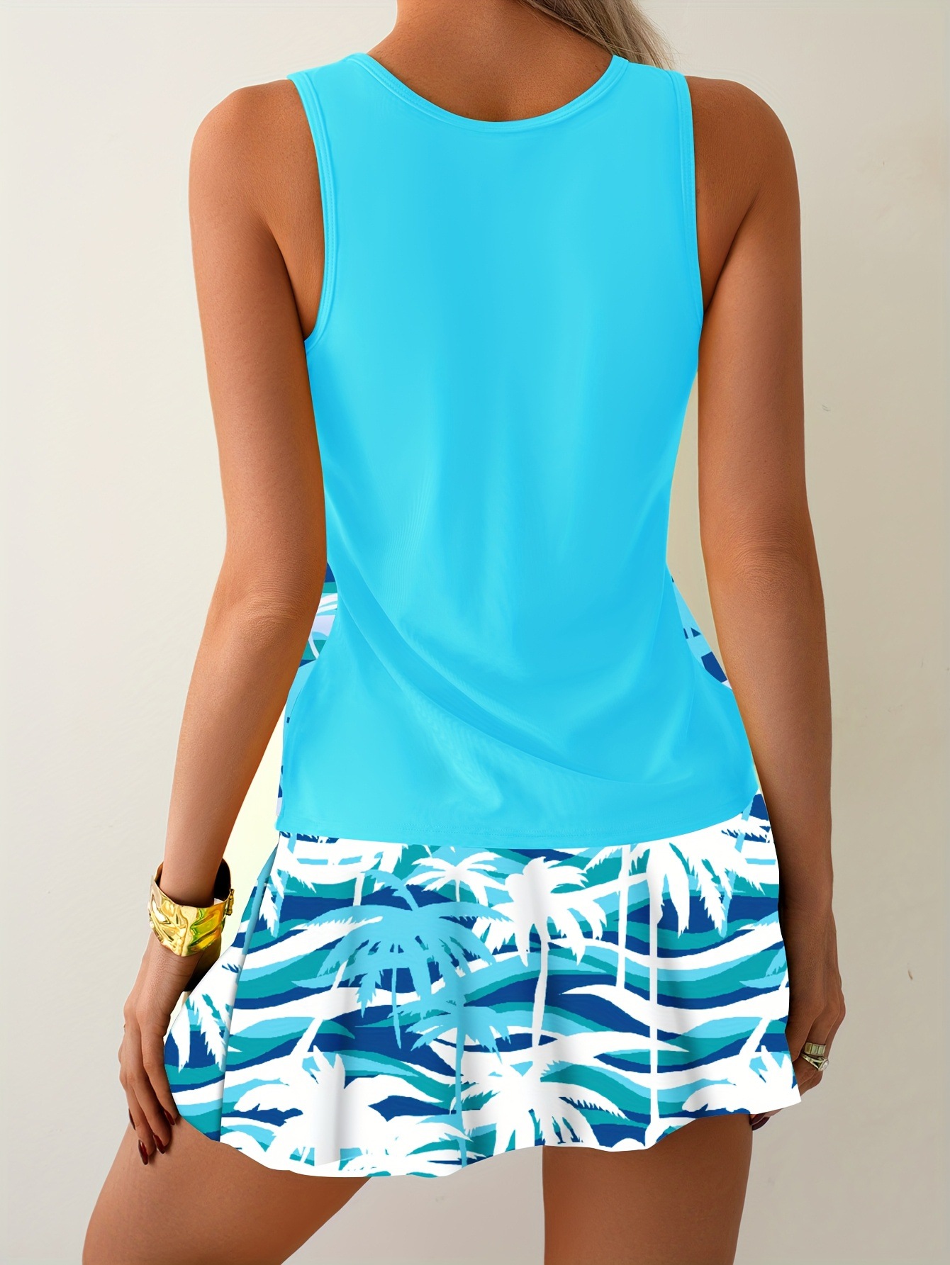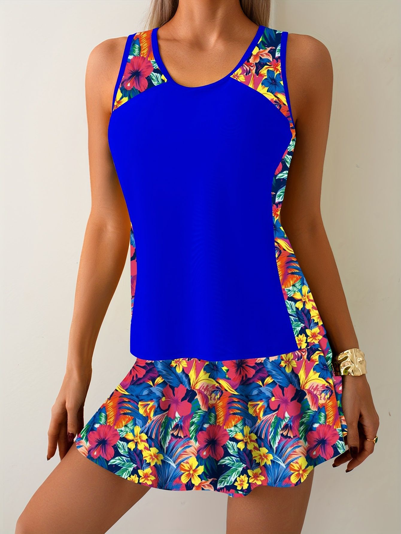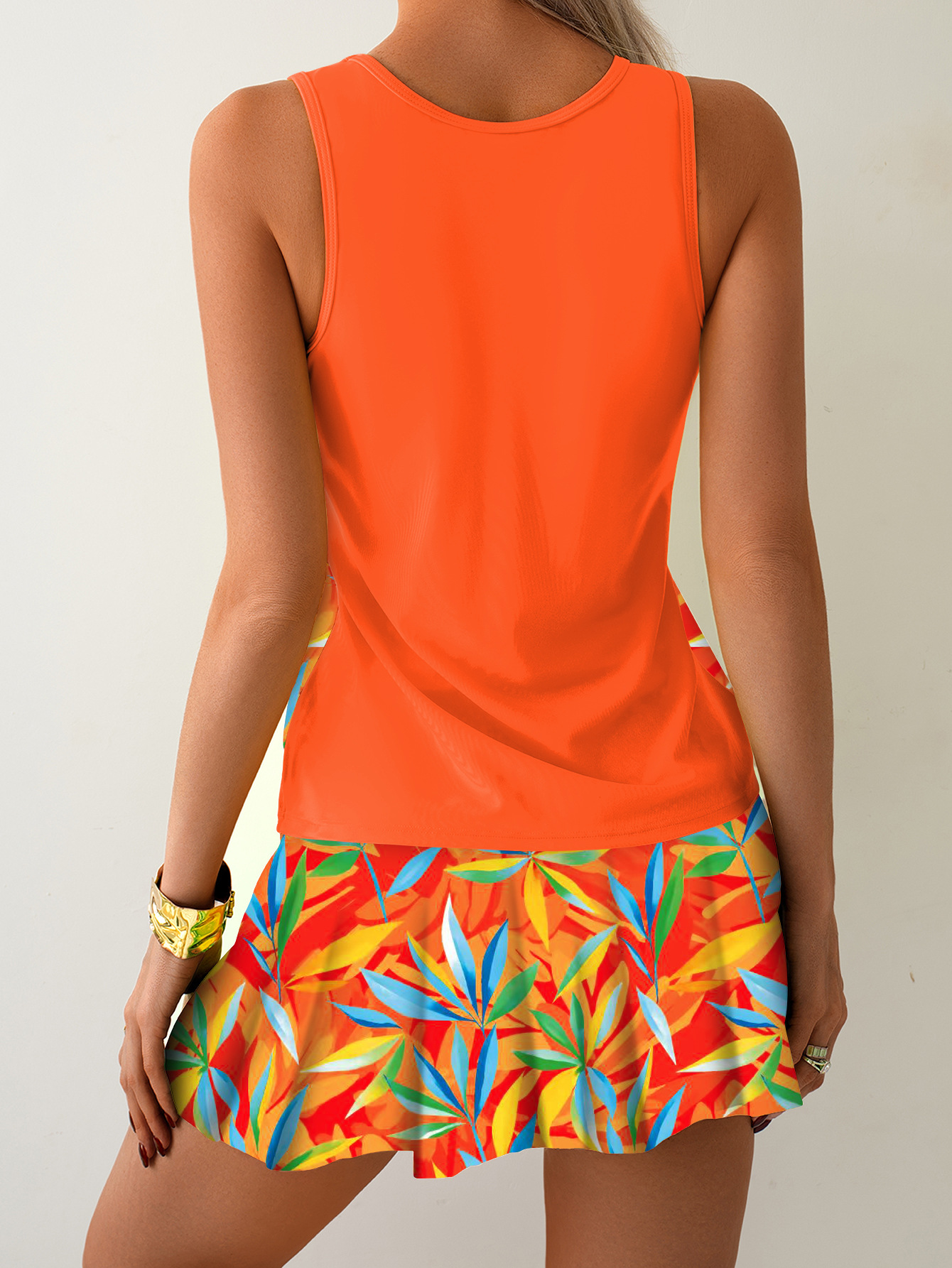 2025 유럽과 미국의 대외 무역 스포츠 스타일 분할 수영복 해바라기 패턴 밝은 색상 스커트 수영복 아마존 탄 키니스토어 가기