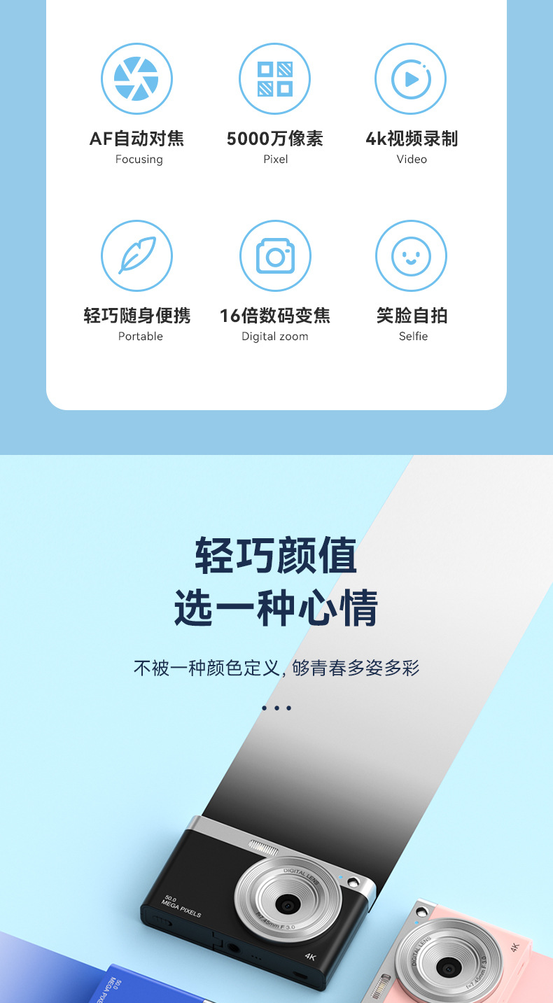 레트로 카메라 학생 휴대용 카메라 HD 디지털 HD 스크린 디지털 카메라 AF 자동 초점스토어 가기