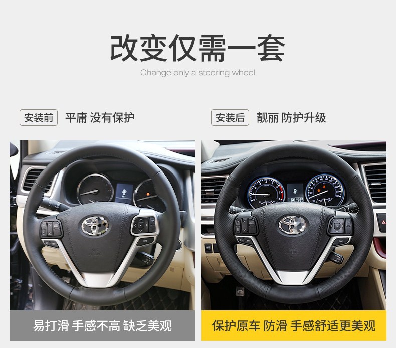 스티어링 휠 커버 가죽 손으로 꿰매는 Camry Highlander Corolla Lei Ling chr, 눈부신 RAV 명예 핸들 커버