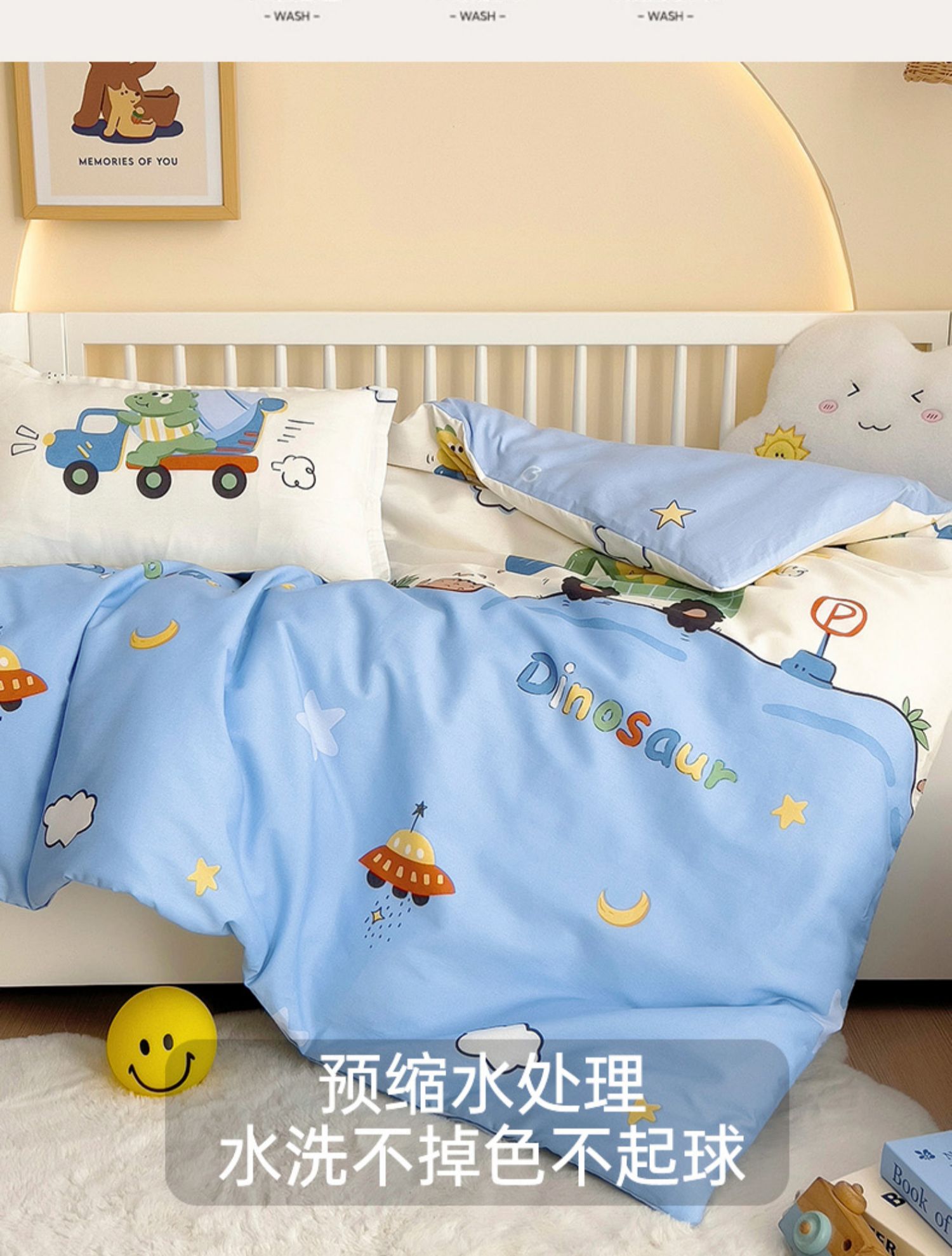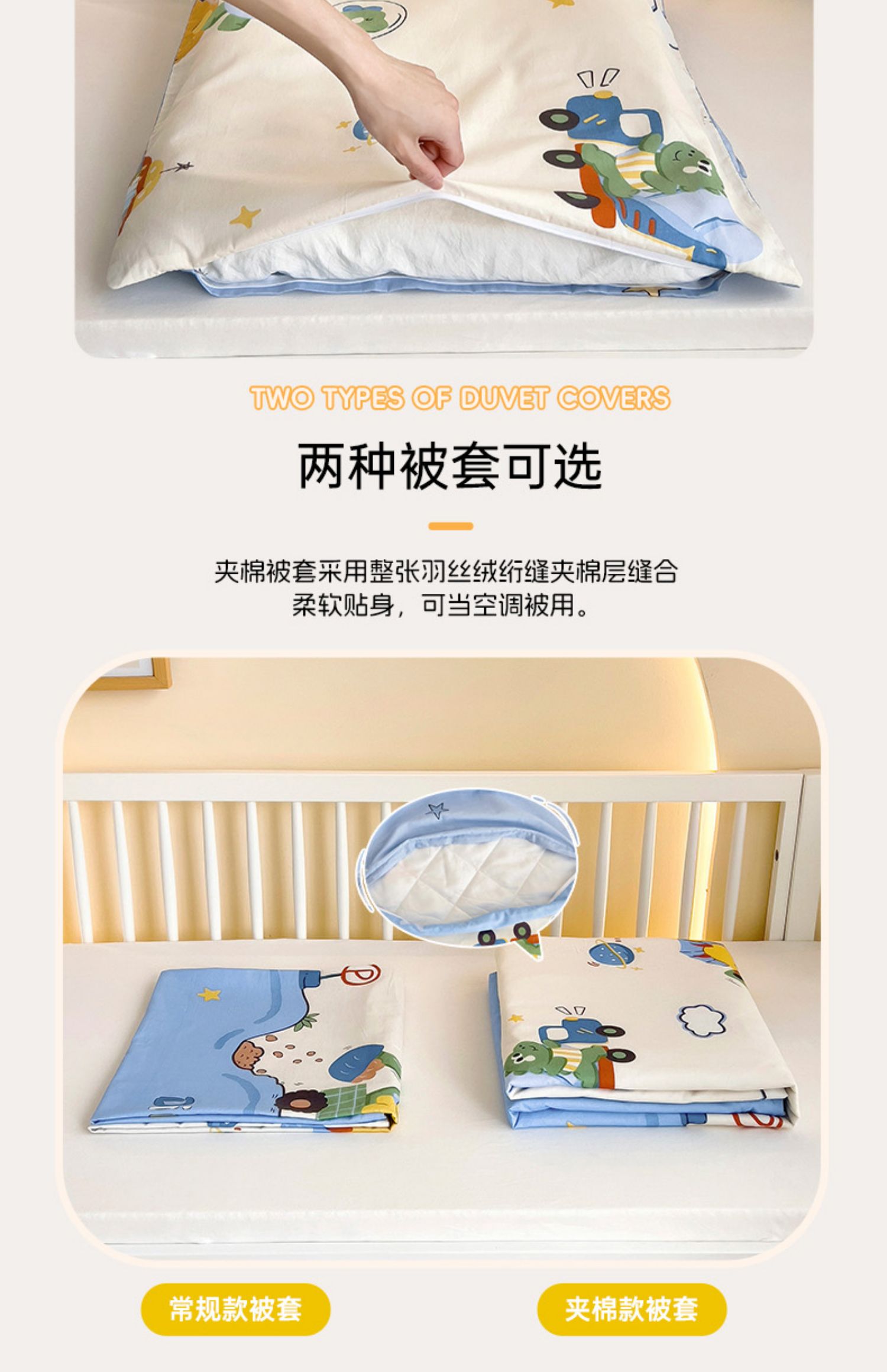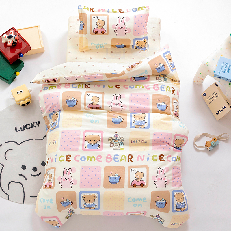 • 퀼팅스타일 - 면 아동용 3종세트 [퀼팅이불커버 120x150 + 쿠션커버 60x135 + 베갯잇 30x50]