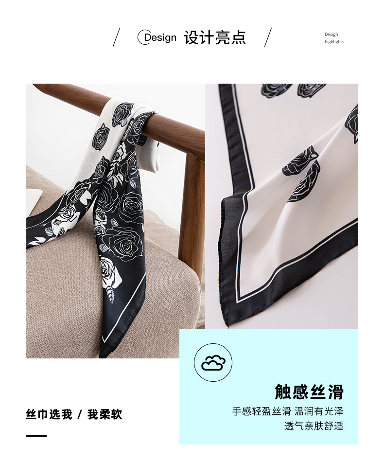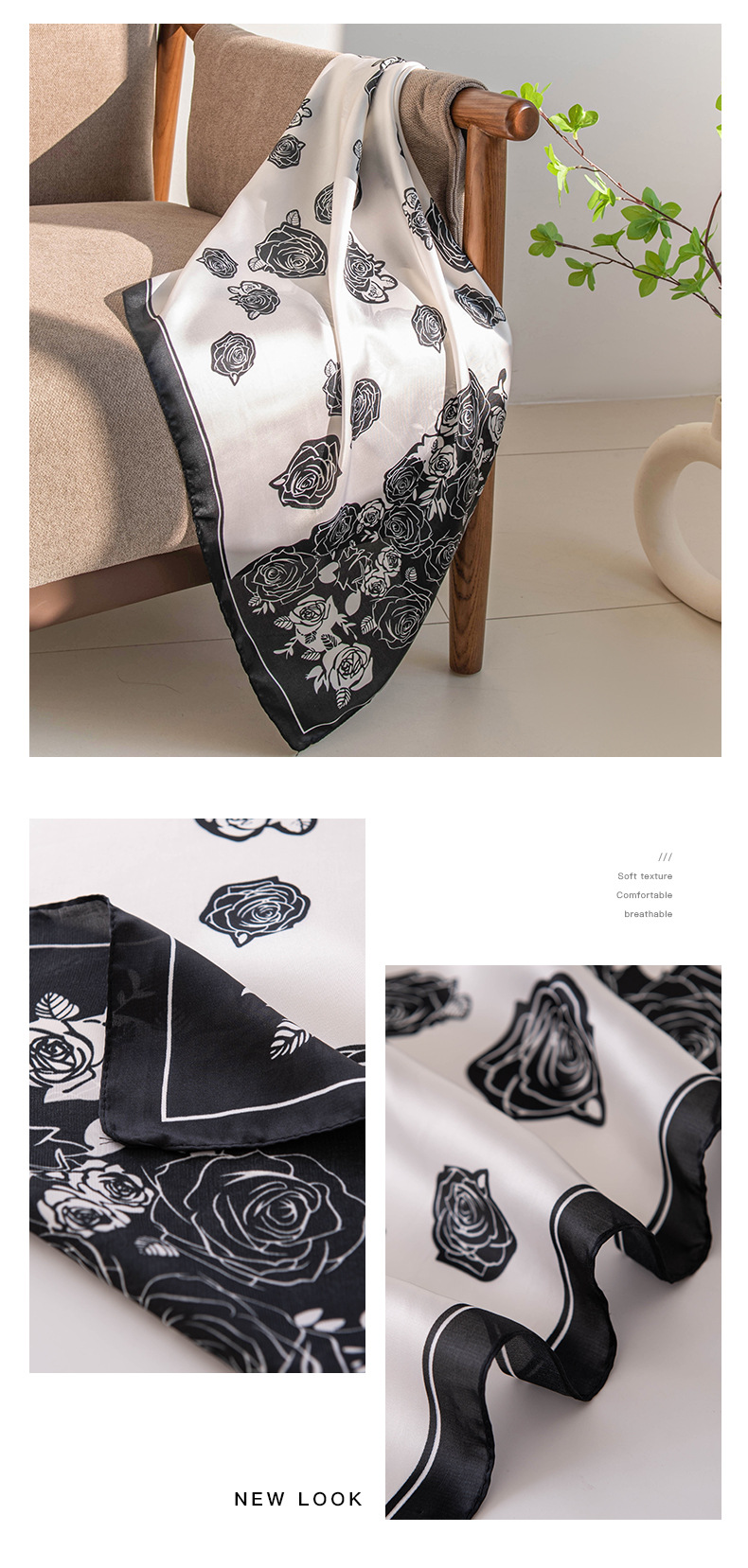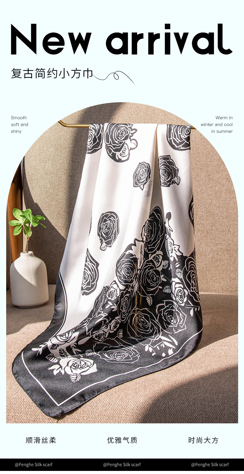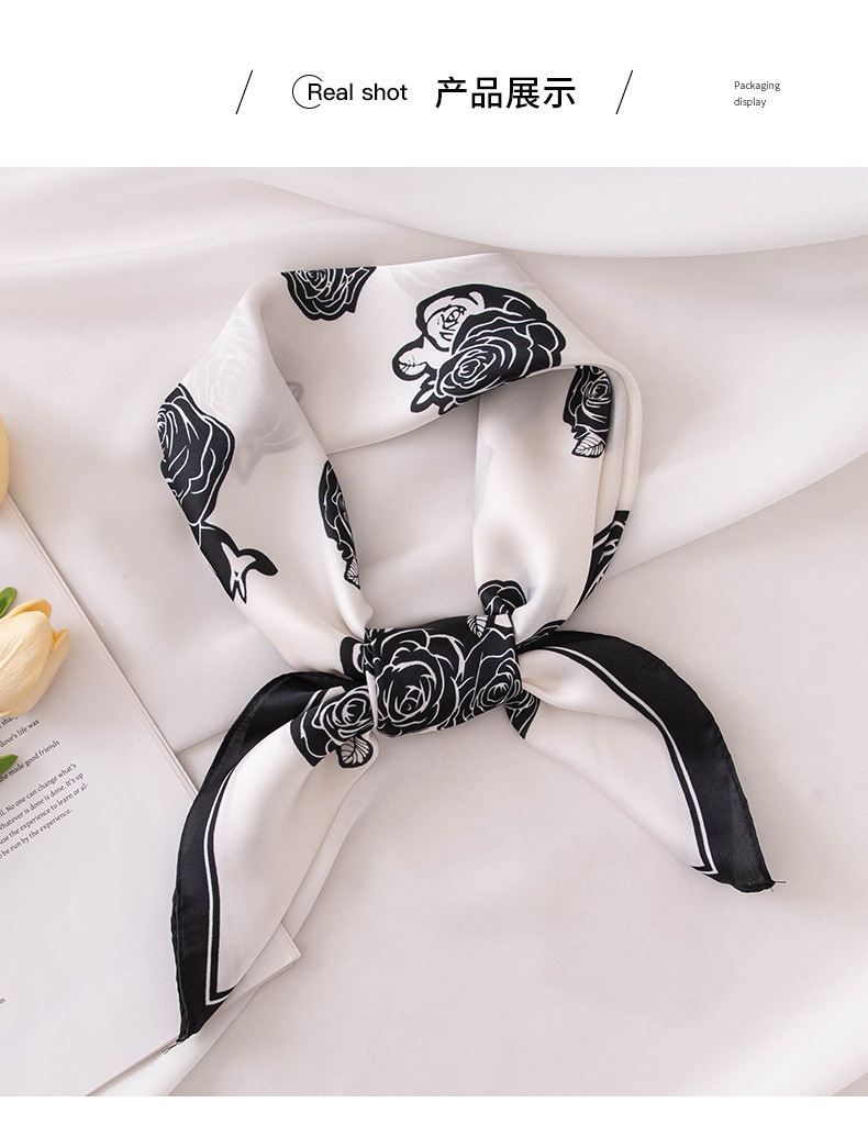 심플한 디자인의 실크 느낌 스카프 여성용 터키석색 캐슈플라워 70 스몰 스카프 실크 스카프 문학적 장식 패션 허리 스카프