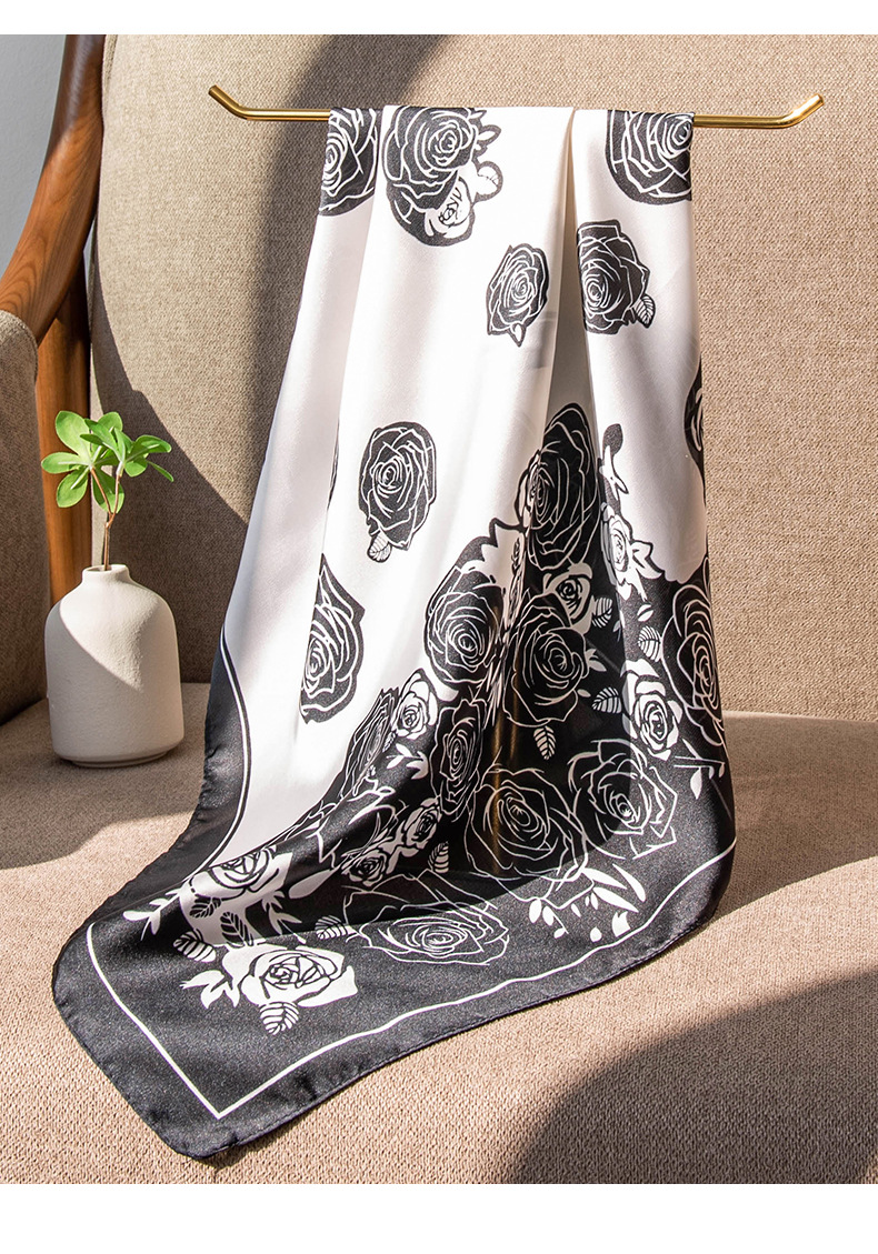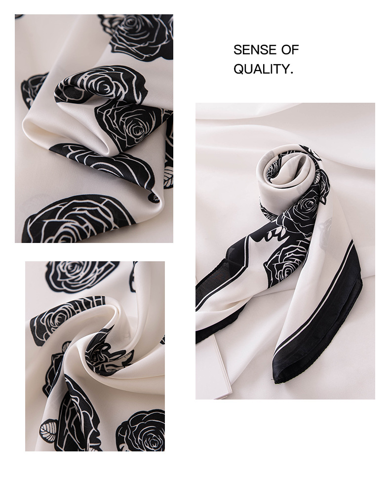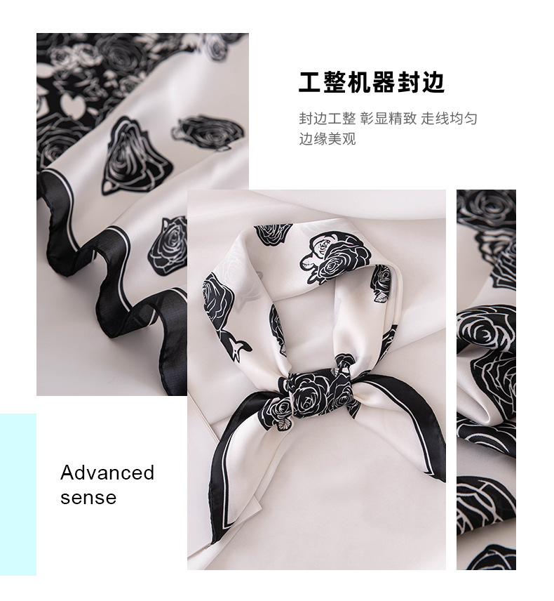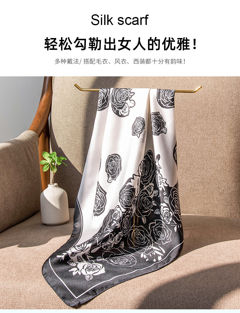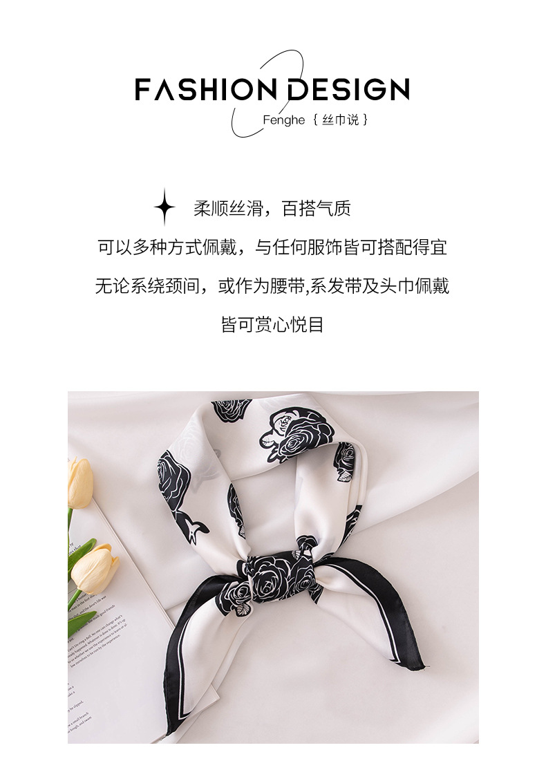 심플한 디자인의 실크 느낌 스카프 여성용 터키석색 캐슈플라워 70 스몰 스카프 실크 스카프 문학적 장식 패션 허리 스카프