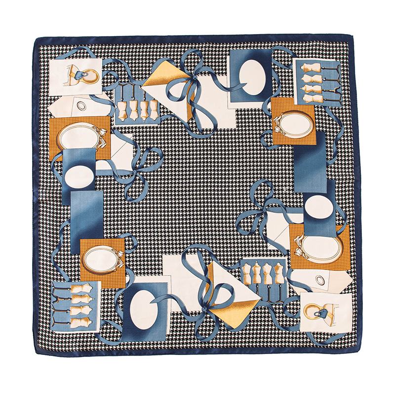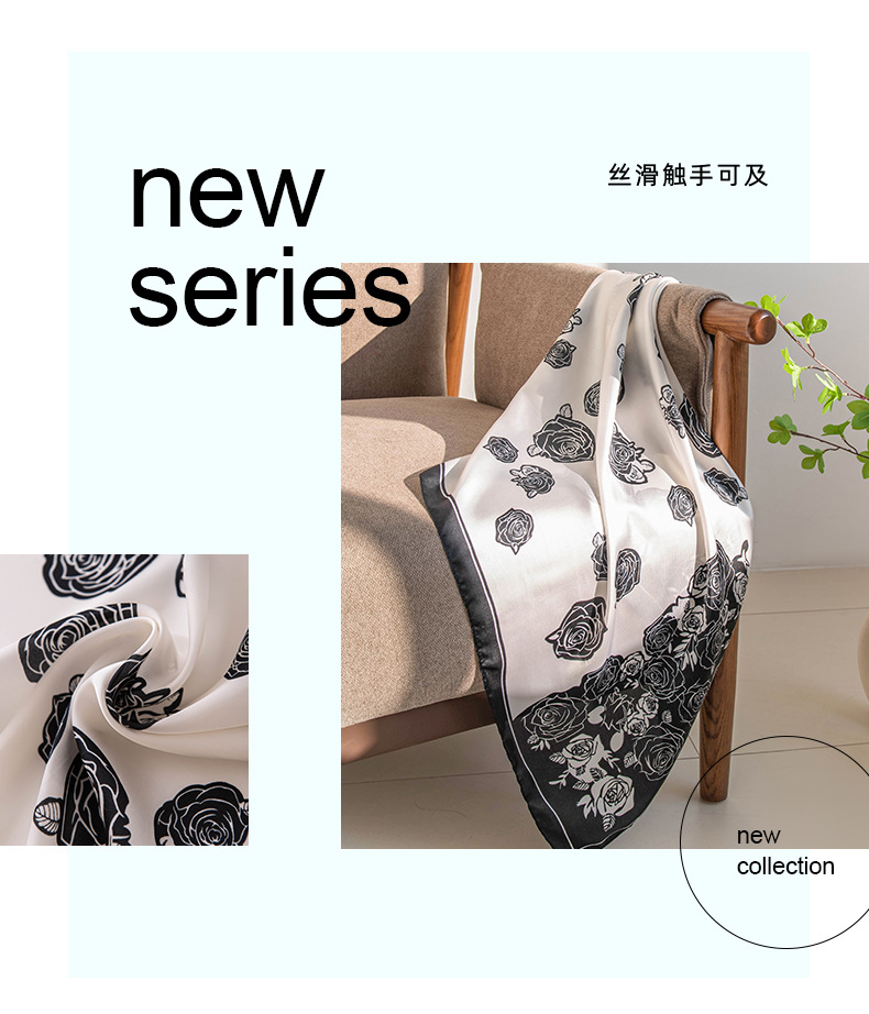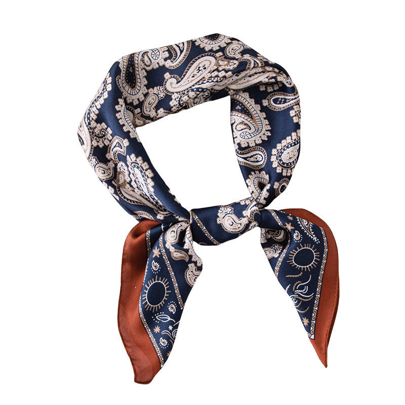 심플한 디자인의 실크 느낌 스카프 여성용 터키석색 캐슈플라워 70 스몰 스카프 실크 스카프 문학적 장식 패션 허리 스카프스토어 가기