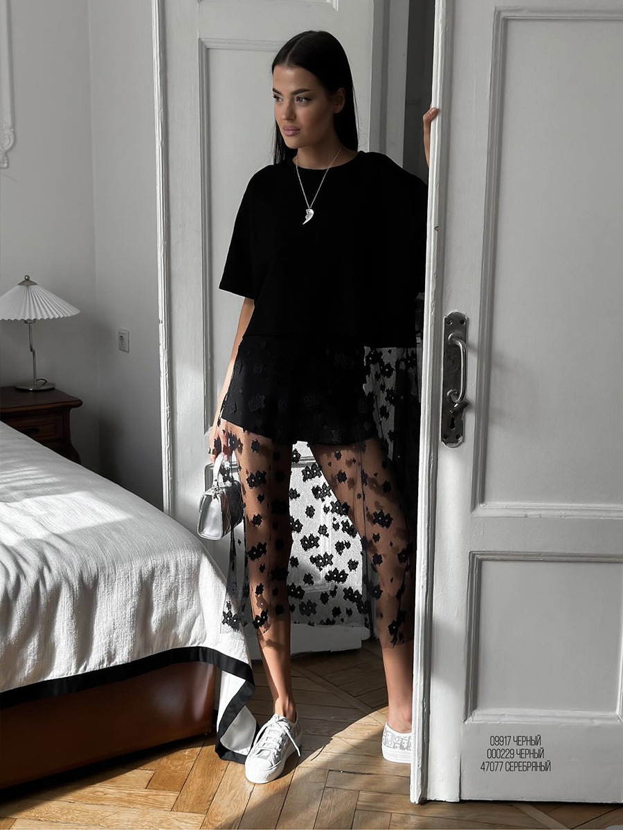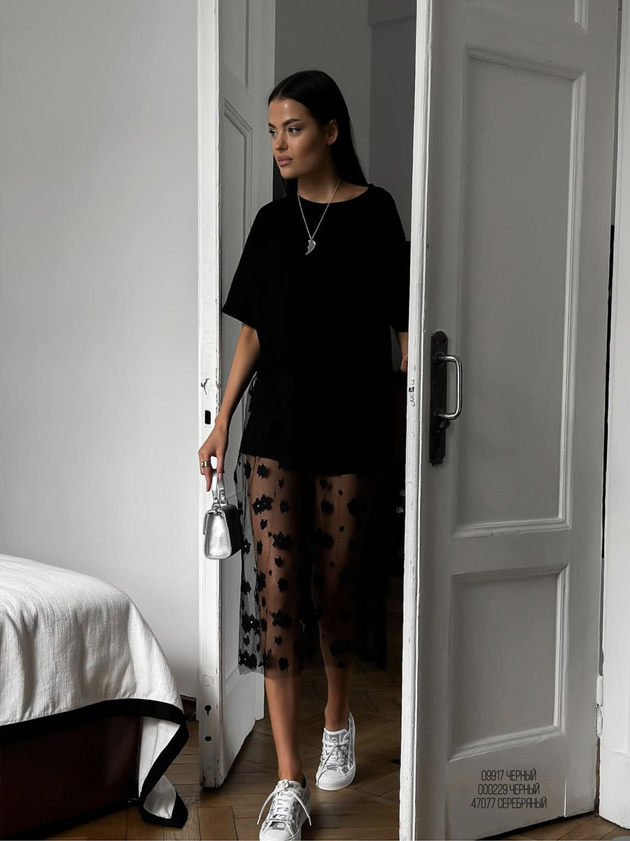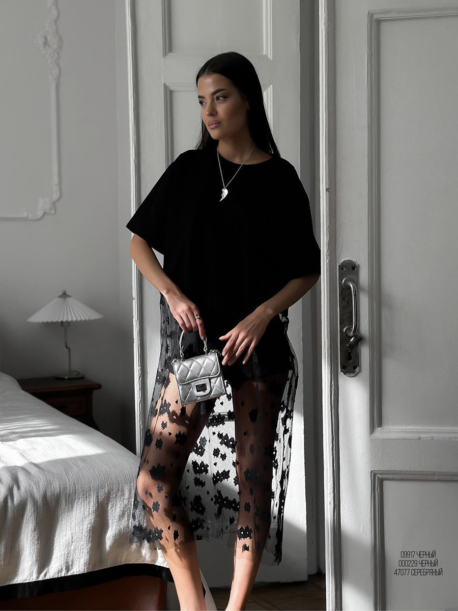 2026년 신상 유럽 및 미국 스타일 섹시 여성복 롱 러브 하트 메쉬 패치워크 루즈핏 반팔 티셔츠 원피스스토어 가기
