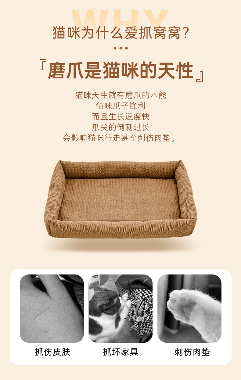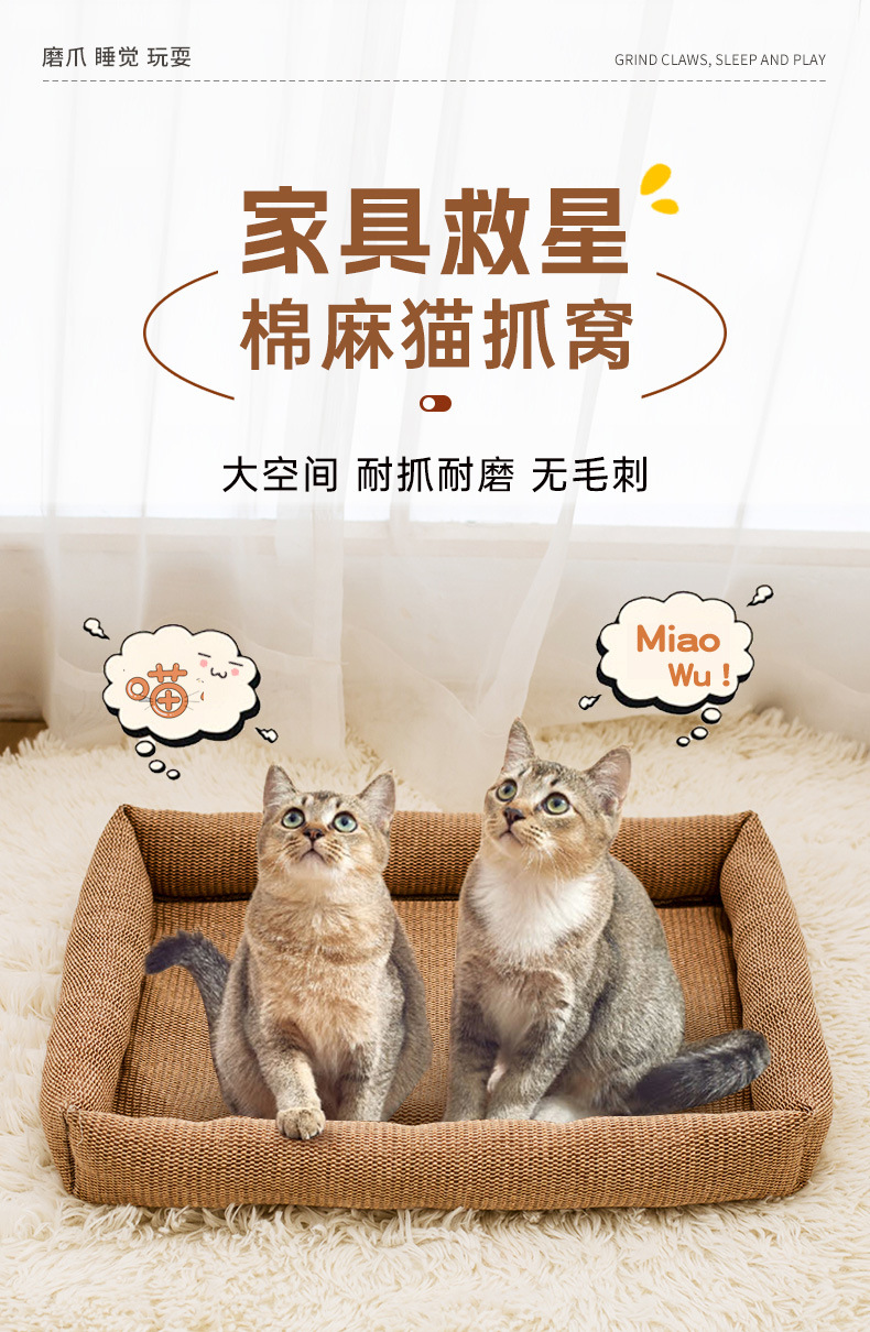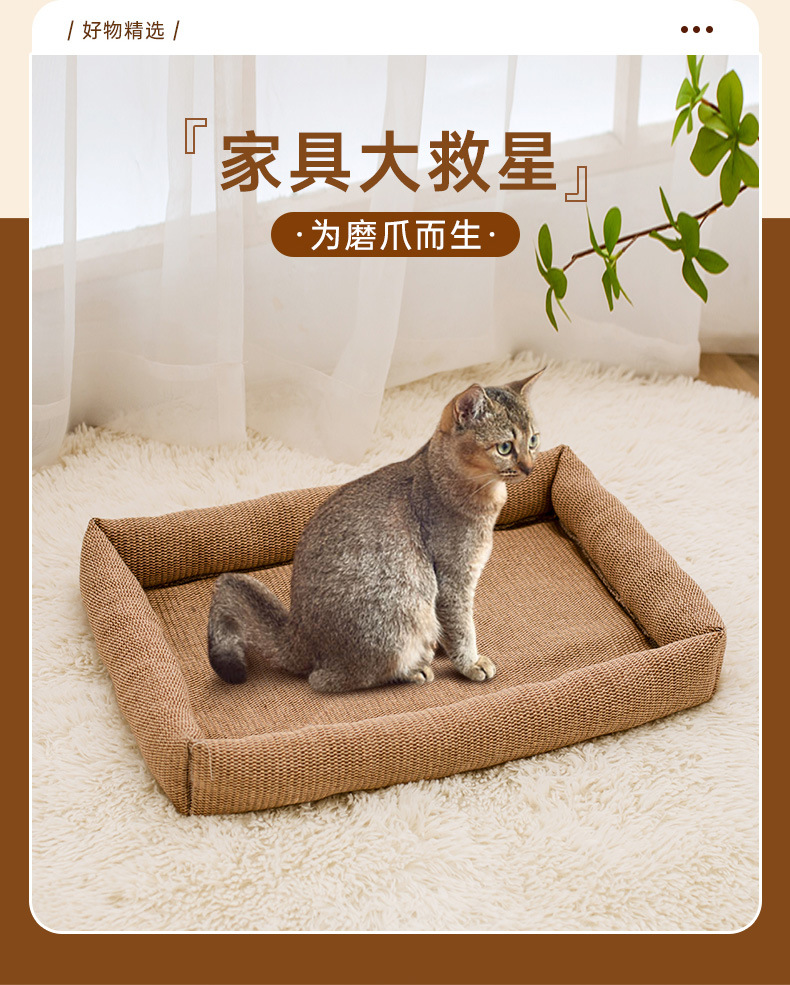 사계절 유니버설 일반 마취 고양이 스크래치 보드 내마모성 비 산조각 Sisal 직사각형 미끄럼 연삭 발톱 애완 동물 네스트 리넨 고양이 둥지