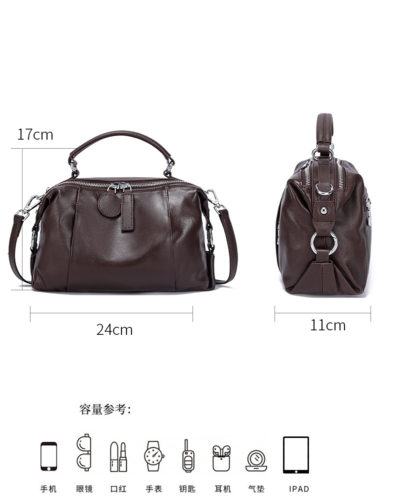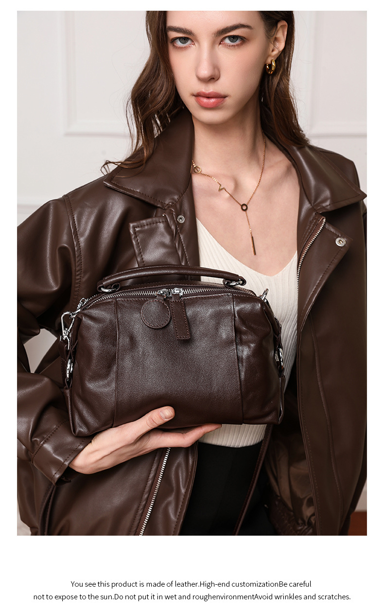 고급스러운 분위기의 보스턴 핸드백 2026년 신상 레트로 럭셔리 소가죽 여성용 가방 통근용 다용도 숄더백스토어 가기