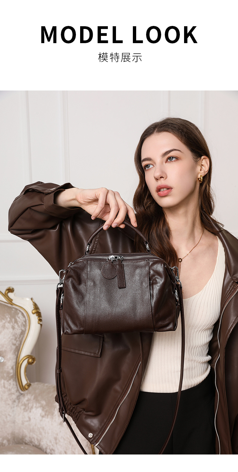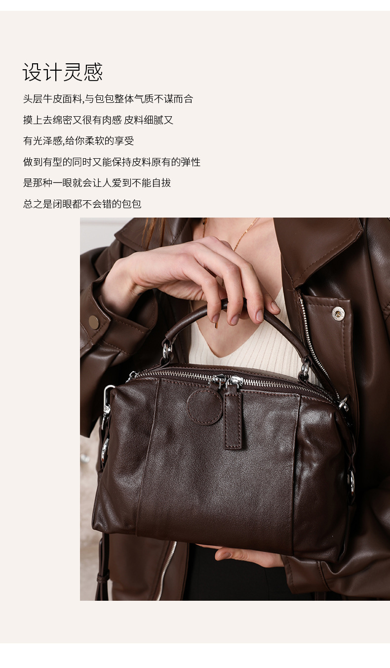 고급스러운 분위기의 보스턴 핸드백 2026년 신상 레트로 럭셔리 소가죽 여성용 가방 통근용 다용도 숄더백