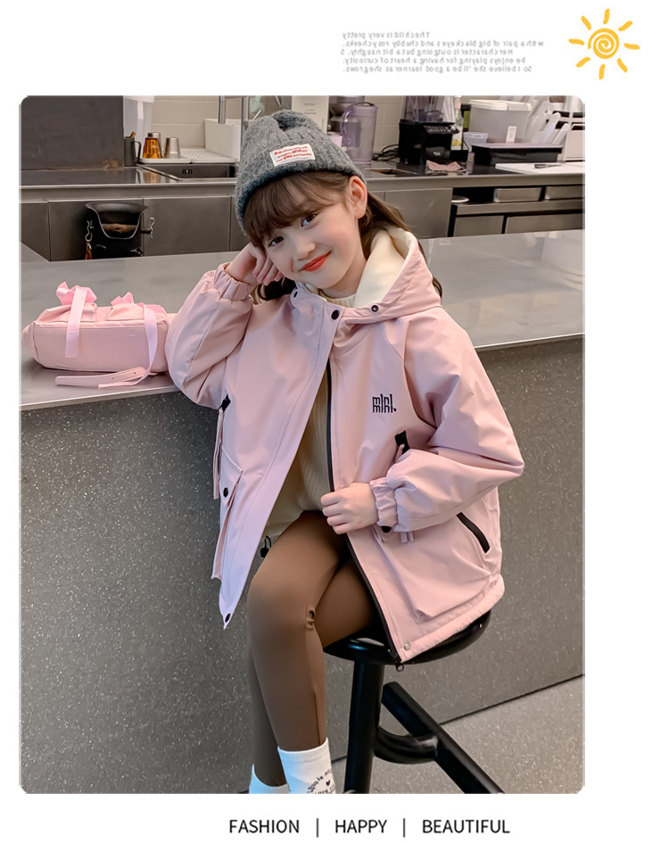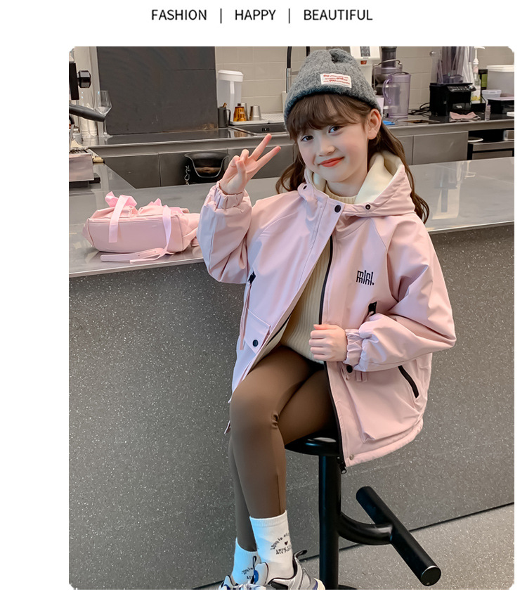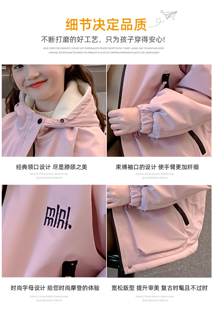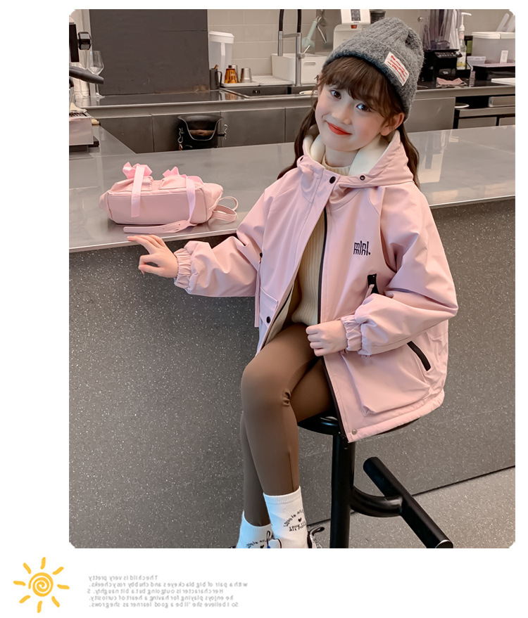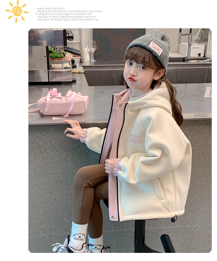 소녀 가을 코트 2025 새로운 어린이 서양식 소녀는 가을과 겨울을위한 기모 두꺼운 편지 충전 옷을 입습니다.스토어 가기