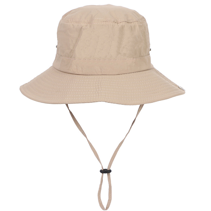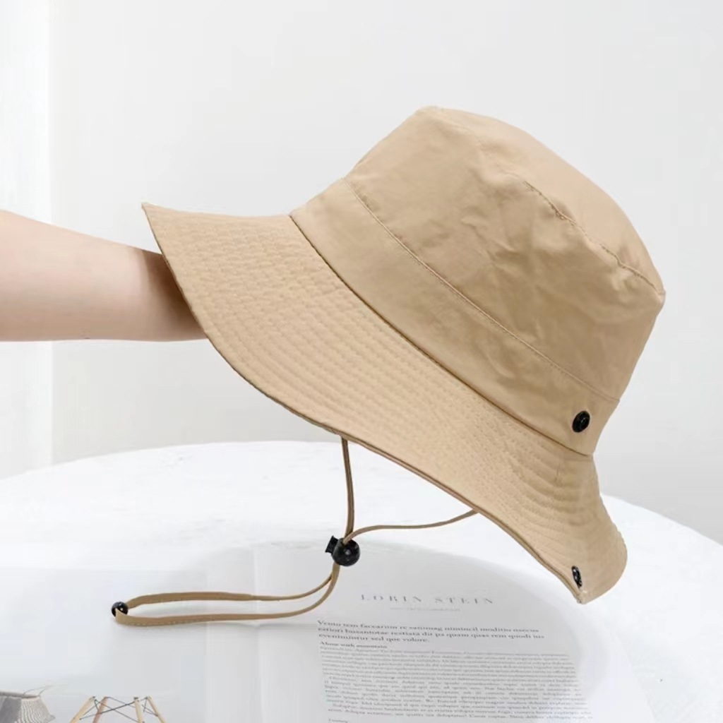 로고 프린트가 있는 크로스보더 어부 모자, 여성용 도매 여행 등산용 한국형 바람막이 끈이 달린 햇빛 가리개 모자