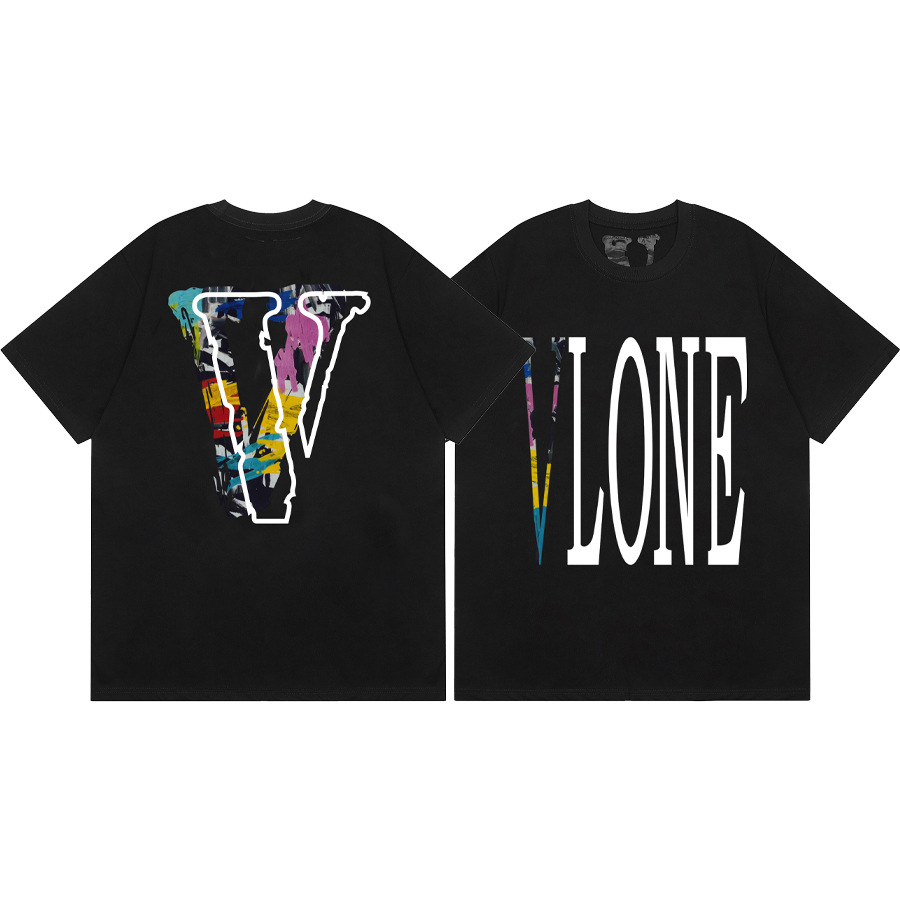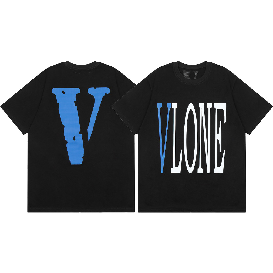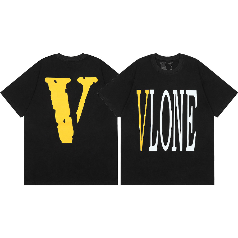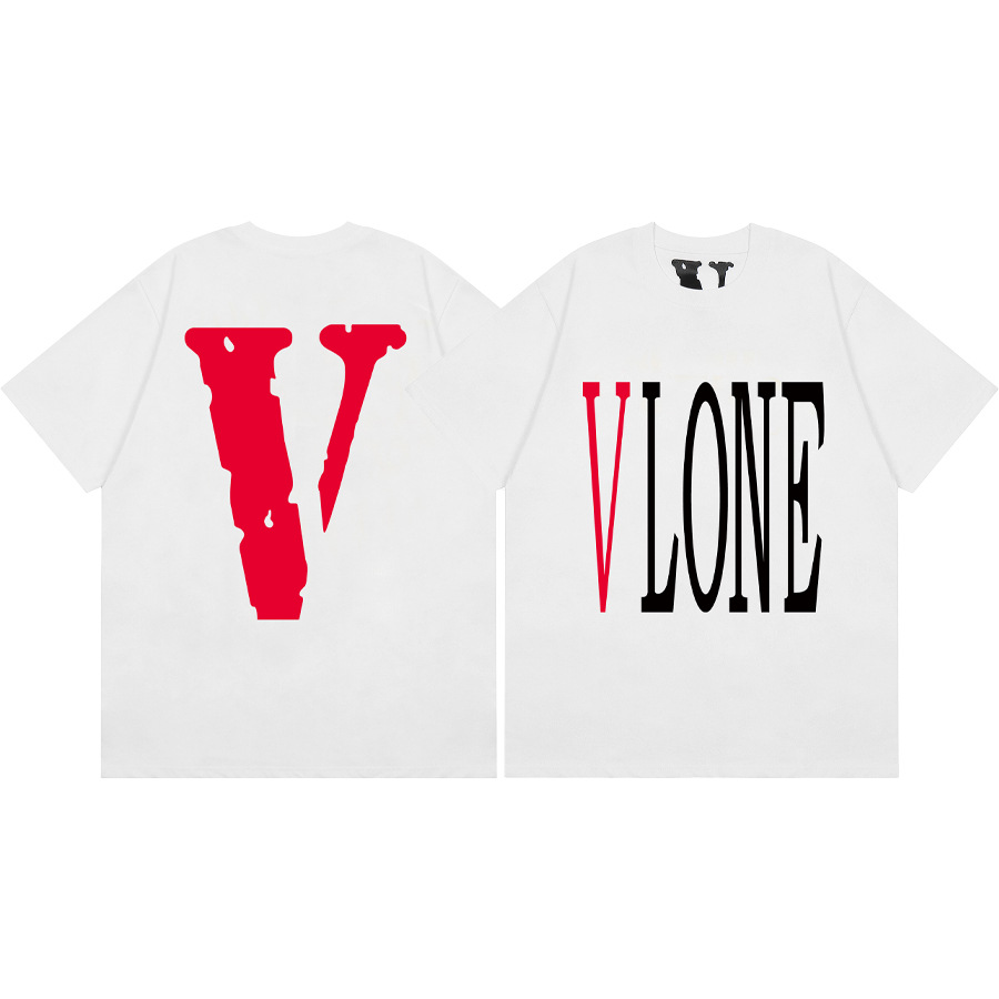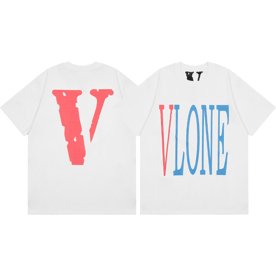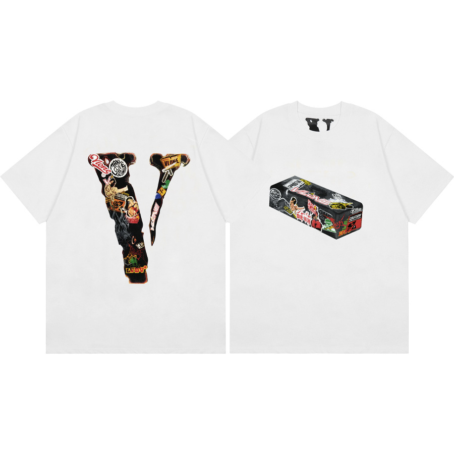 국경 간 유행 브랜드 VLONE JERRY 편지 대형 V 인쇄 남성 느슨한 캐주얼 반팔
