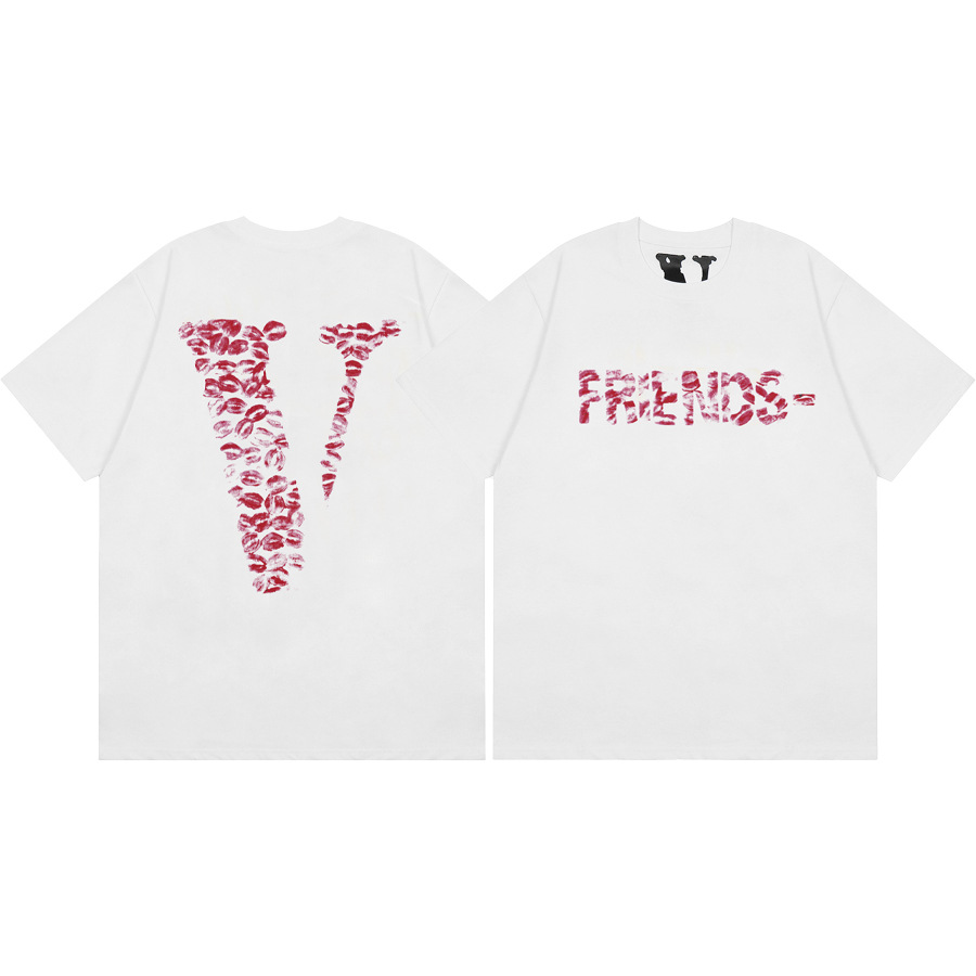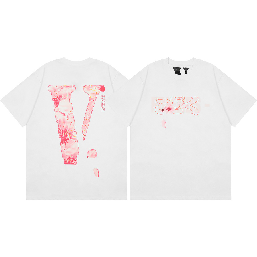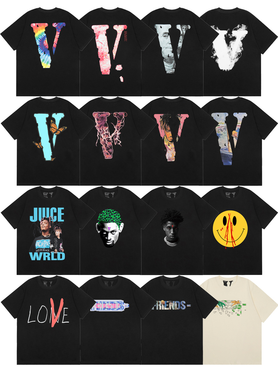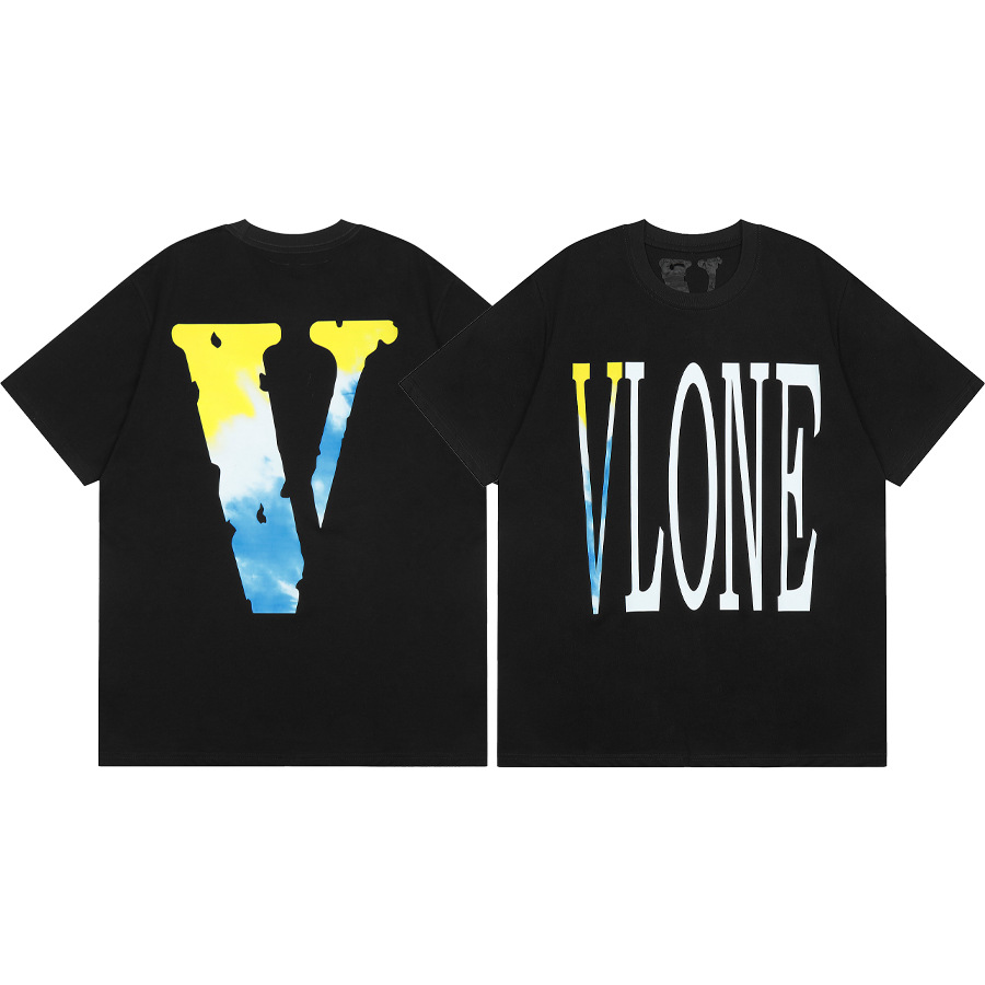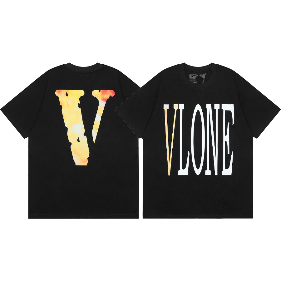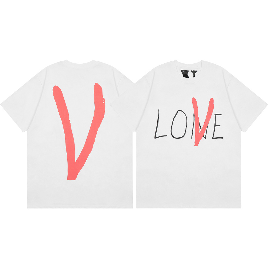 국경 간 유행 브랜드 VLONE JERRY 편지 대형 V 인쇄 남성 느슨한 캐주얼 반팔