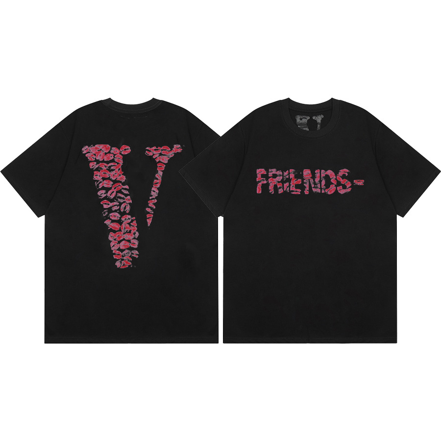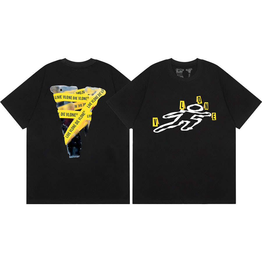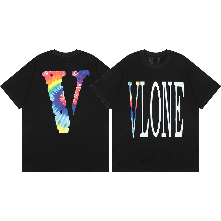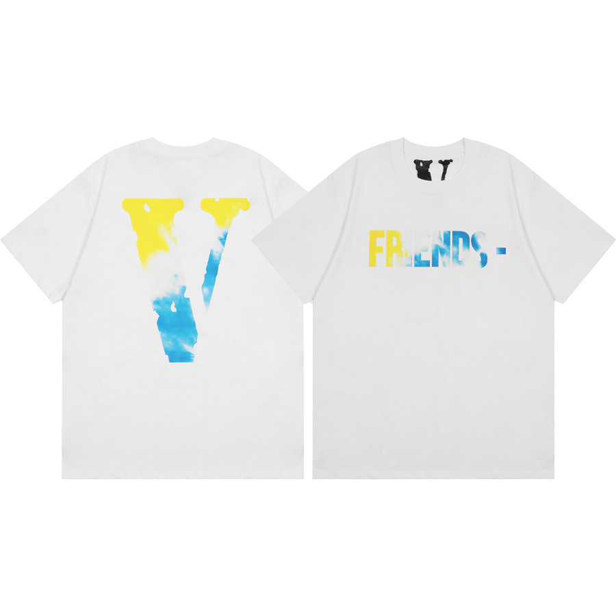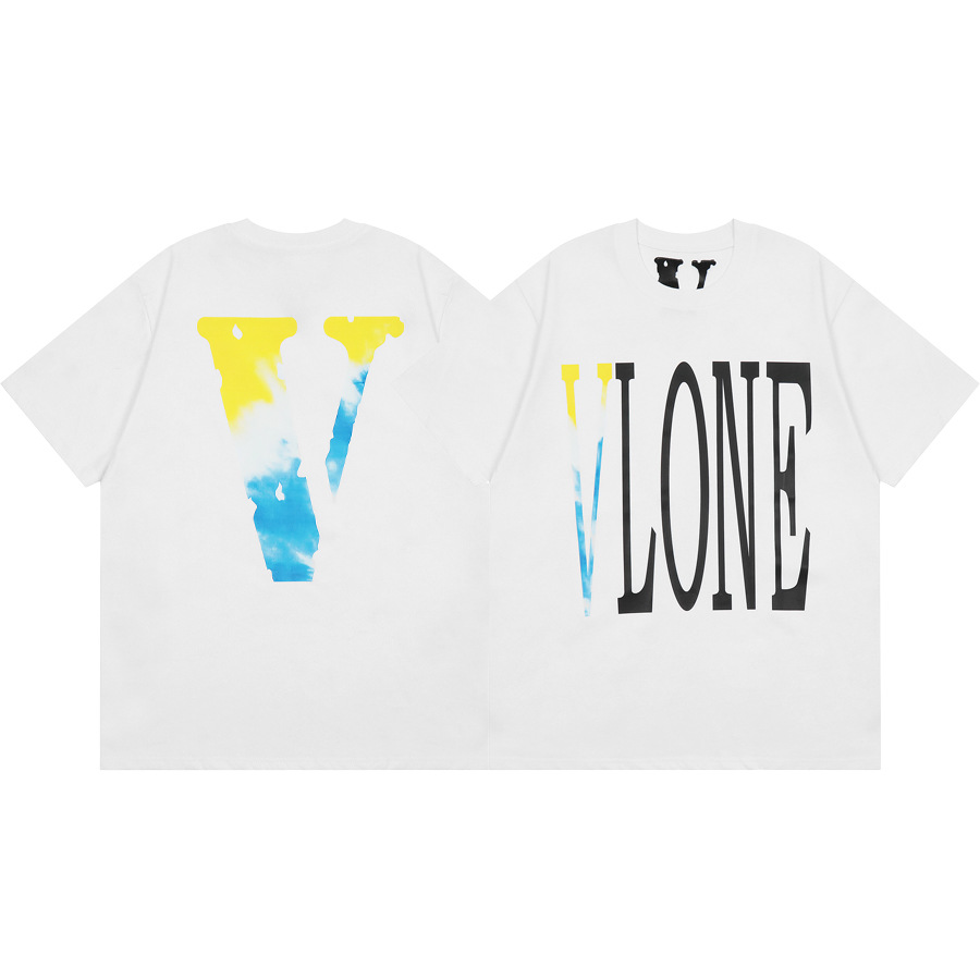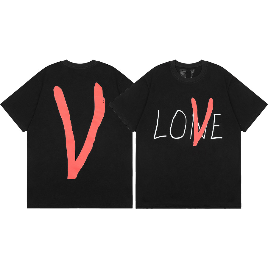 국경 간 유행 브랜드 VLONE JERRY 편지 대형 V 인쇄 남성 느슨한 캐주얼 반팔