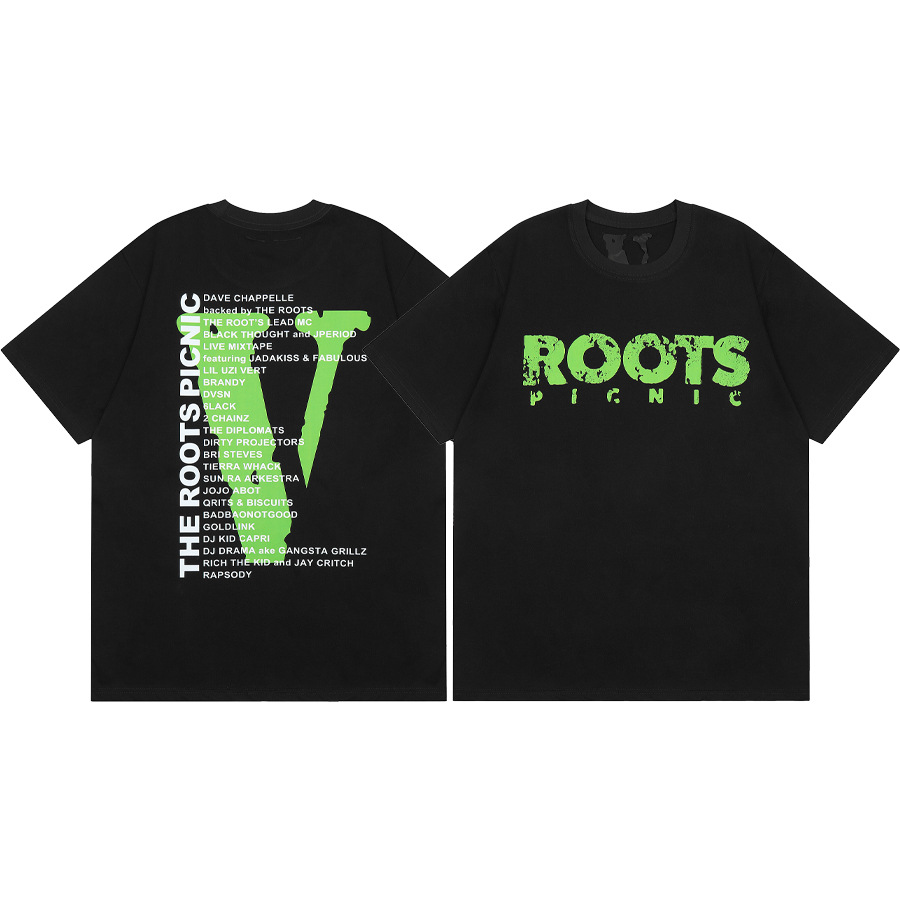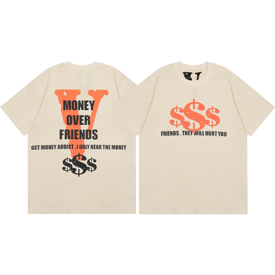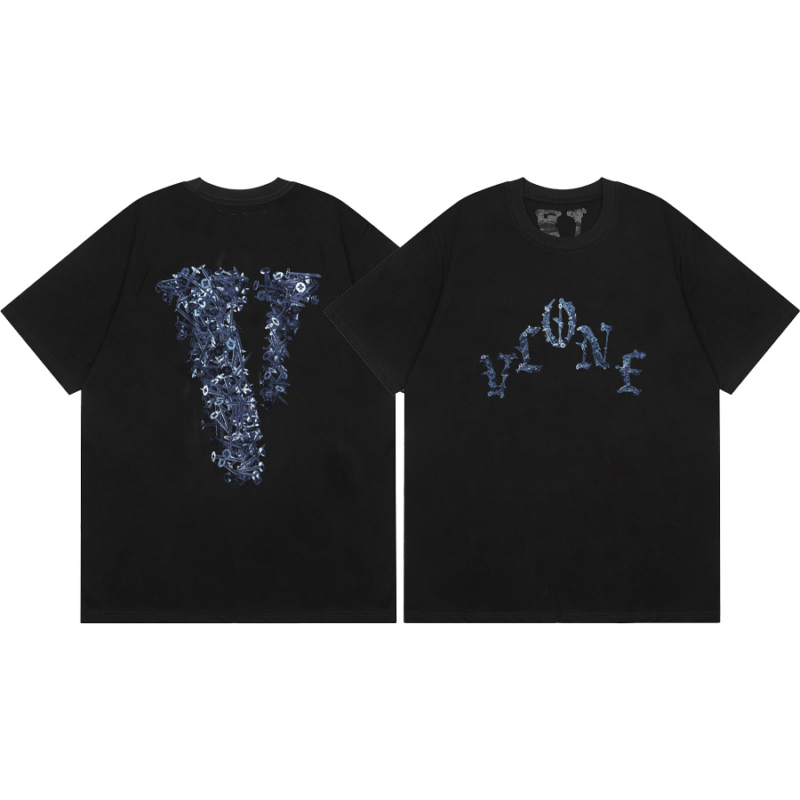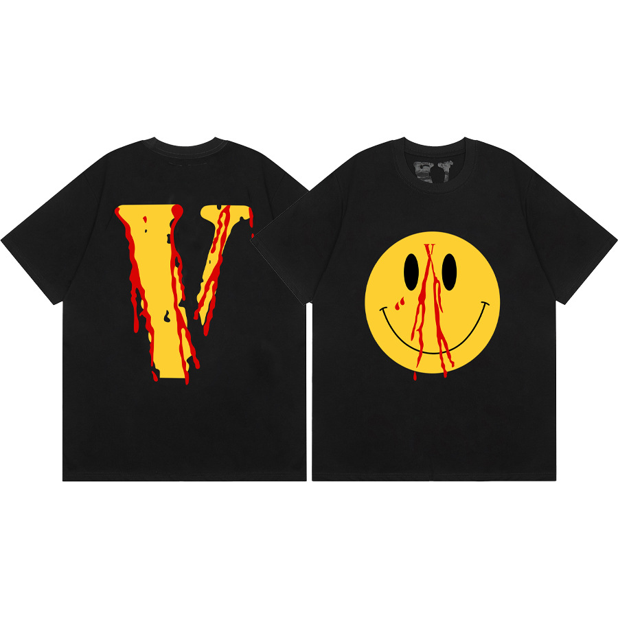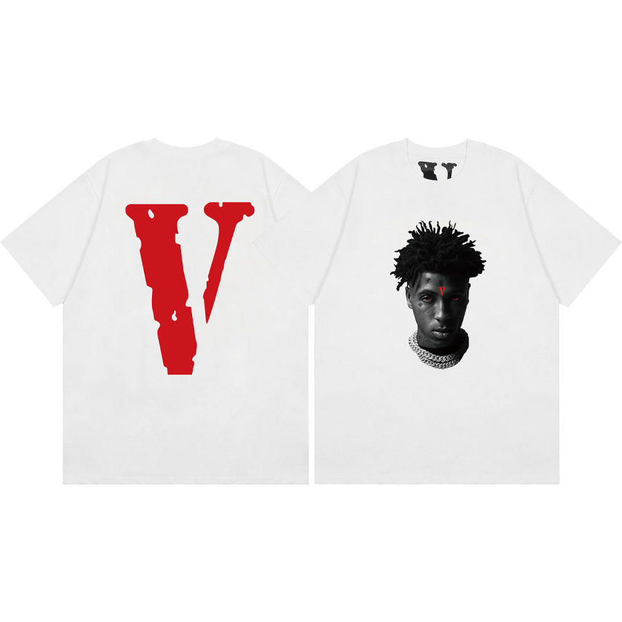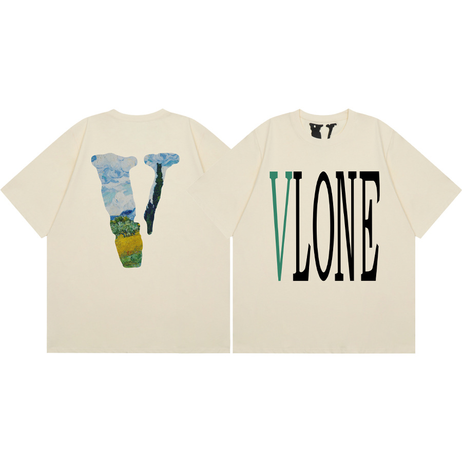 국경 간 유행 브랜드 VLONE JERRY 편지 대형 V 인쇄 남성 느슨한 캐주얼 반팔