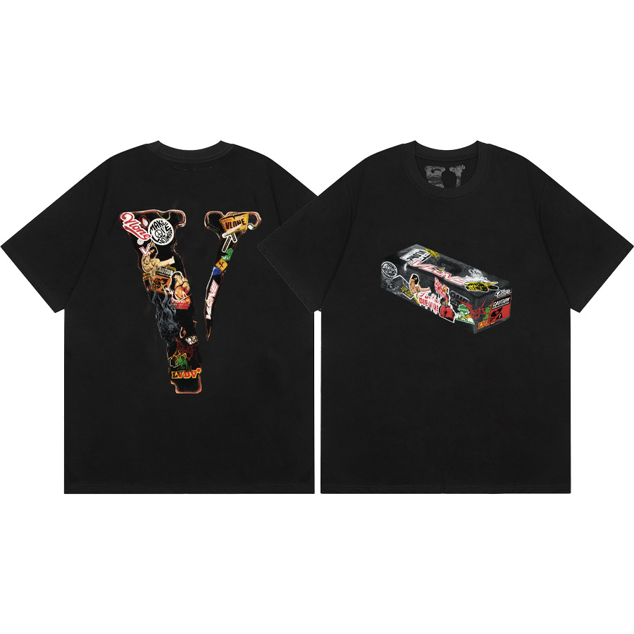 국경 간 유행 브랜드 VLONE JERRY 편지 대형 V 인쇄 남성 느슨한 캐주얼 반팔스토어 가기