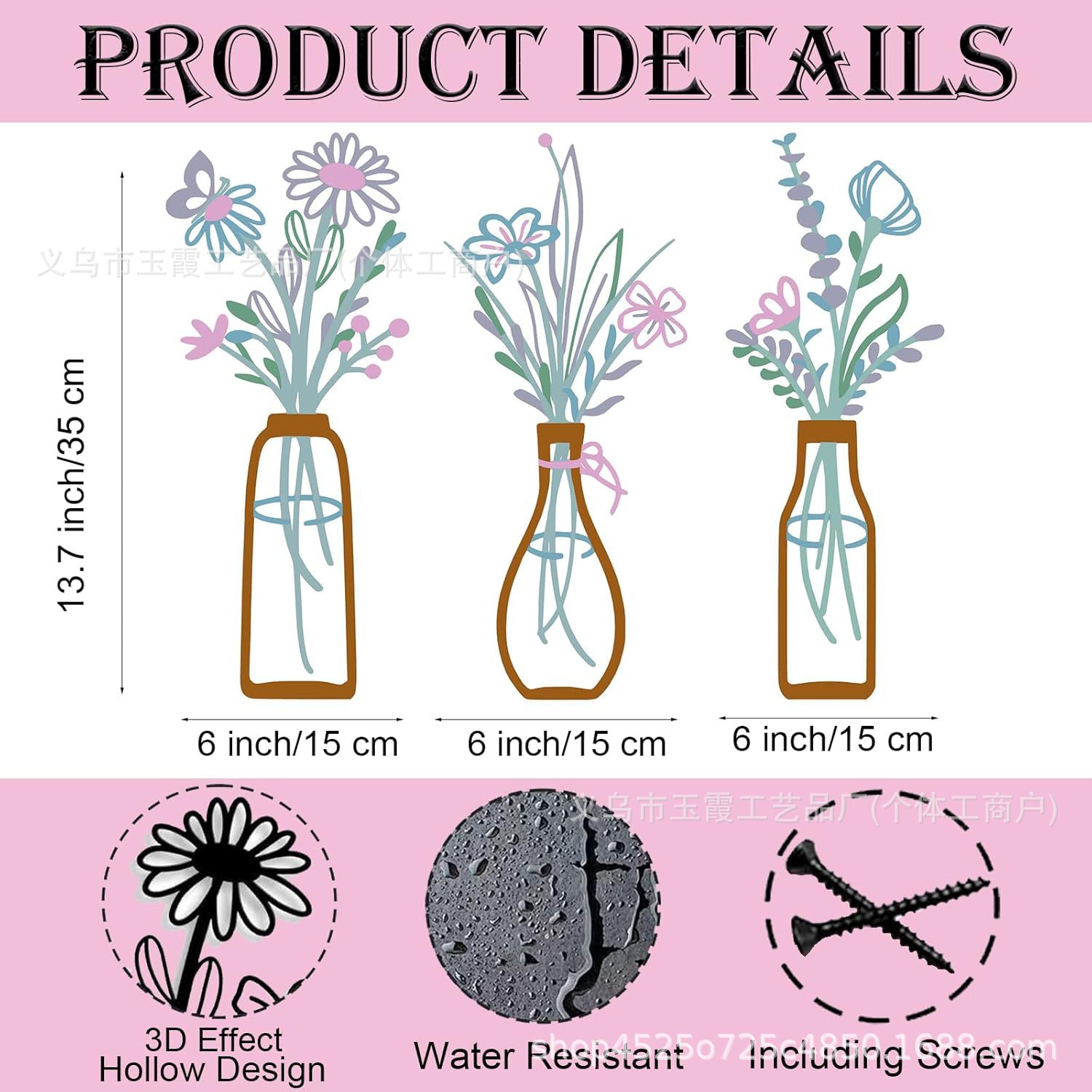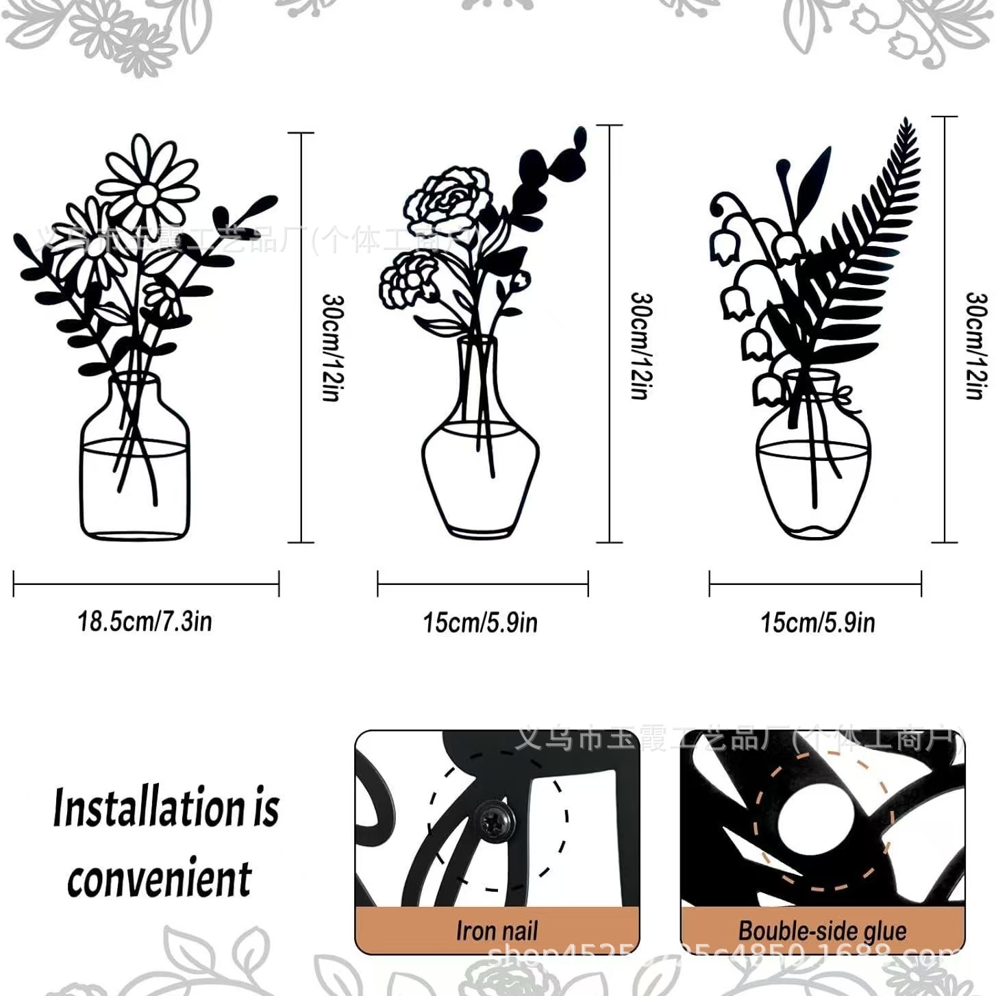 국경 3 조각 꽃병 금속 벽 예술 꽃 하트 모양 장식 신발 컬러 아트 미니멀리스트 공예