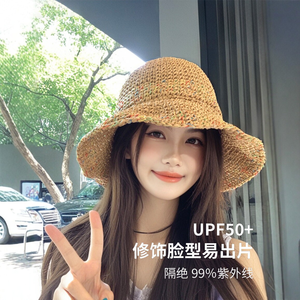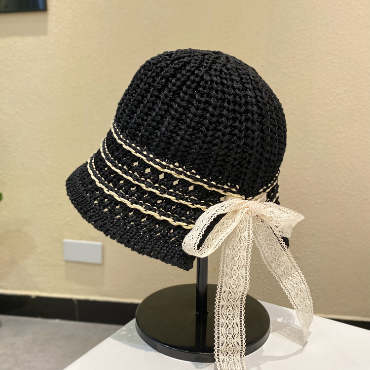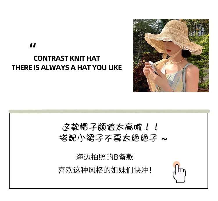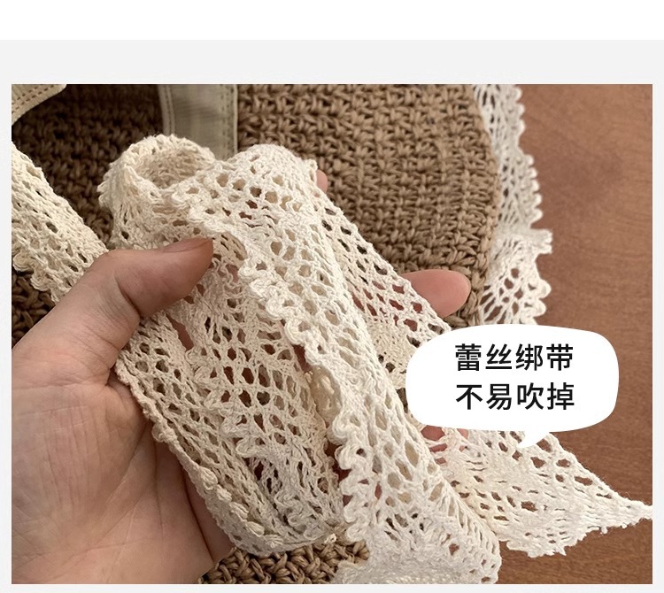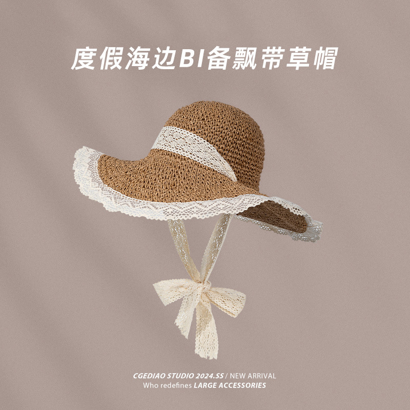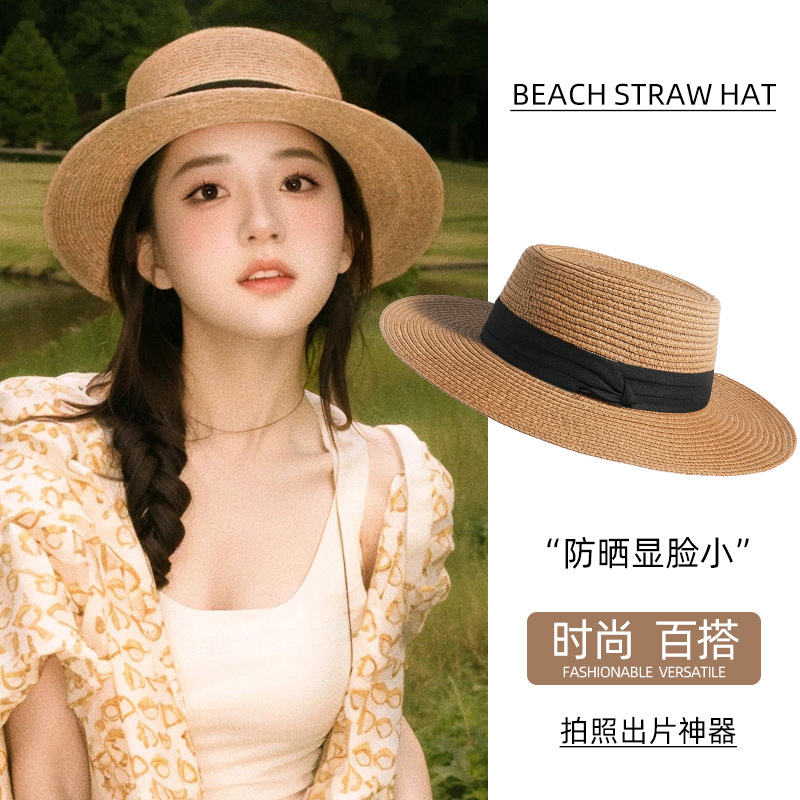 여성용 여름 자외선 차단 밀짚모자, 인스 스타일 끈 장식 라피아 밀짚모자, 여행, 휴가, 해변용 햇빛 가리개 모자