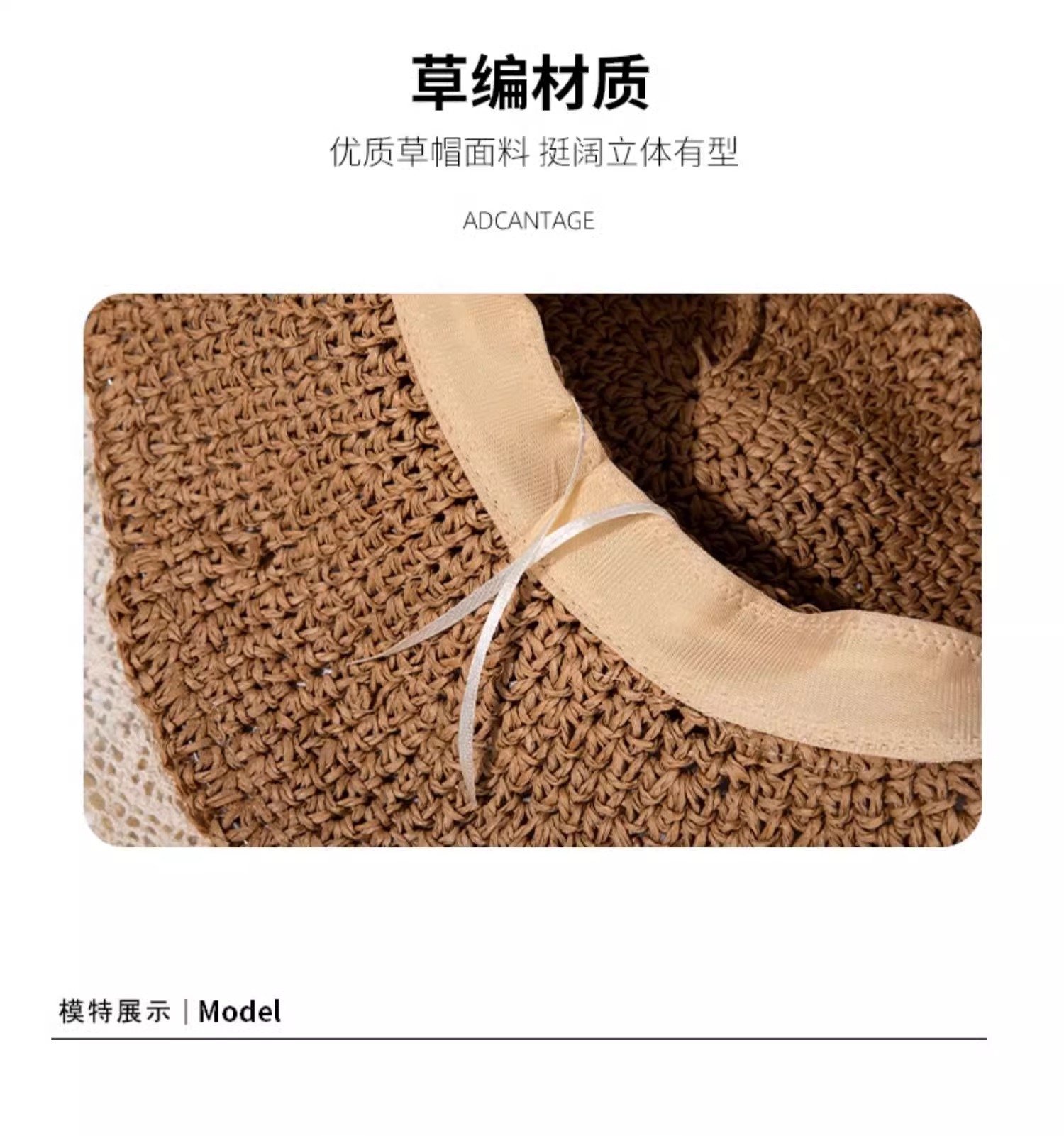 • 프렌치 스타일 챙 넓은 밀짚모자, 베이지색