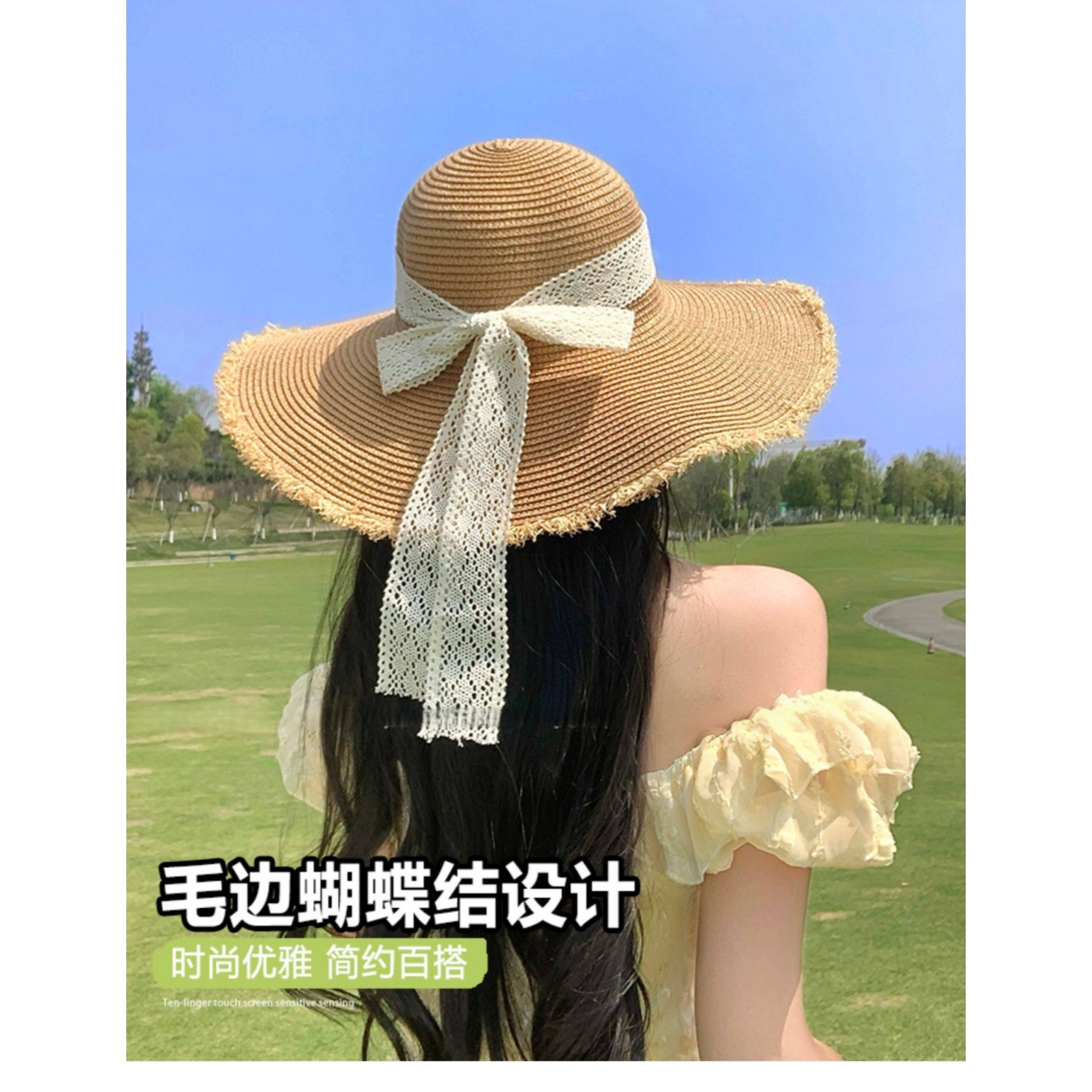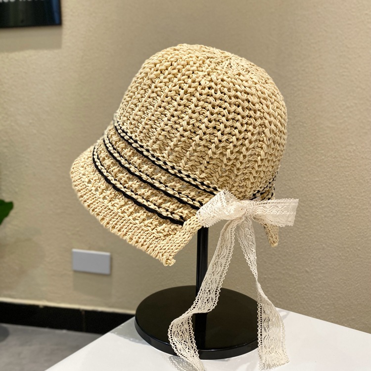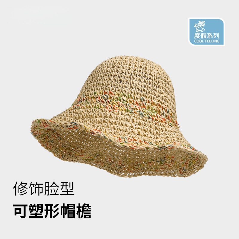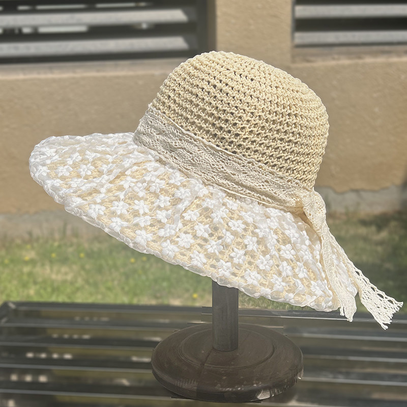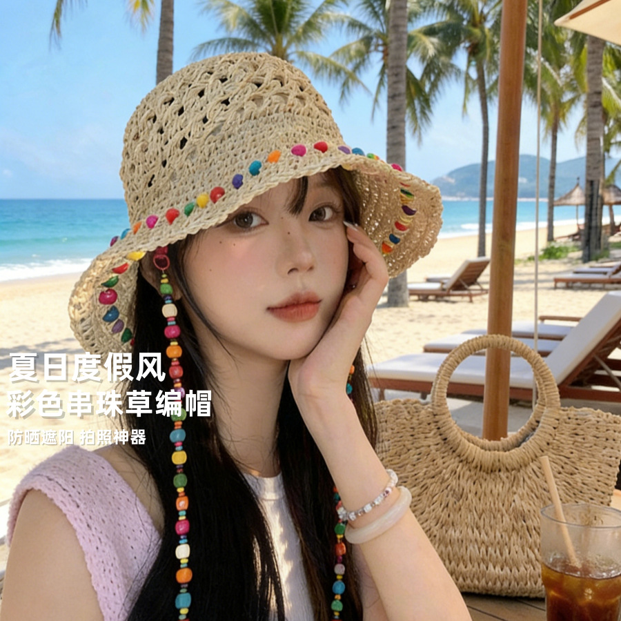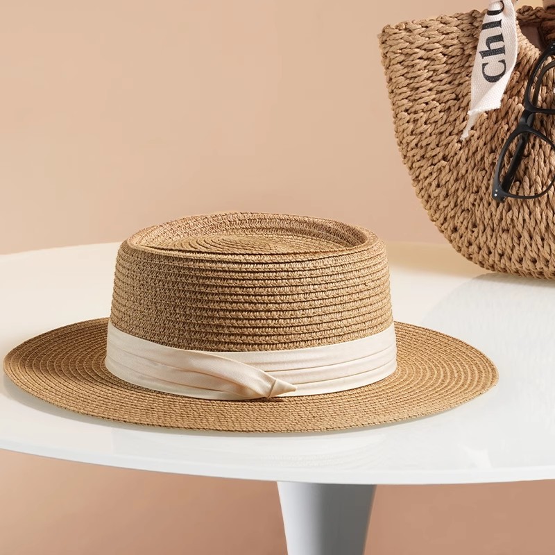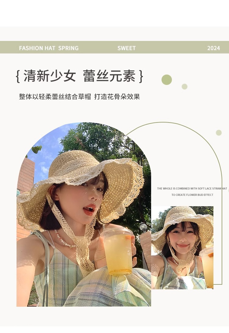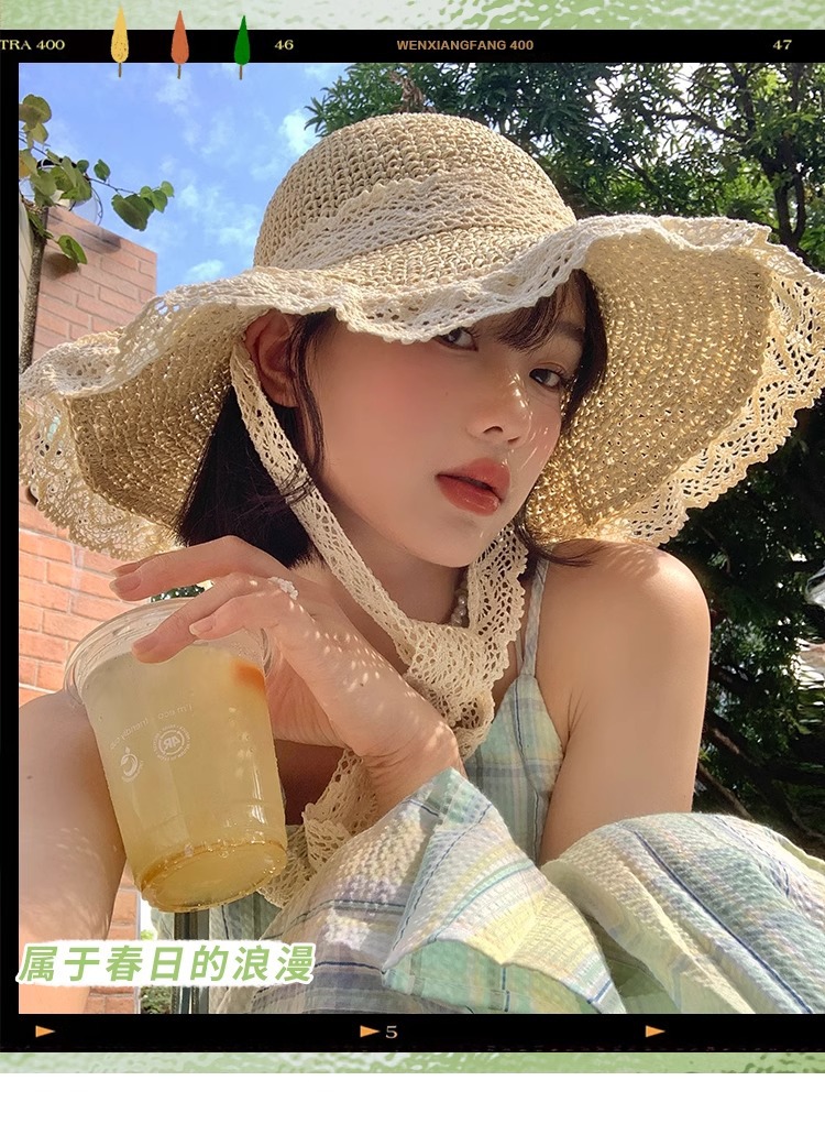 여성용 여름 자외선 차단 밀짚모자, 인스 스타일 끈 장식 라피아 밀짚모자, 여행, 휴가, 해변용 햇빛 가리개 모자스토어 가기