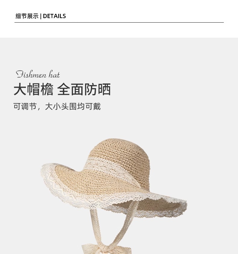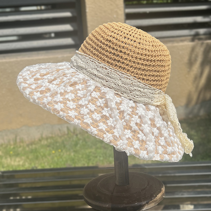 • 레이스 컷팅 베이지 (13cm 챙 넓은 모자)