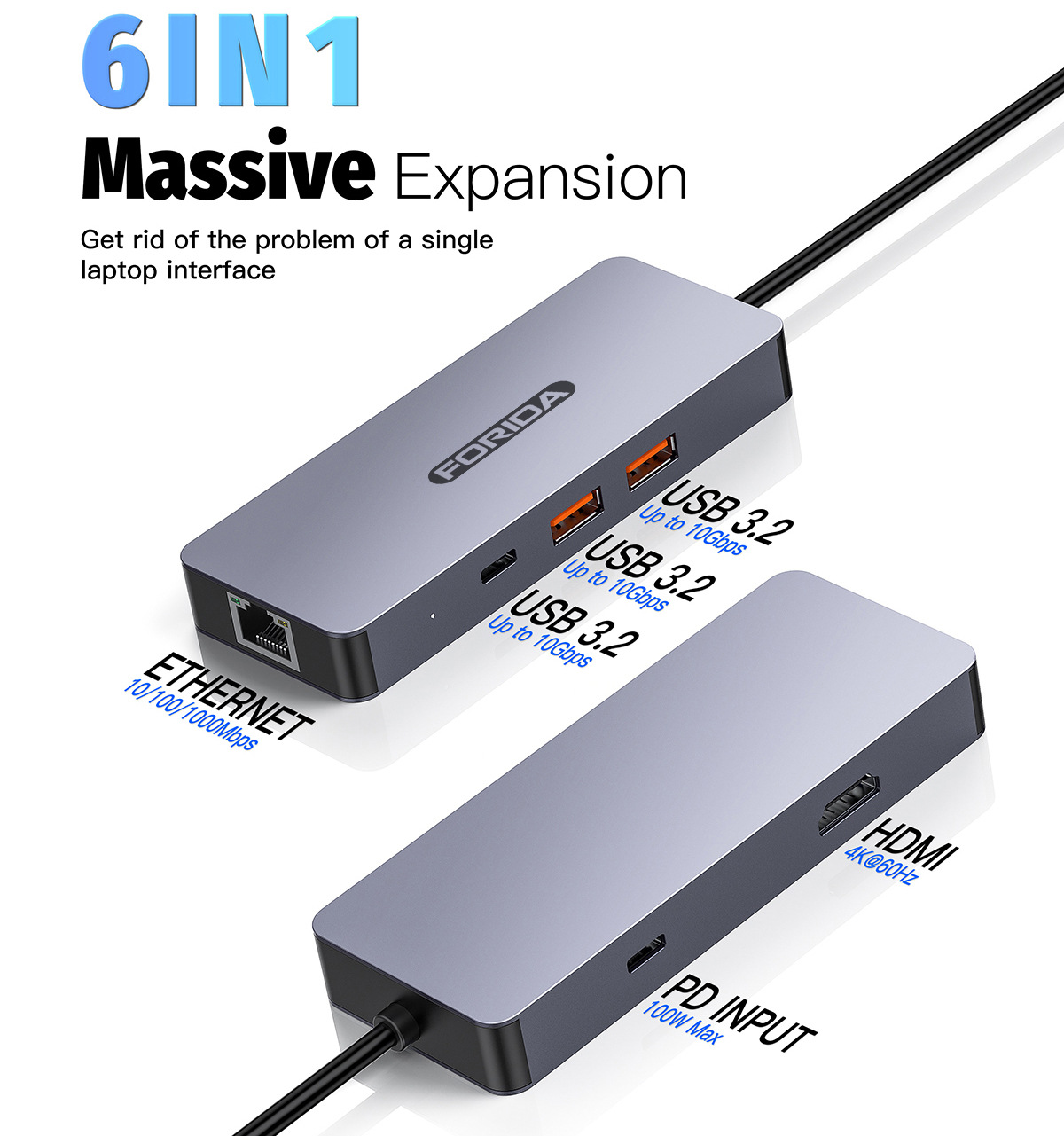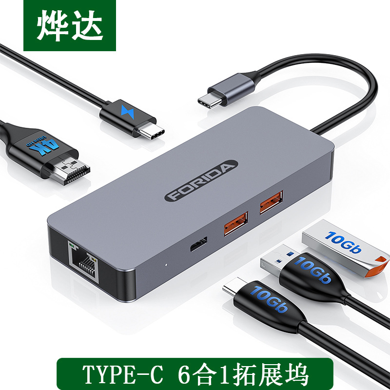 6-in-1 type-c 도킹 스테이션 USB3.2 허브 노트북 도킹 스테이션의 국경 간 전용 공급스토어 가기