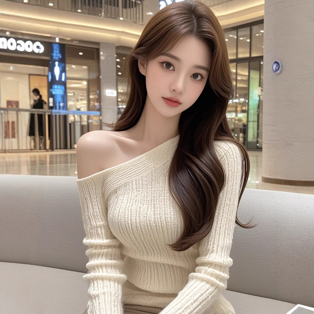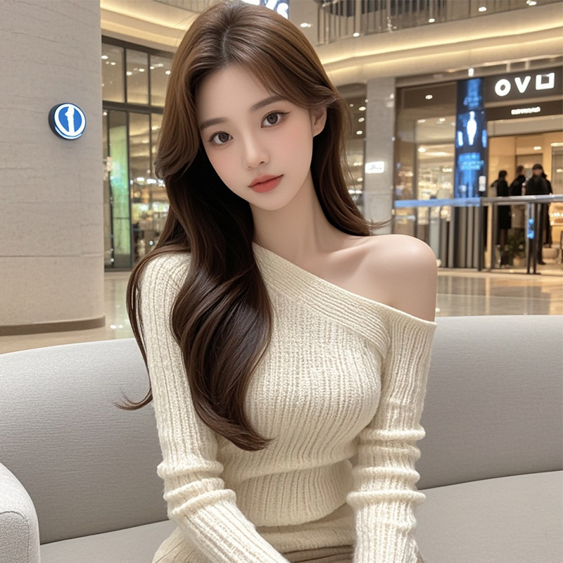 DLGT4940 섹시한 스파이스 소녀 스타일 크로스 컷 칼라 어깨 긴팔 니트웨어 여성용 퓨어 슬림 핏 슬림 핏 쇼트 탑스토어 가기