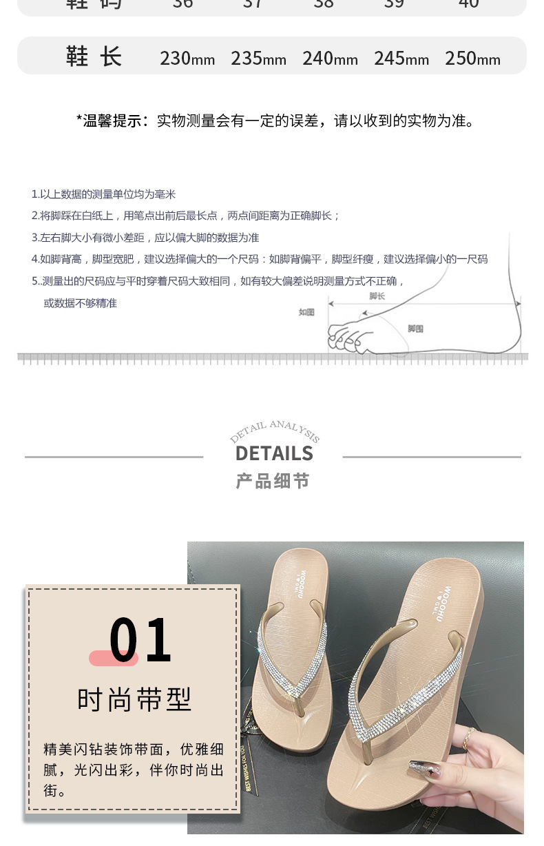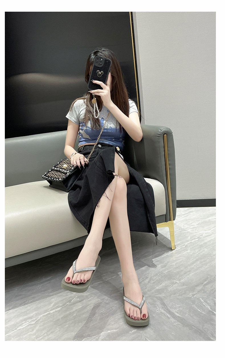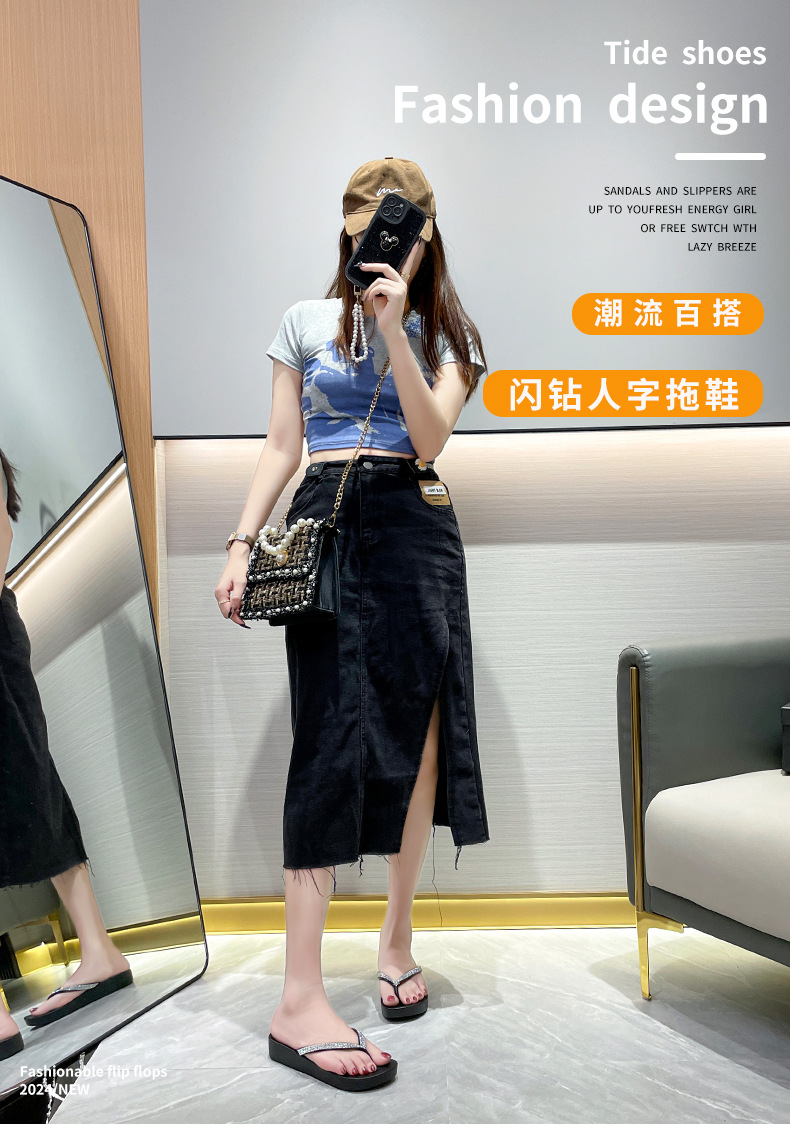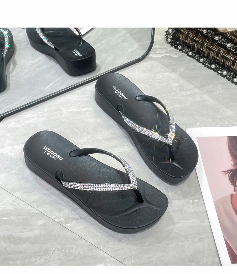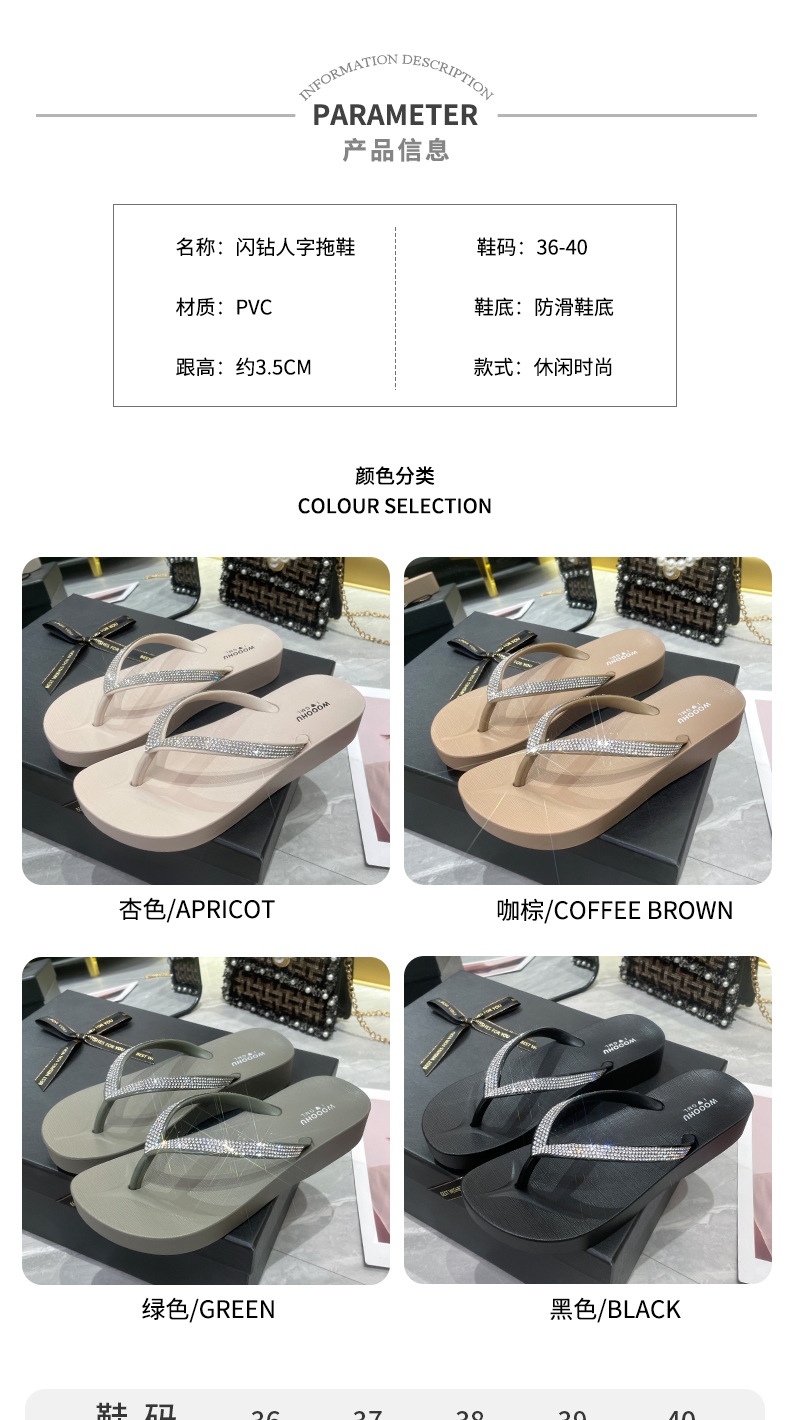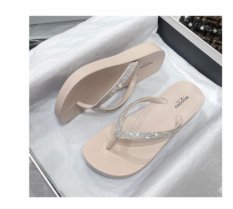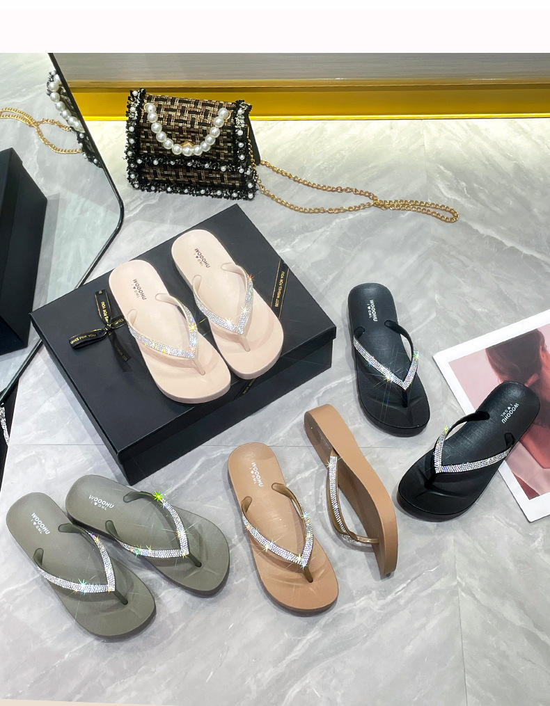 Gao Meilun 여름 여자 라인 스톤 브라이트 다이아몬드 플립 플롭스 트렌디 한 비치 아우터 미들 힐 미끄럼 세척 올 매치 크로스 보더
