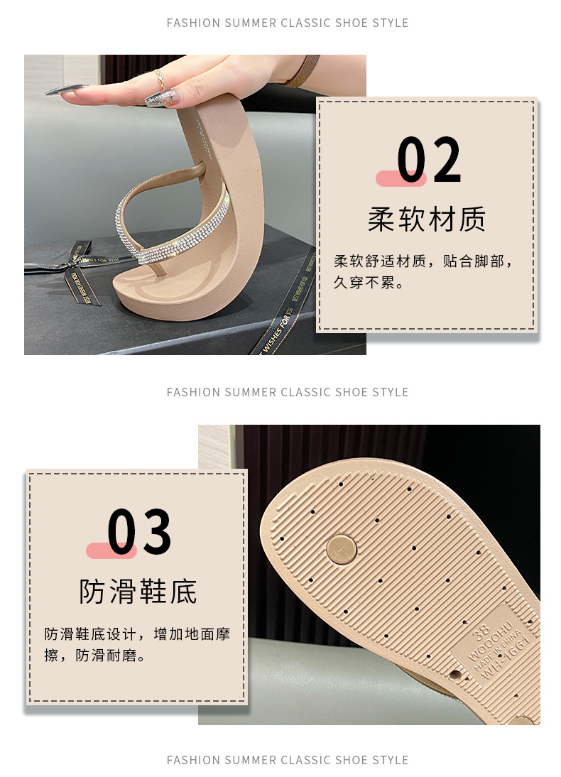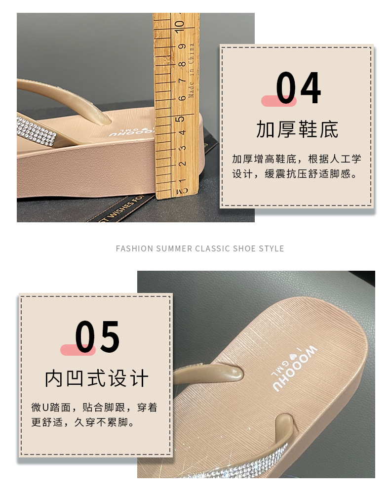 Gao Meilun 여름 여자 라인 스톤 브라이트 다이아몬드 플립 플롭스 트렌디 한 비치 아우터 미들 힐 미끄럼 세척 올 매치 크로스 보더스토어 가기