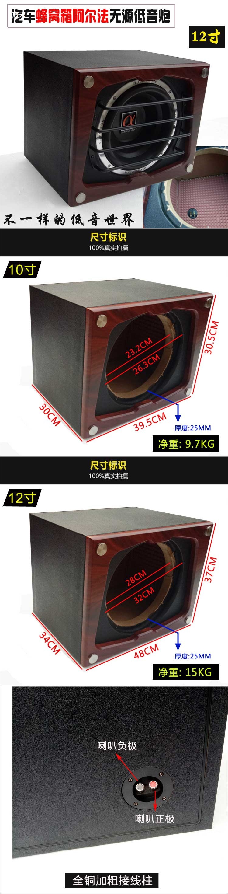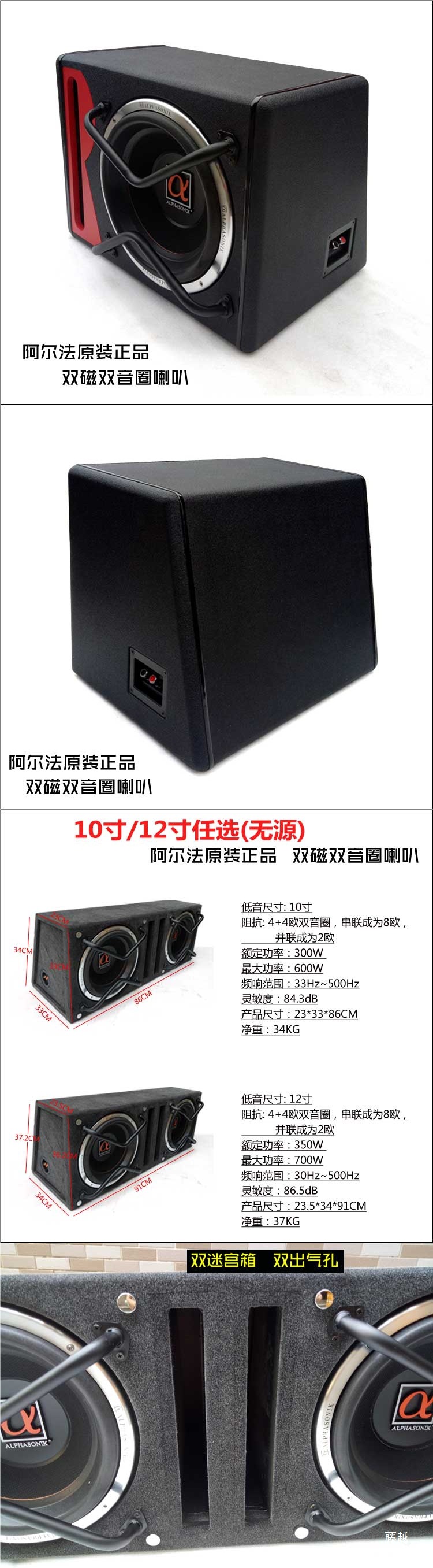 알파 자동차 오디오 수정 발열 12inch 10inch 중형 이중 보이스 코일 패시브 서브우퍼 스피커