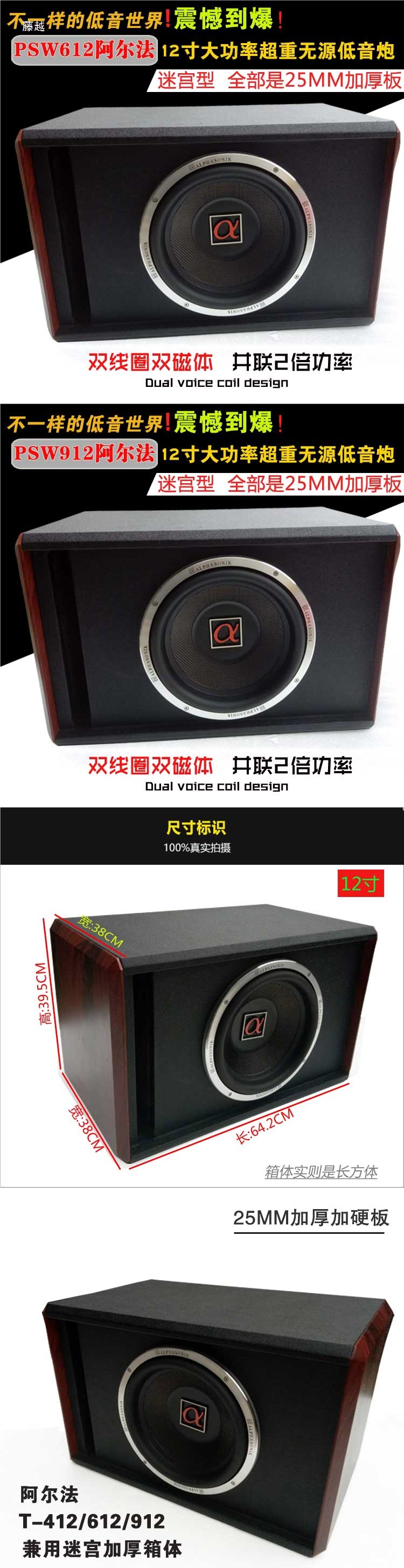• 12inch 듀얼 스피커 패시브 서브우퍼-싱글 스피커-유니버설