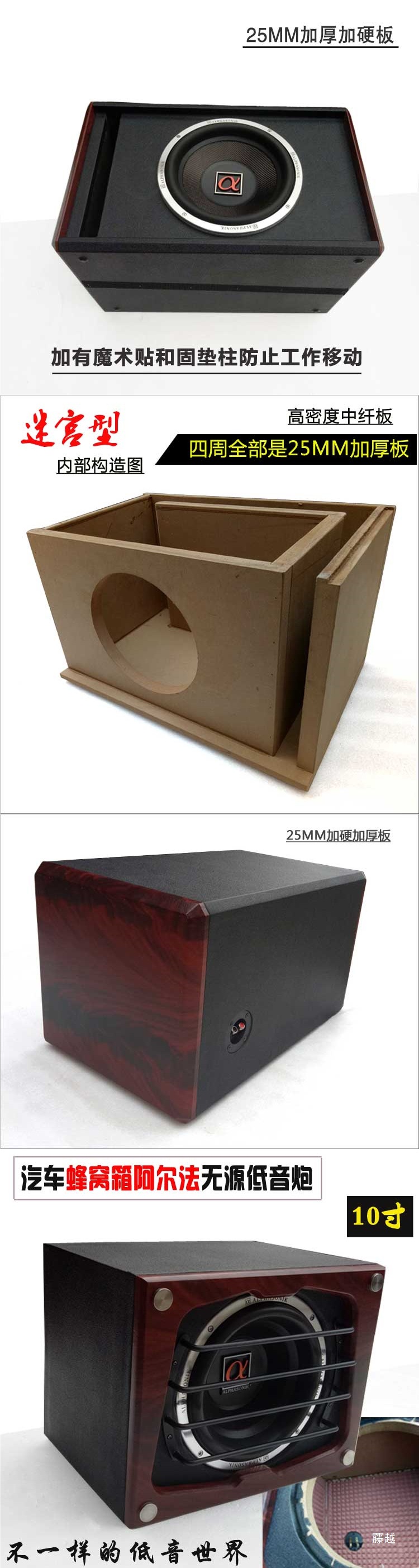• 10inch 알파 벌집형 상자(배선 구멍 없음) - 단일 스피커 - 범용