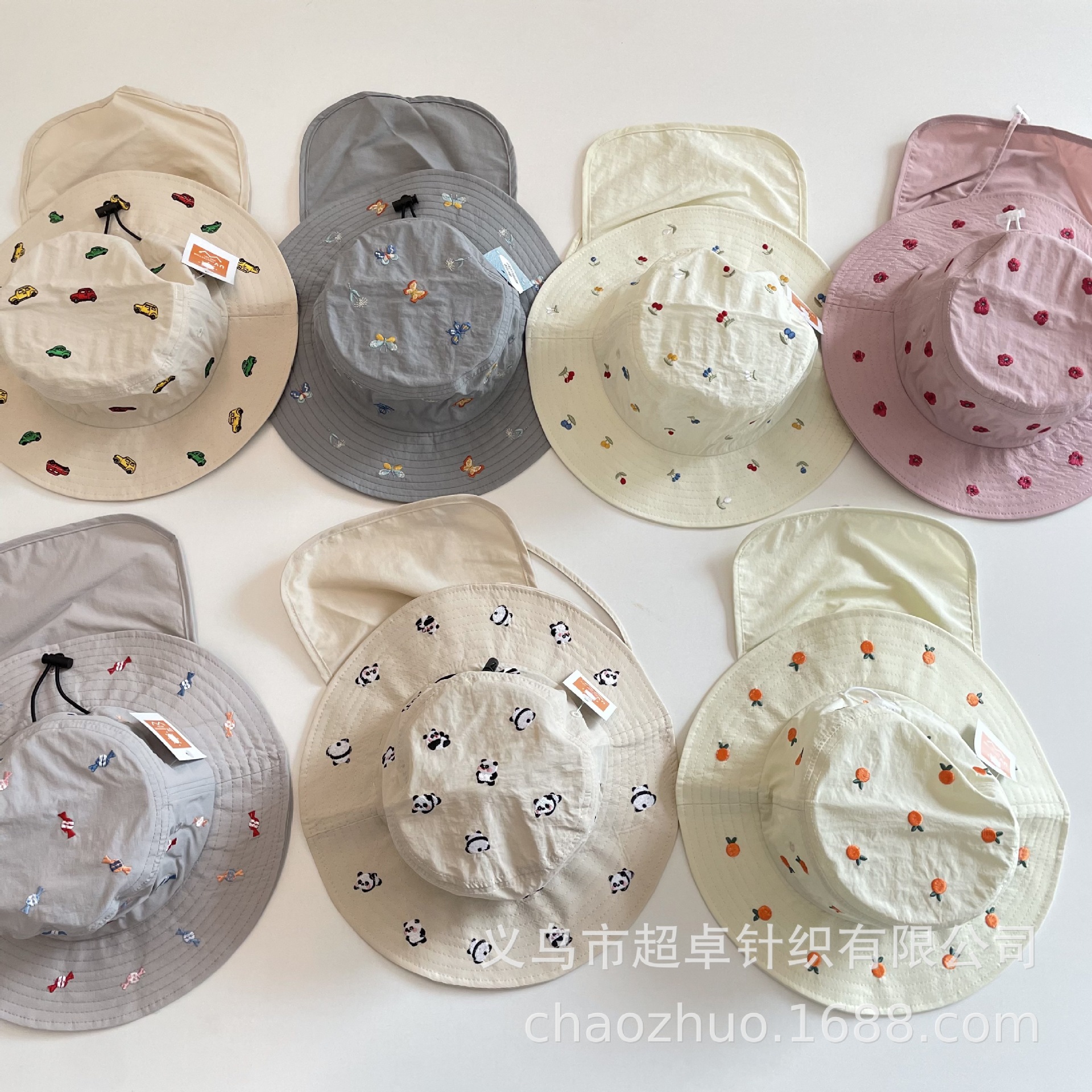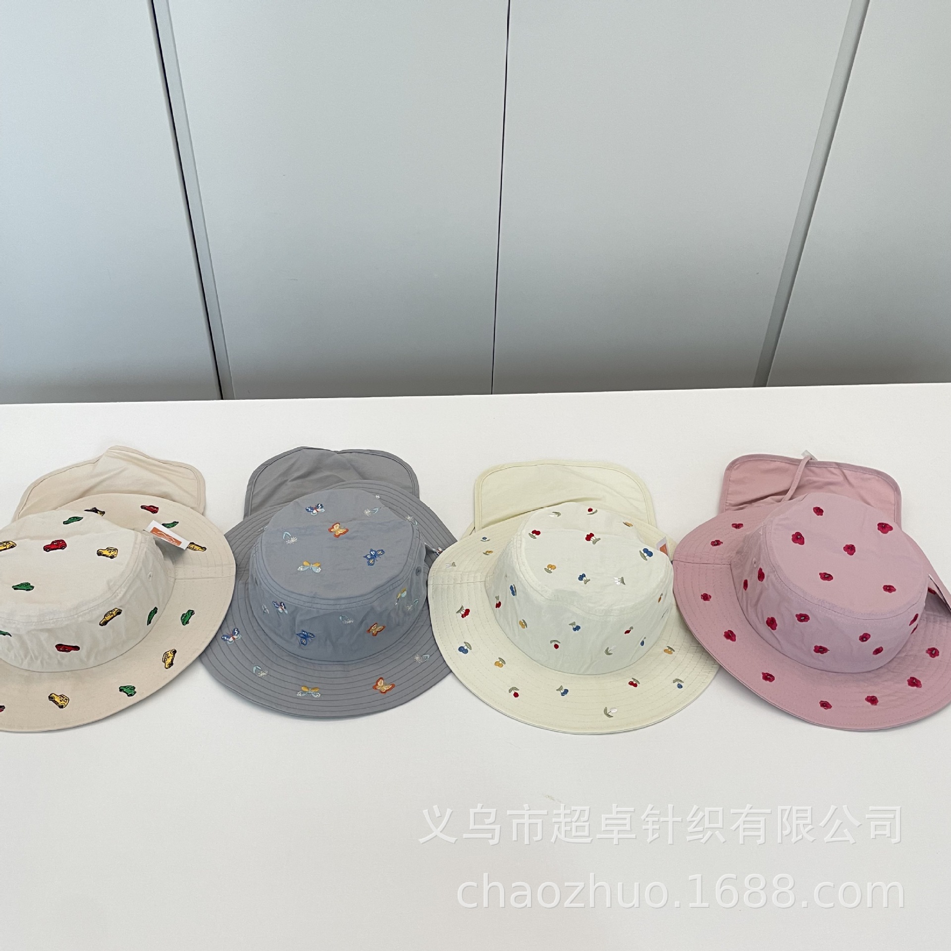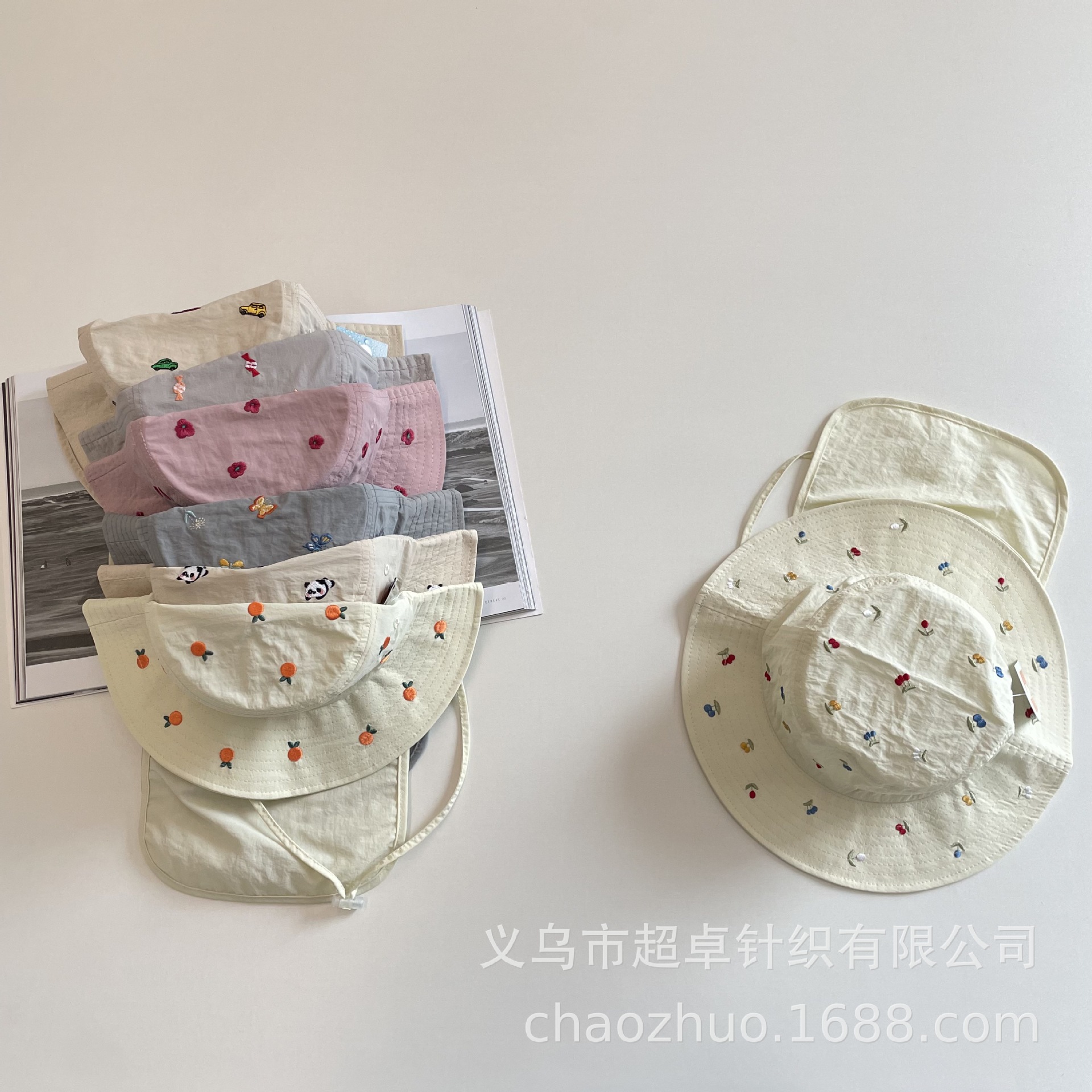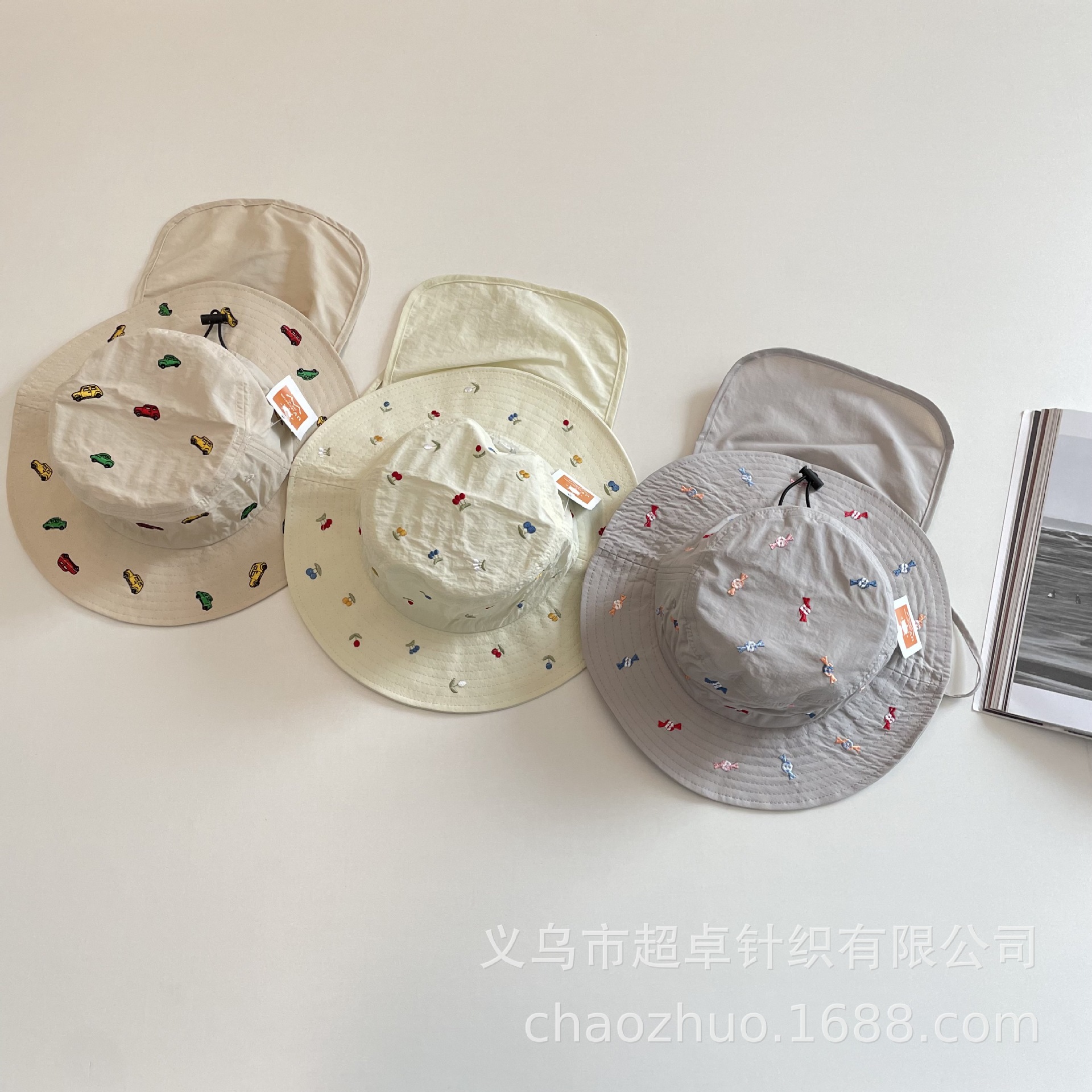 여름 휴가 해변 빠른 건조 자수 귀여운 목도리 비치 모자 어린이 어부 모자스토어 가기