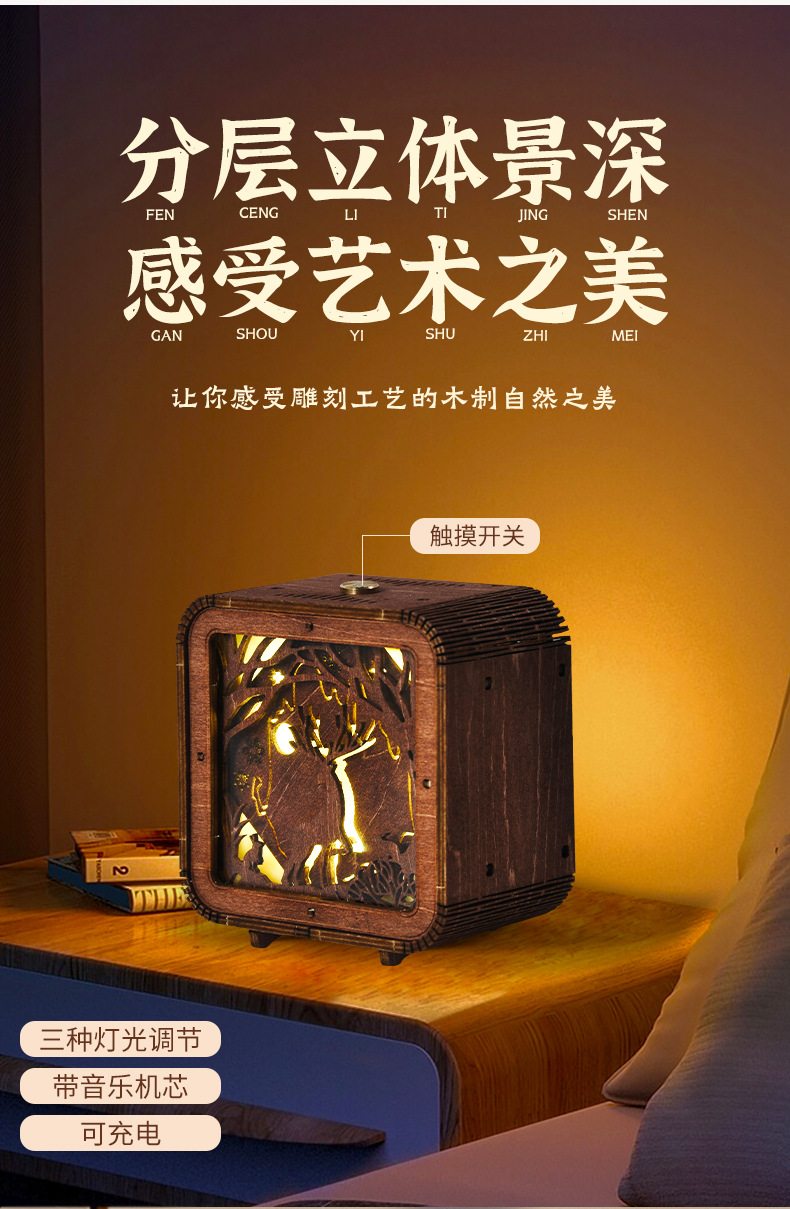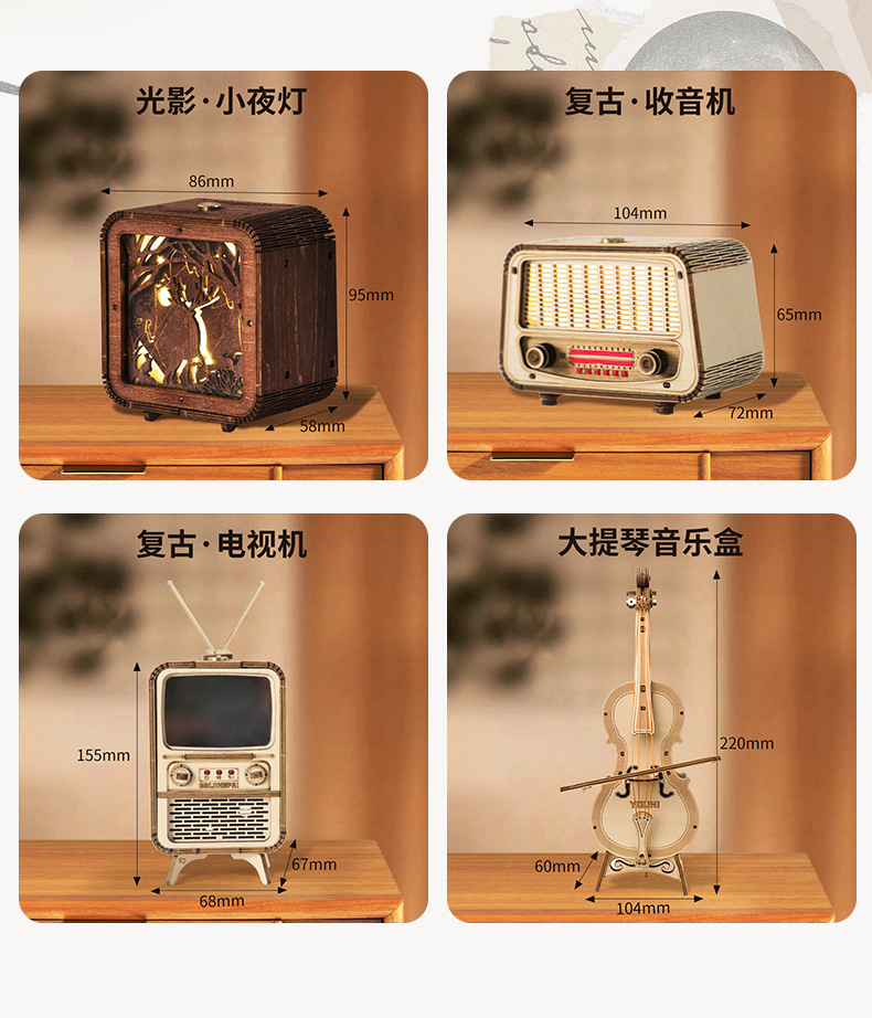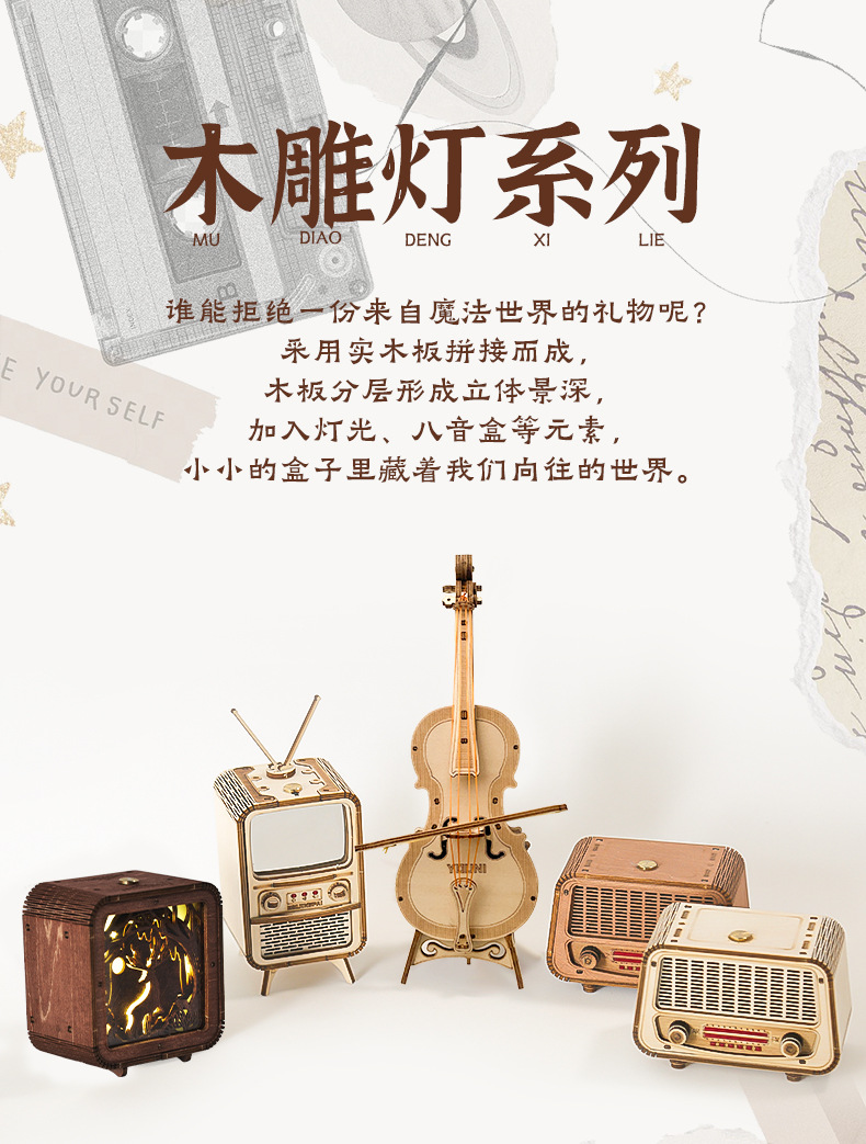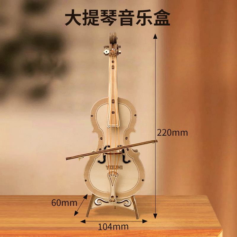 첼로 오르골 나무 조립 모델 입체 블록 DIY 수제 3D 선물 크로스보더 교육용 장난감스토어 가기