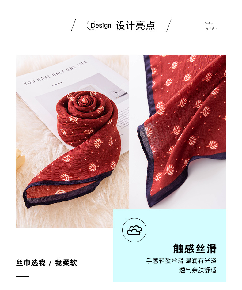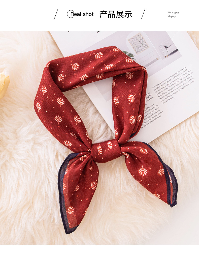 목가적 인 예술적 면 리넨 작은 광장 스카프 여성 전문 장식 스카프 봄과 여름 실크 스카프 예술 장식 작은 실크 스카프스토어 가기