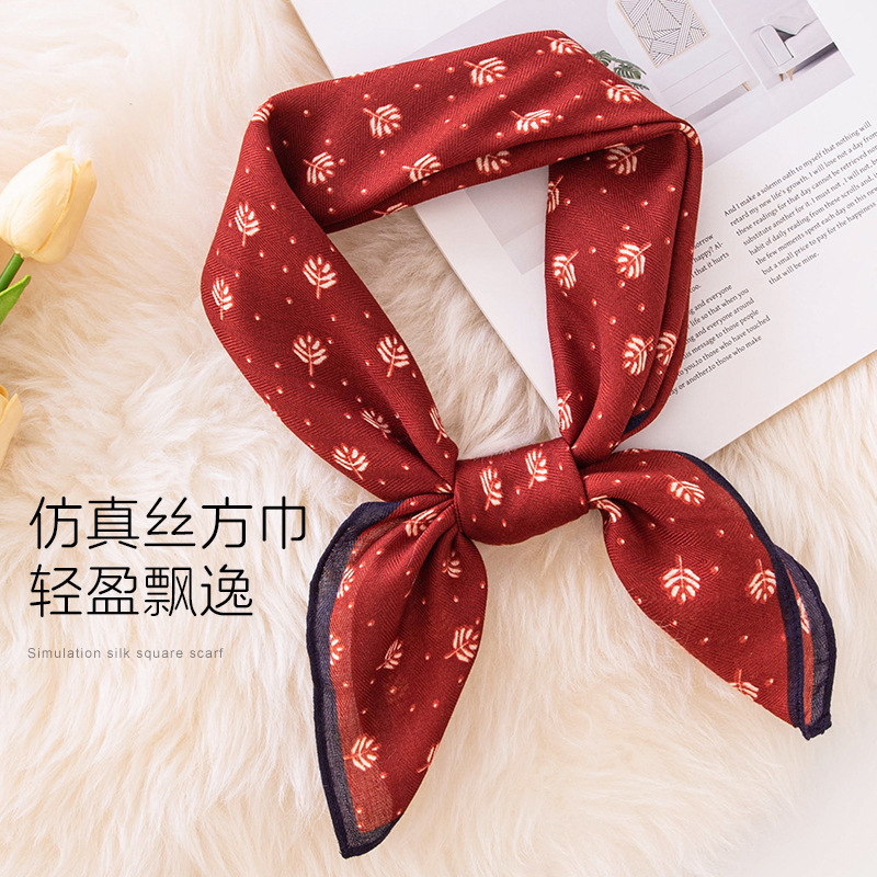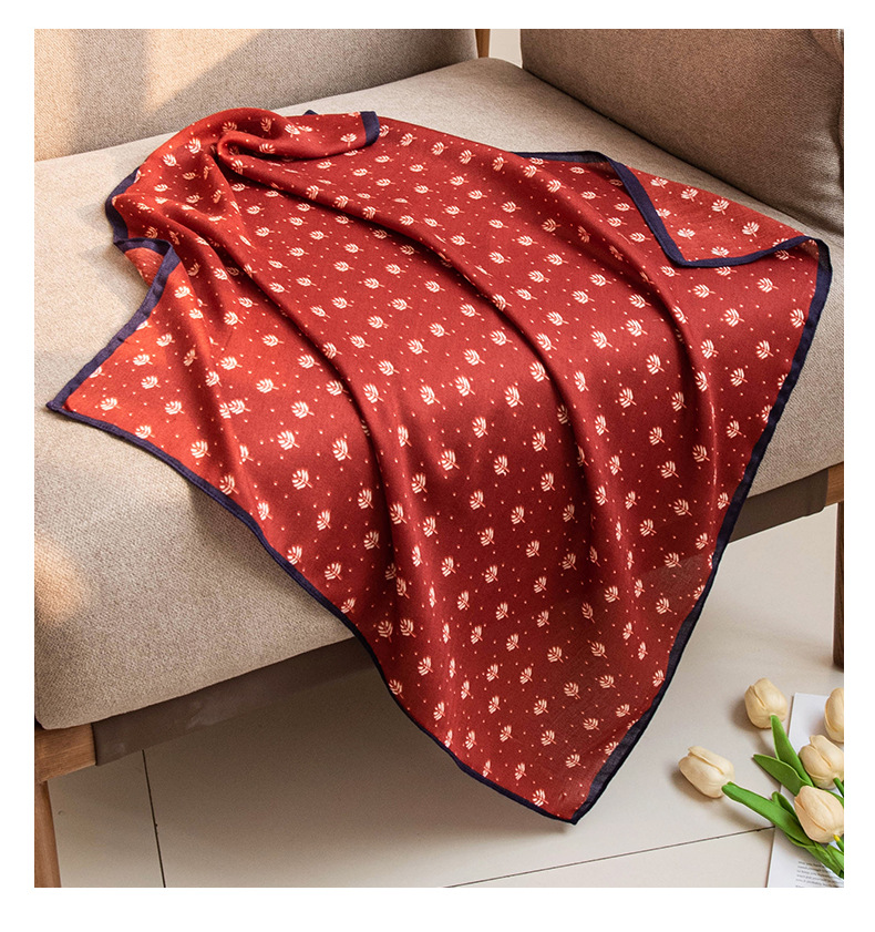 목가적 인 예술적 면 리넨 작은 광장 스카프 여성 전문 장식 스카프 봄과 여름 실크 스카프 예술 장식 작은 실크 스카프