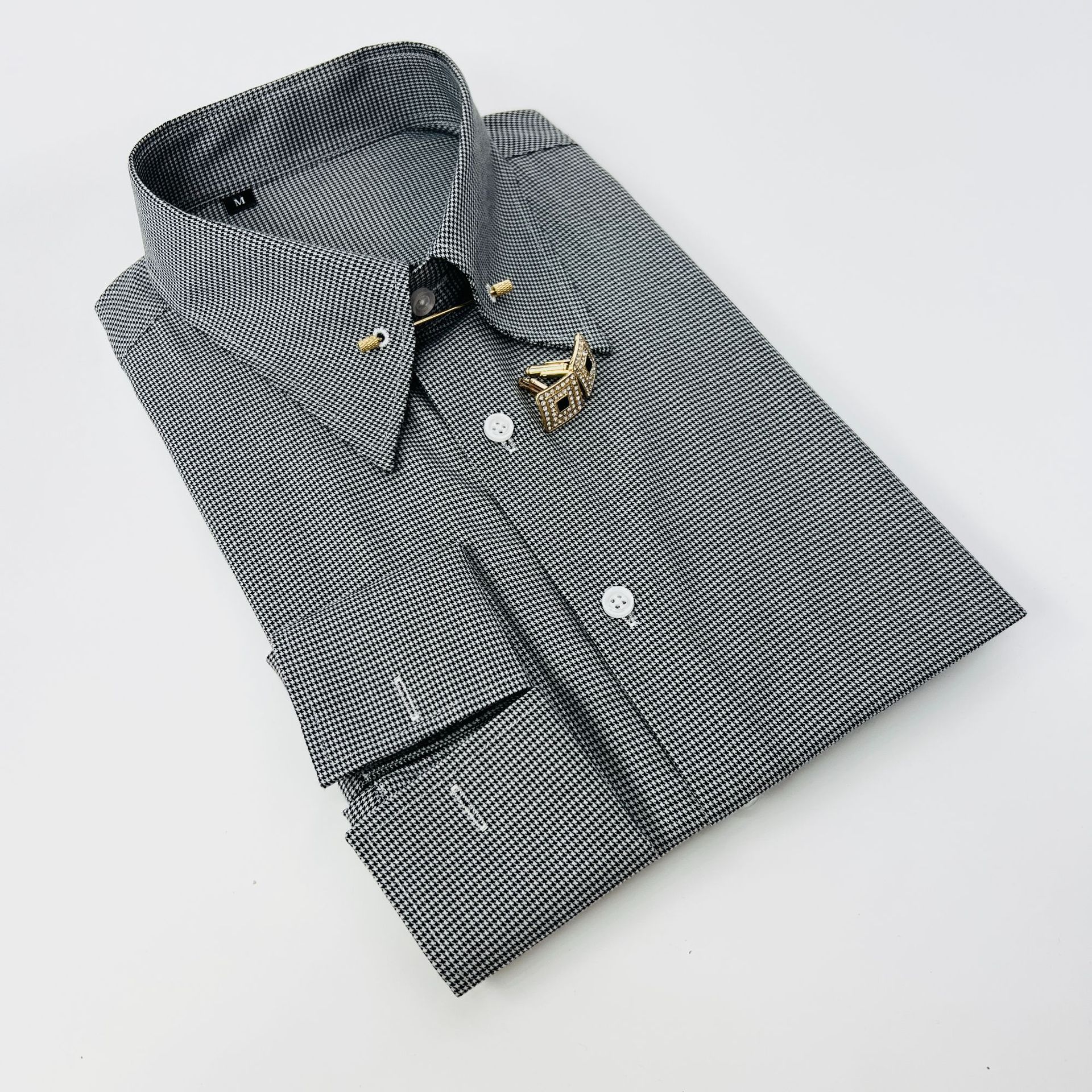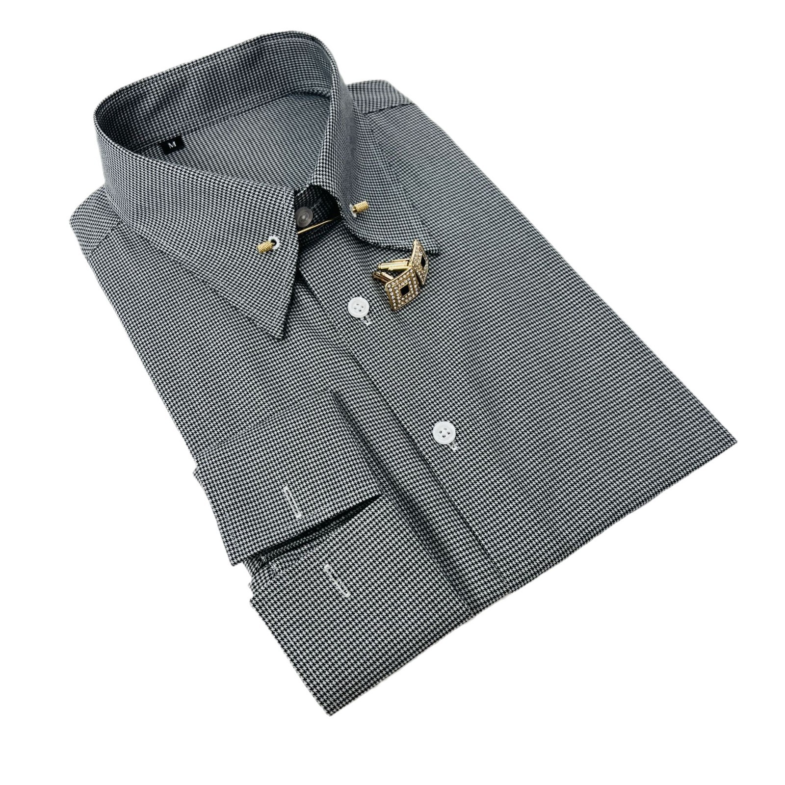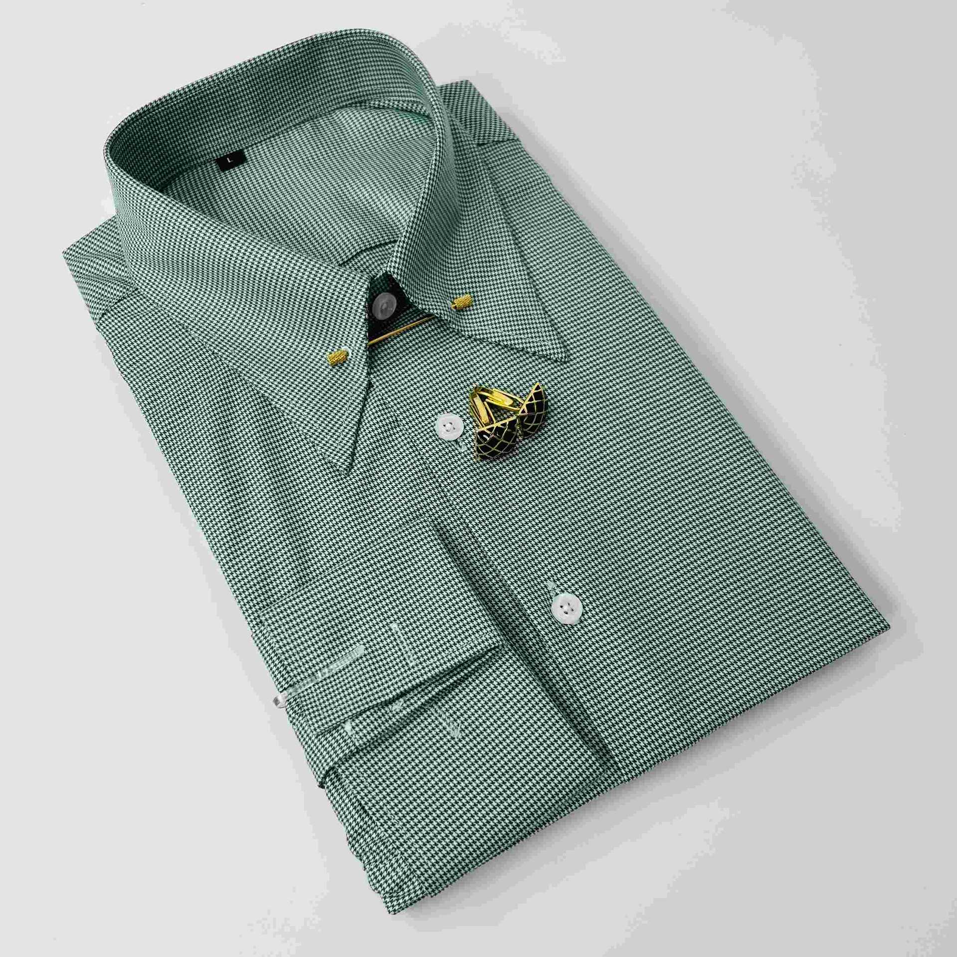 블랙 하운드투스 남성 긴팔 셔츠 프렌치 슬리브 칼라 스트라이프 레트로 프린트 셔츠 캐주얼 홍콩 스타일 비즈니스 통근복