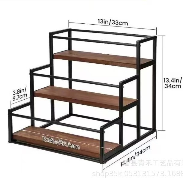 단철 조합 멀티 레이어 레드 와인 디스플레이 랙 나무 주방 향신료 저장 랙 다목적 스테핑 스토리지 랙