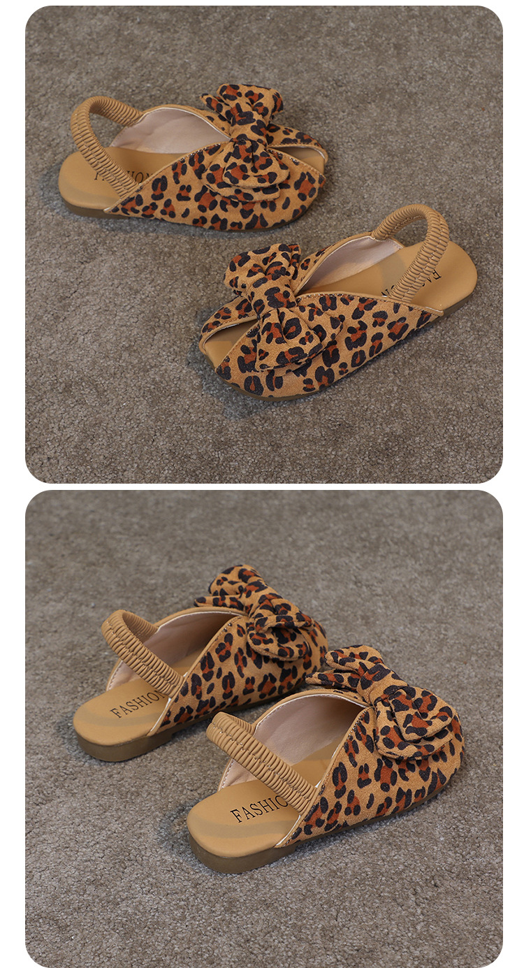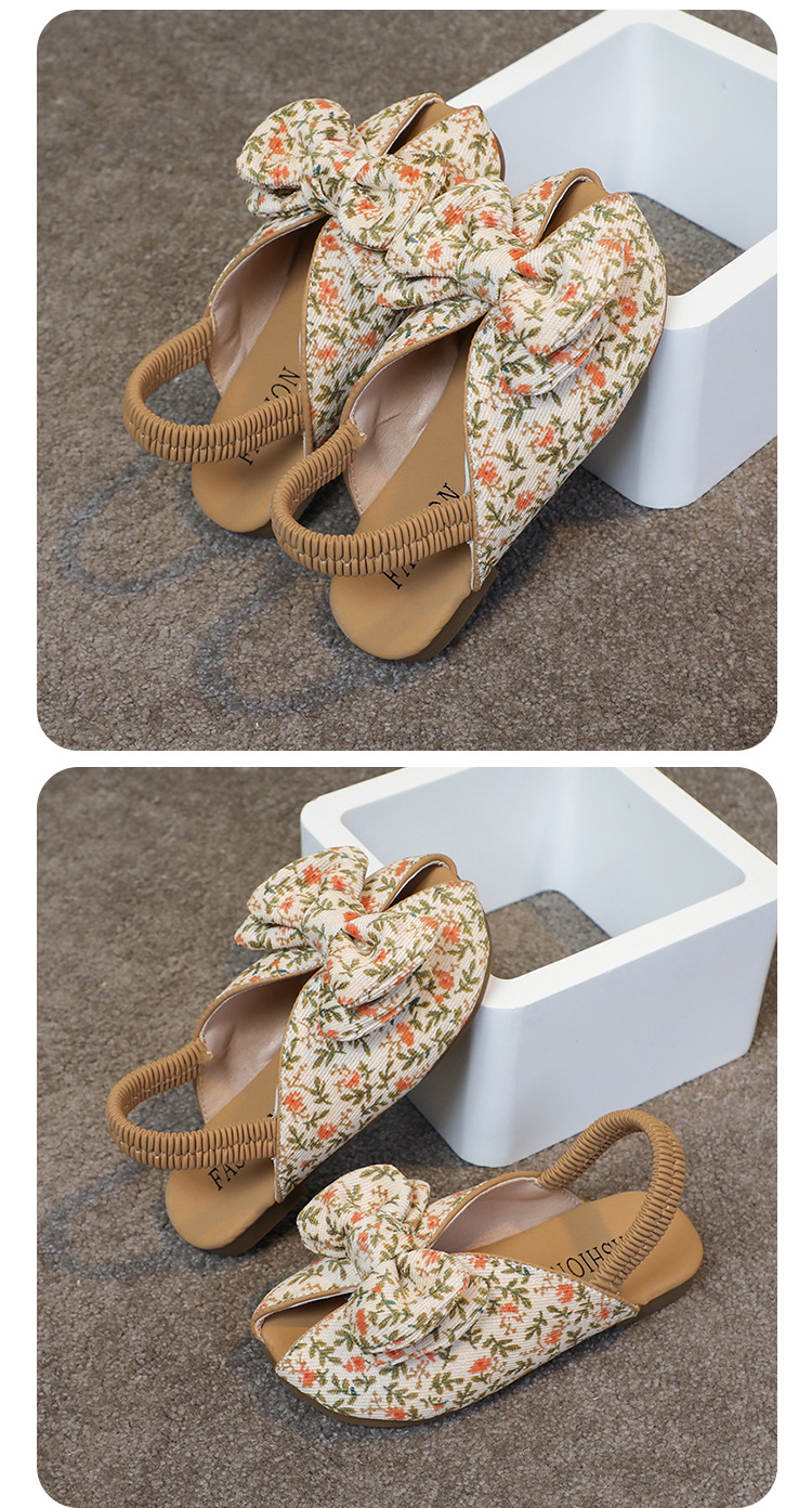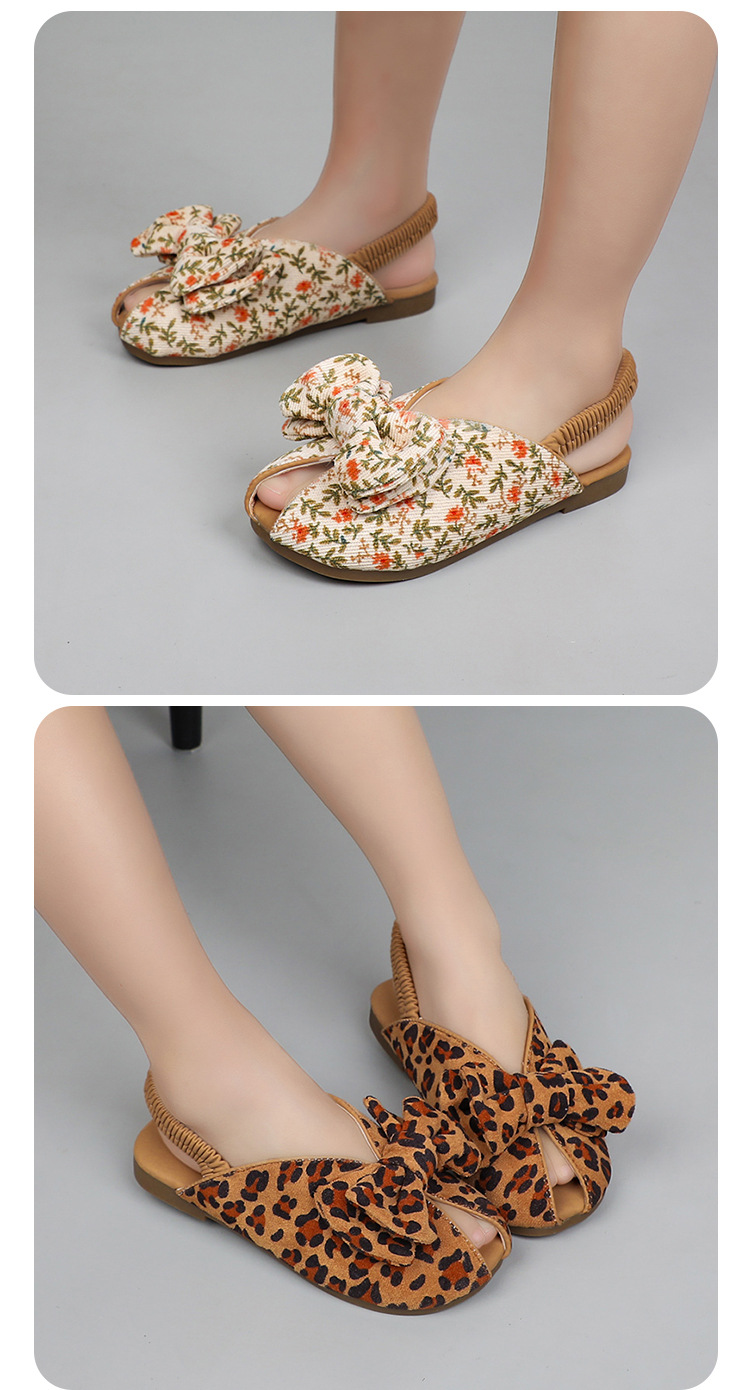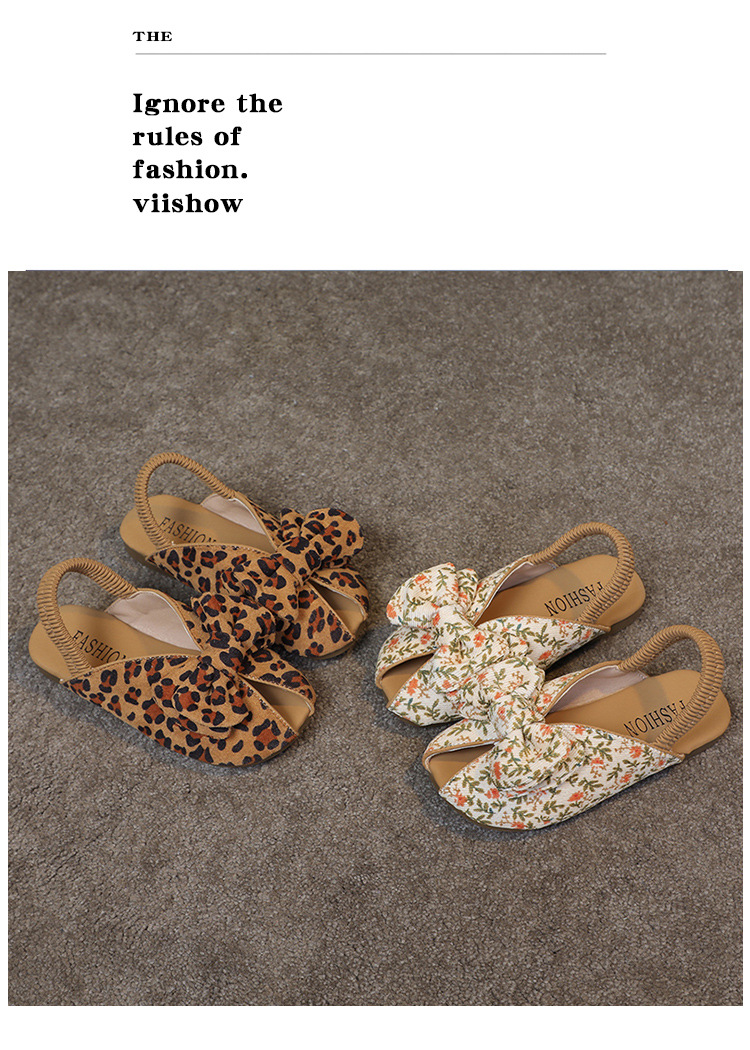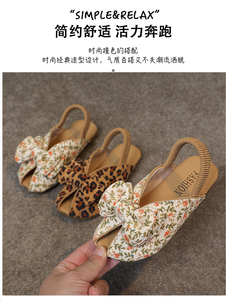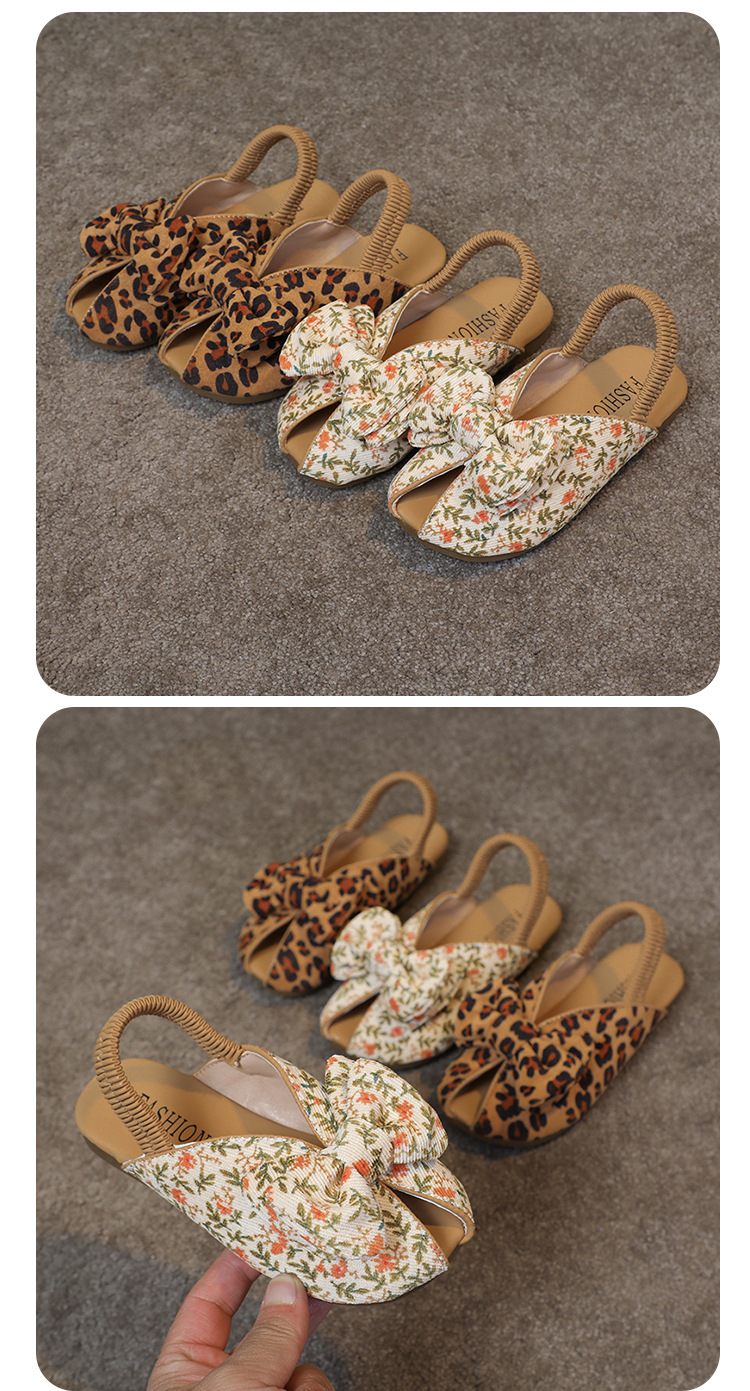 모리 걸스 샌들 뉴 레오파드 보우 여름 레트로 공주 하프 드래그 한 페달 패브릭 플라워 프린트스토어 가기