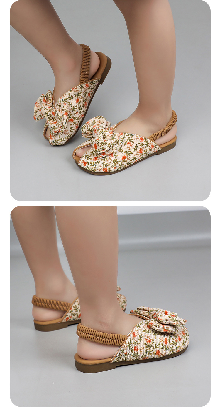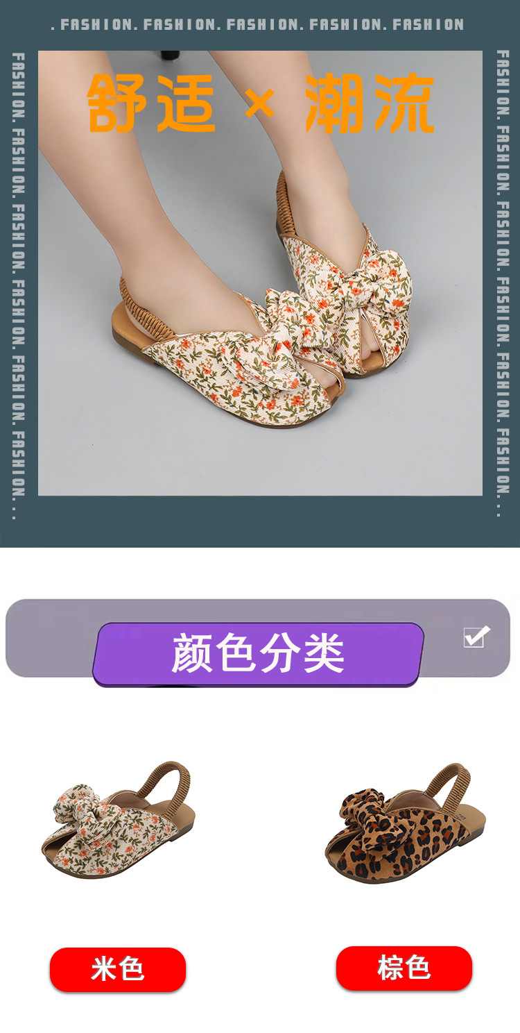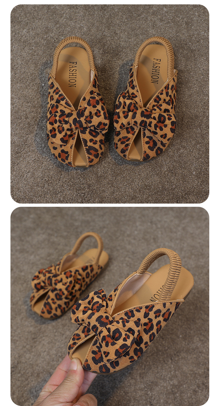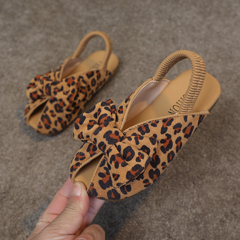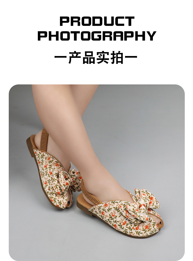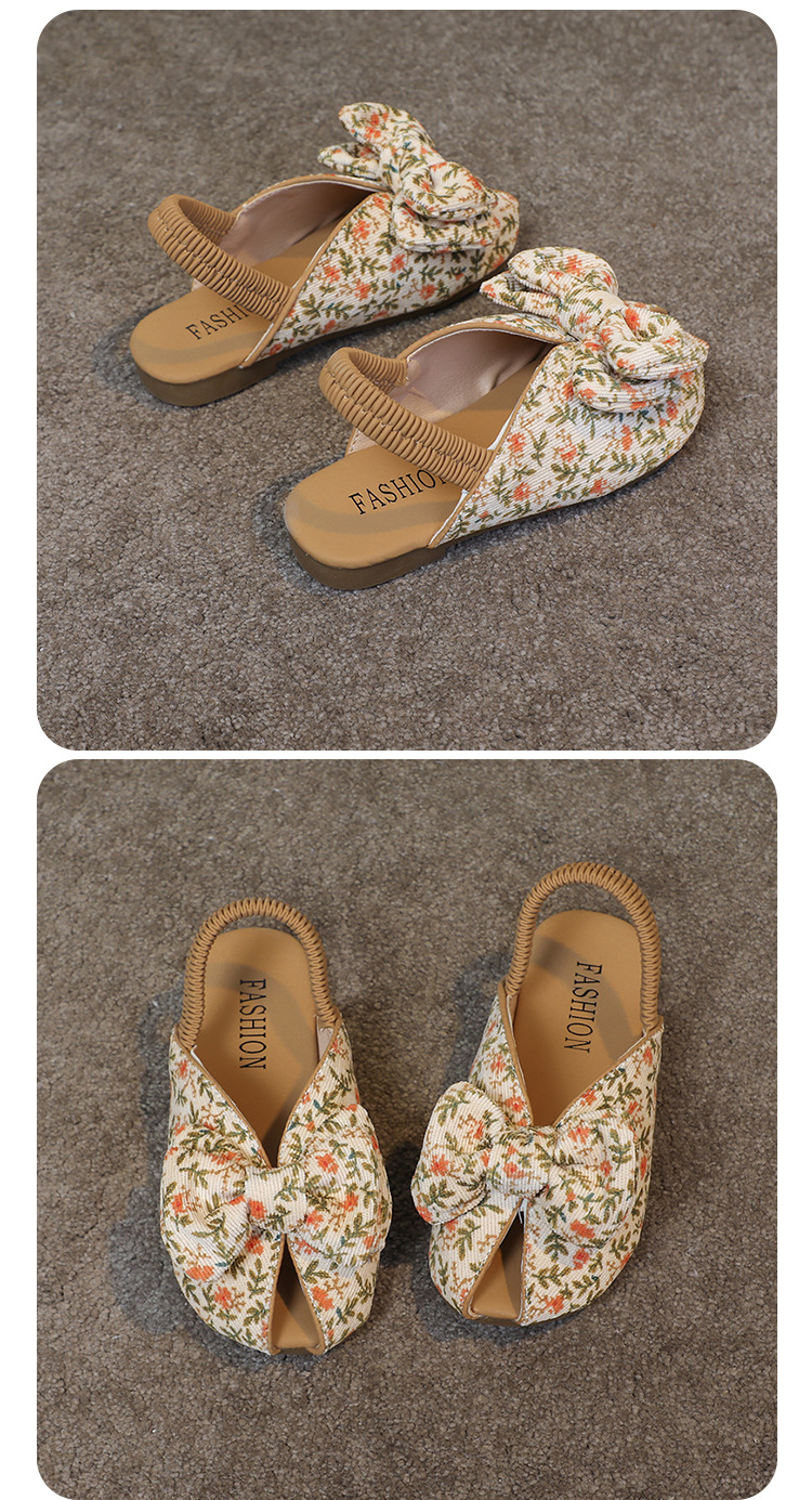 모리 걸스 샌들 뉴 레오파드 보우 여름 레트로 공주 하프 드래그 한 페달 패브릭 플라워 프린트스토어 가기