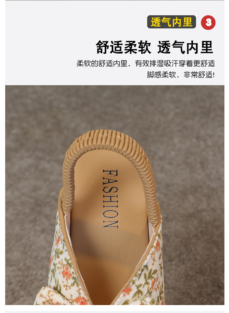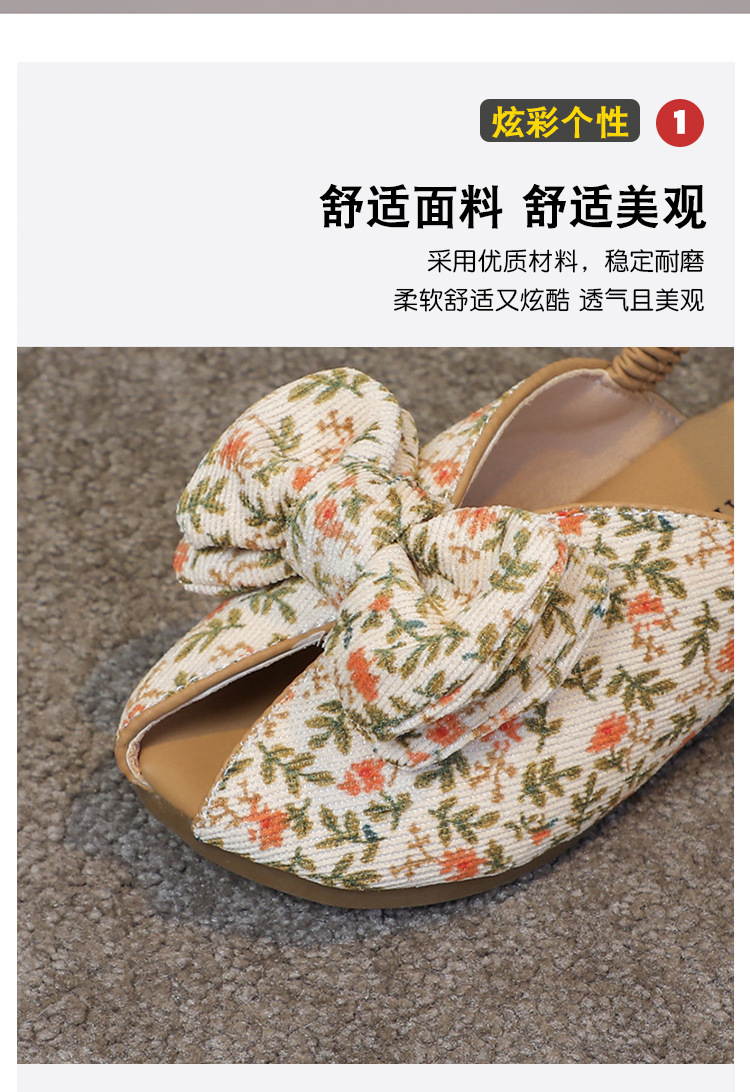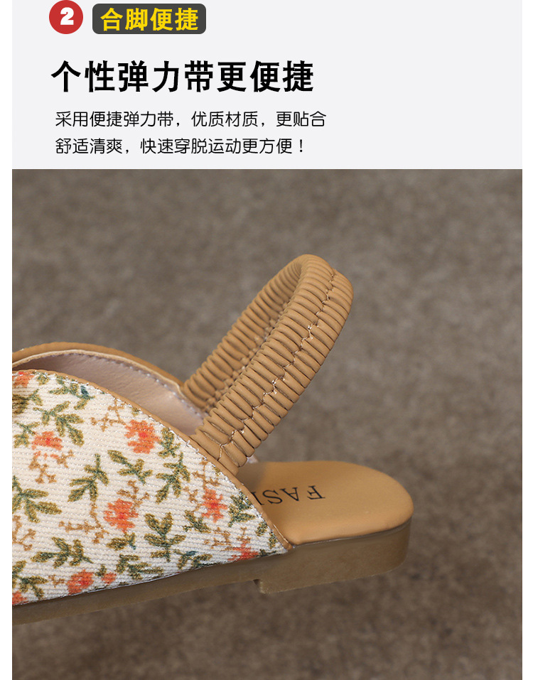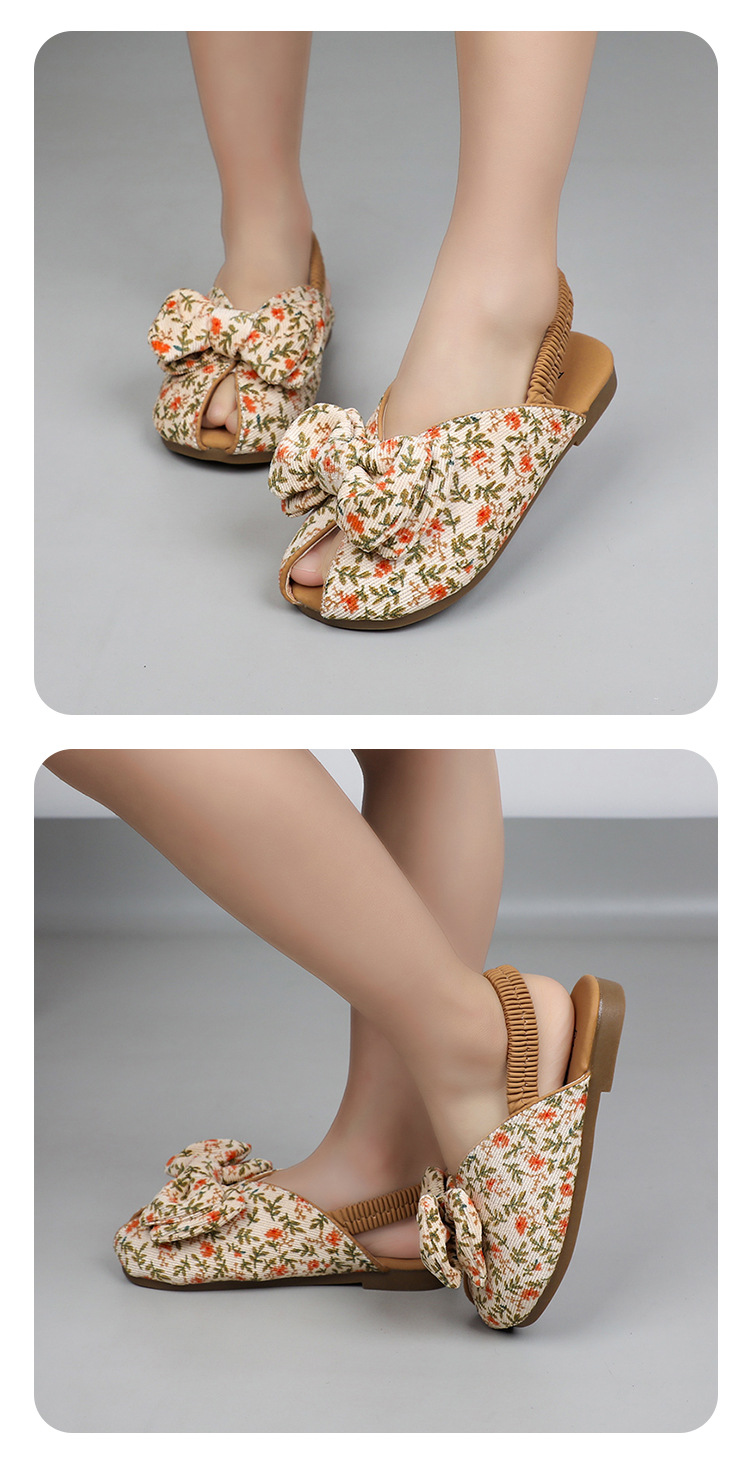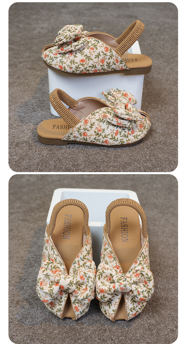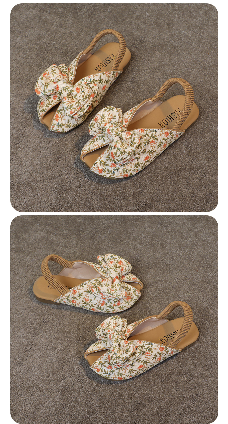 모리 걸스 샌들 뉴 레오파드 보우 여름 레트로 공주 하프 드래그 한 페달 패브릭 플라워 프린트