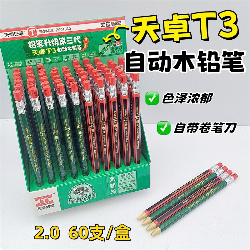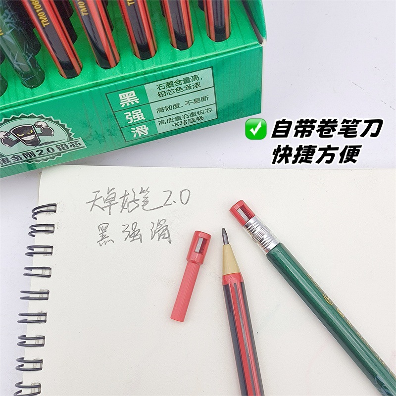 Tianzhuo TM01060 어린이 친환경 연필, 깎을 필요 없는 연필, 굵은 필기, 깎이 포함, 2.0 자동 연필스토어 가기