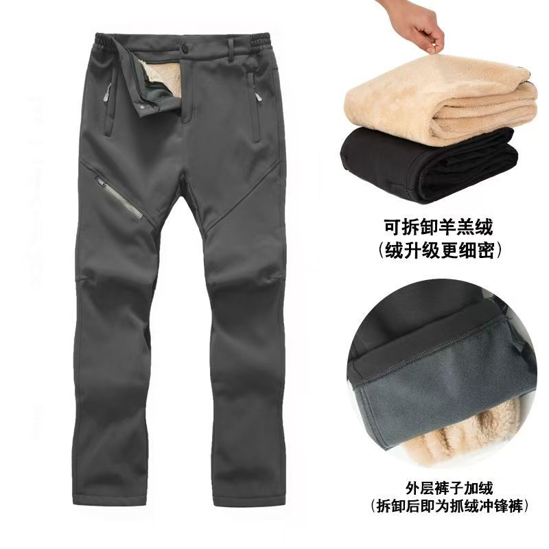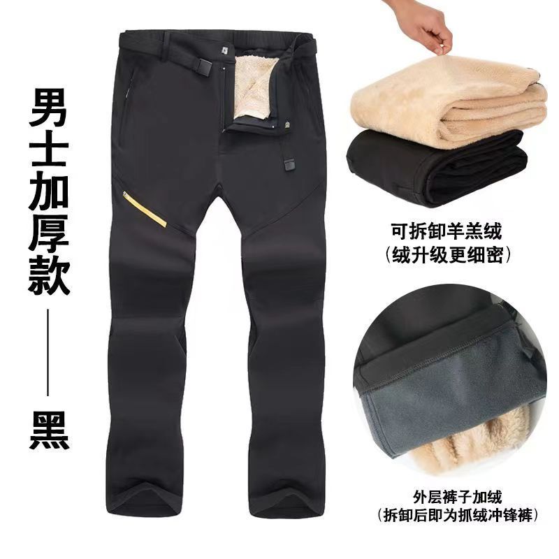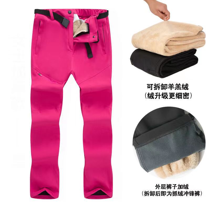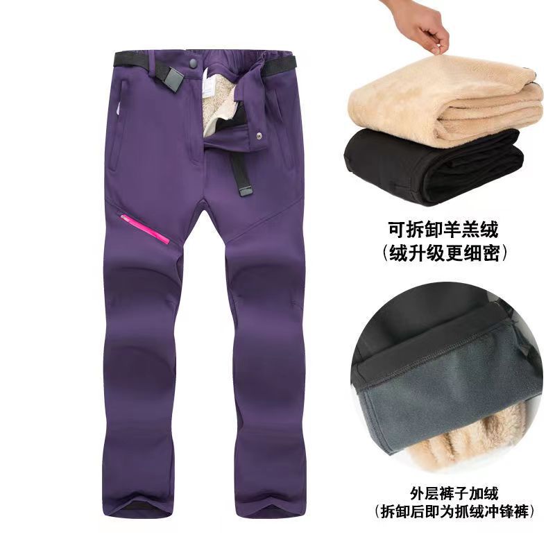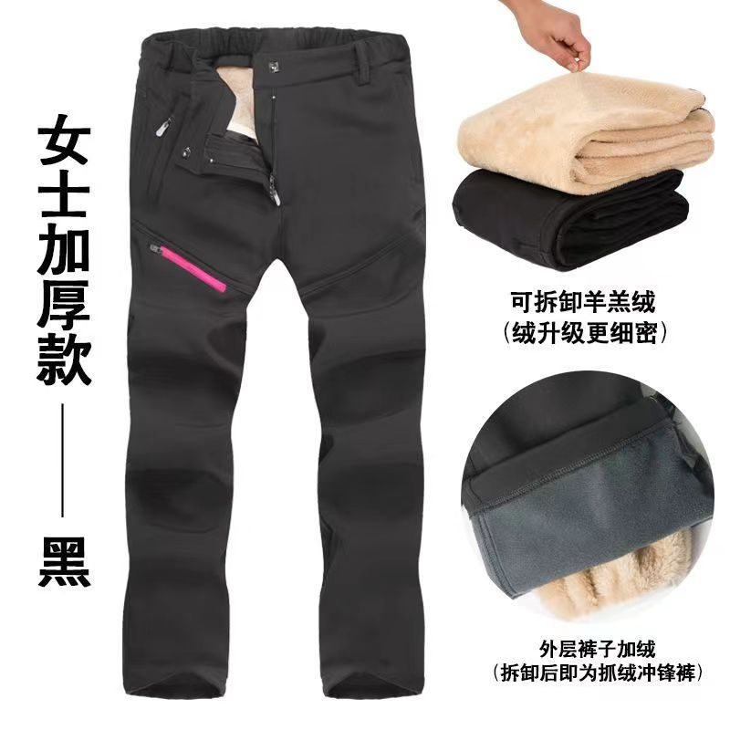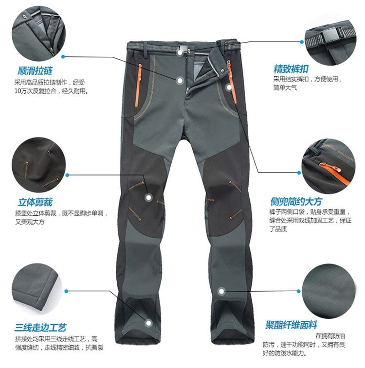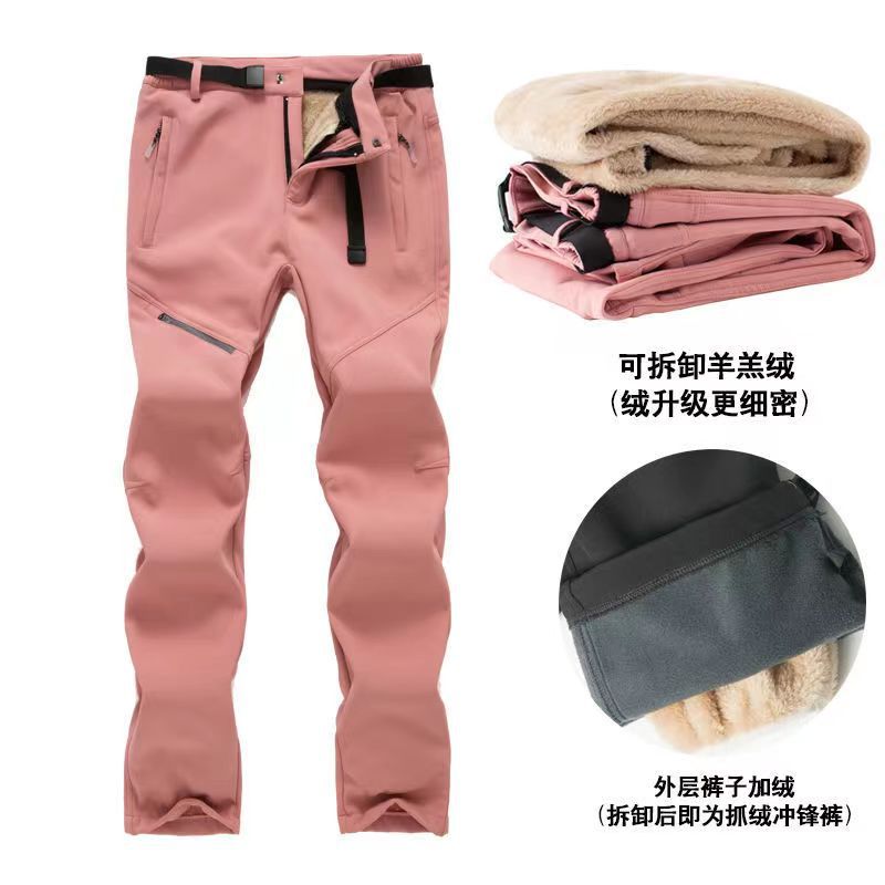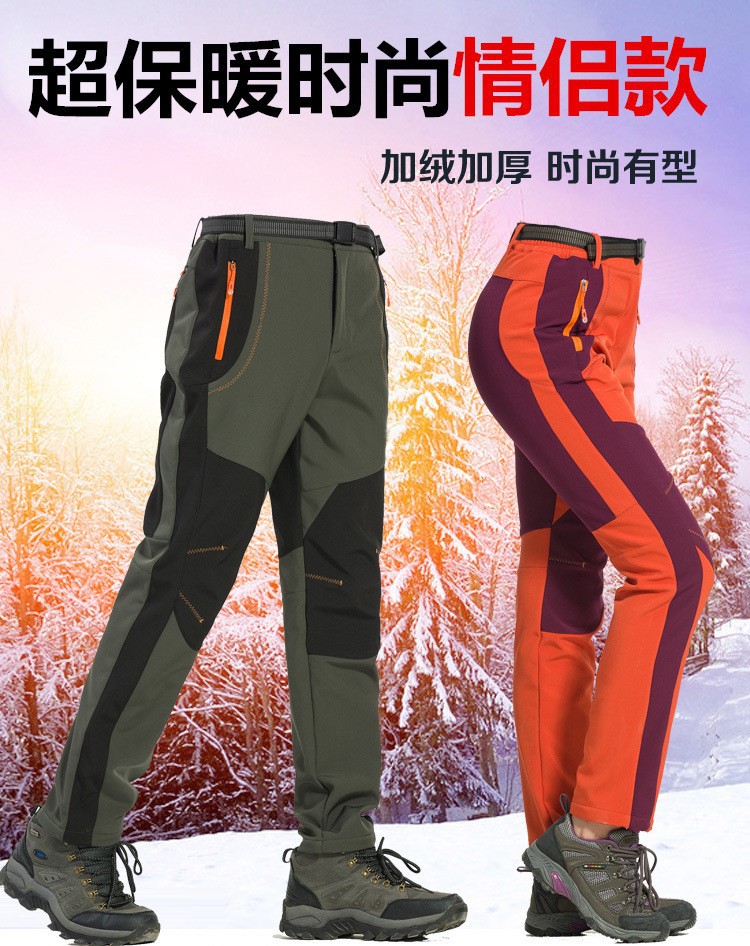야외 충전 바지 남성 기모 두꺼운 방풍 및 방수 겨울 여성의 따뜻한 소프트 쉘 하이킹 등반 통기성 스키 바지