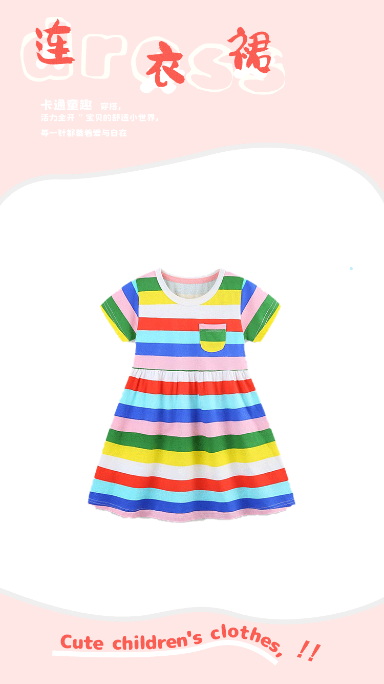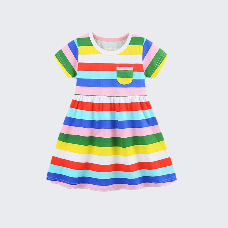 25 여름 소녀 원피스 유럽과 미국 스타일 패션 무지개 인쇄 공주 원피스 국경 간 공급 면화 어린이 원피스
