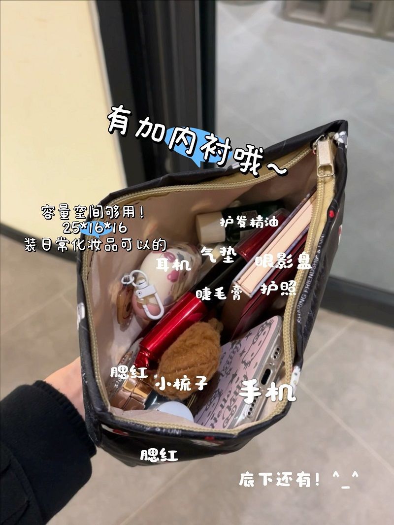 귀여운 높은 뷰티 가치 달콤한 쿨 블랙 키티 대용량 발수 화장품 가방 여성용 휴대용 스토리지 워시 백