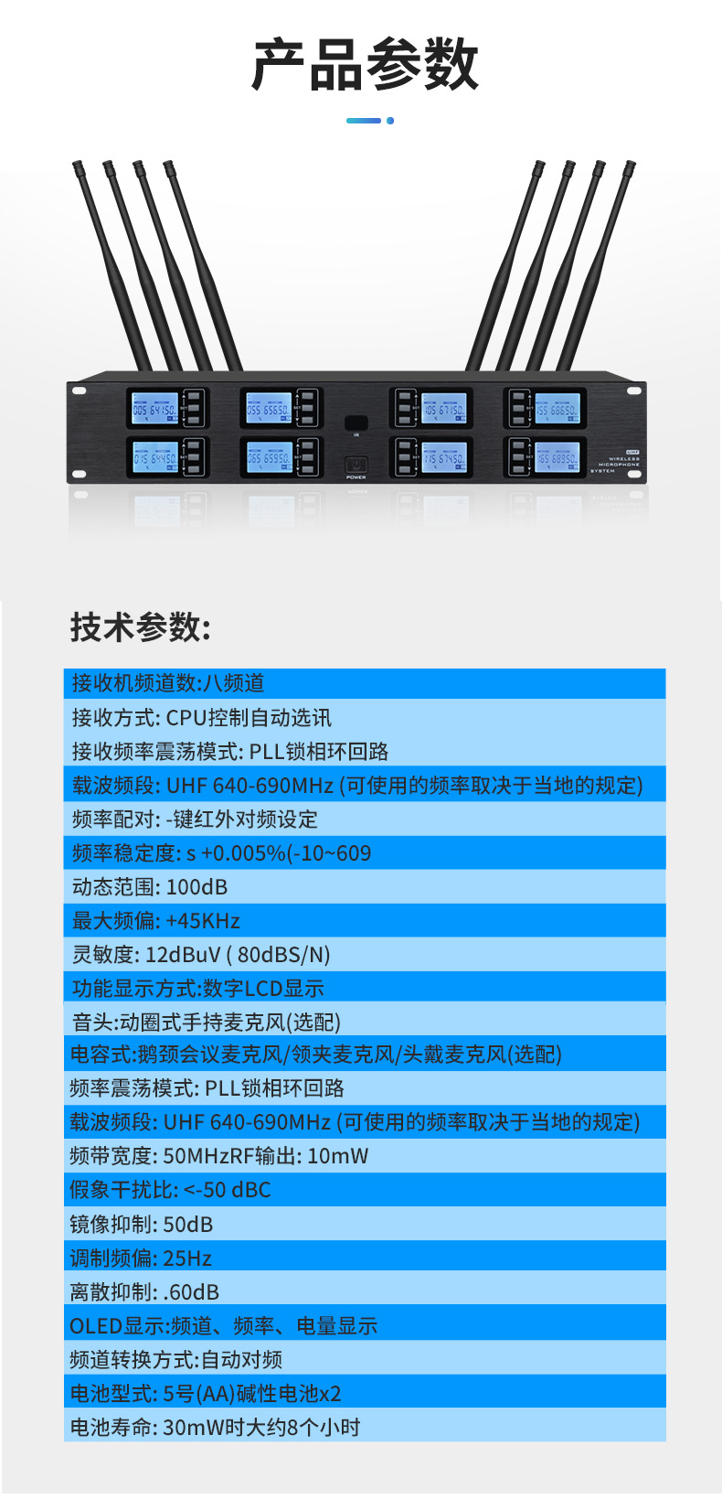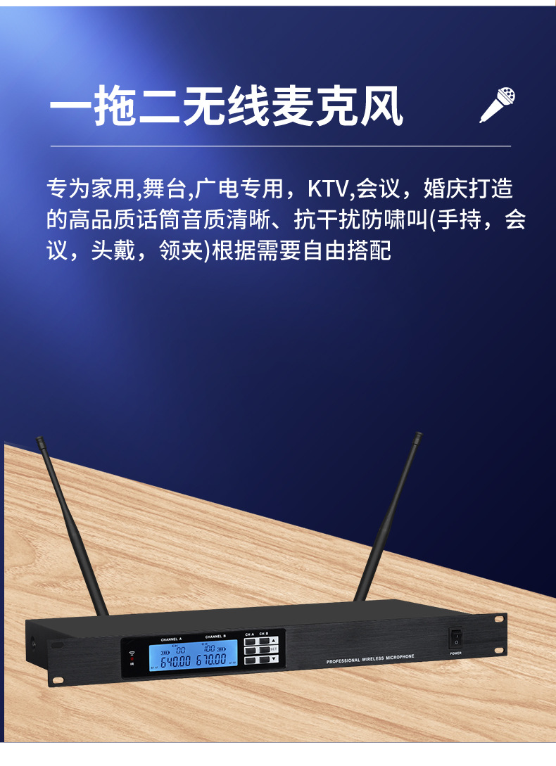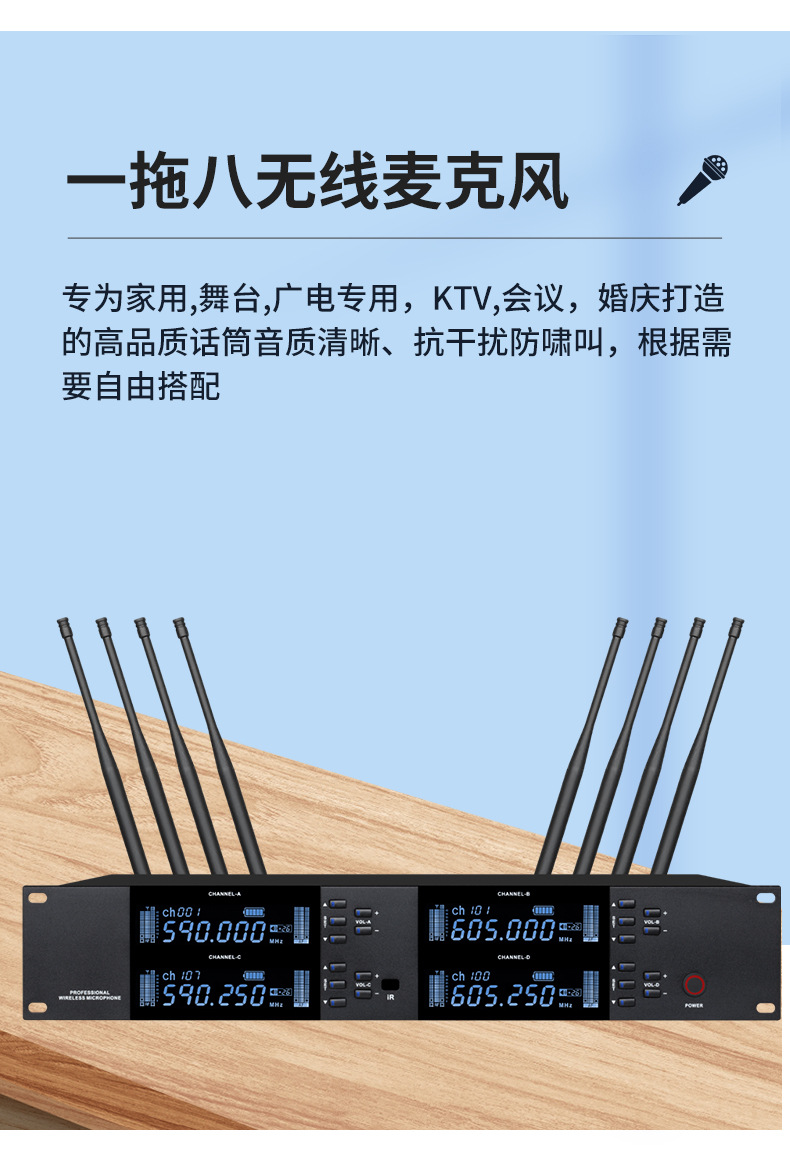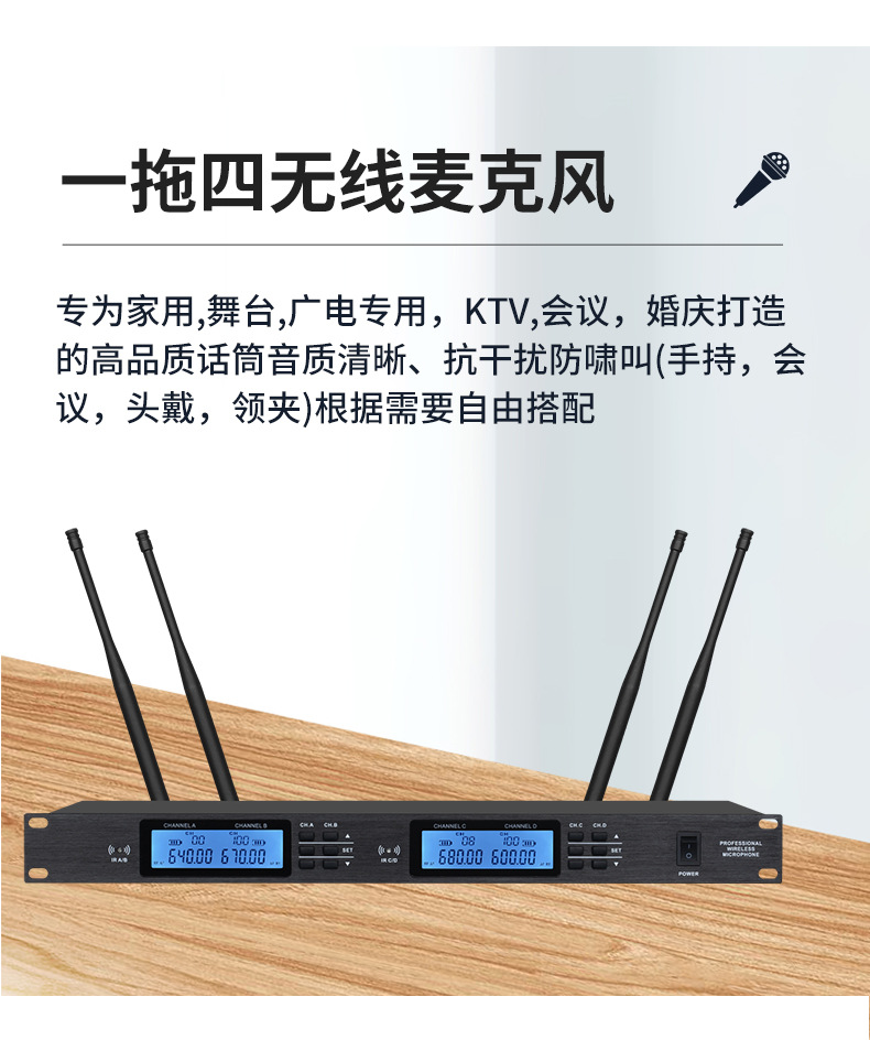전문가용 무선 마이크, 핸드헬드 마이크, KTV 공연 및 회의용, 1대2, 4대8, 모든 시리즈